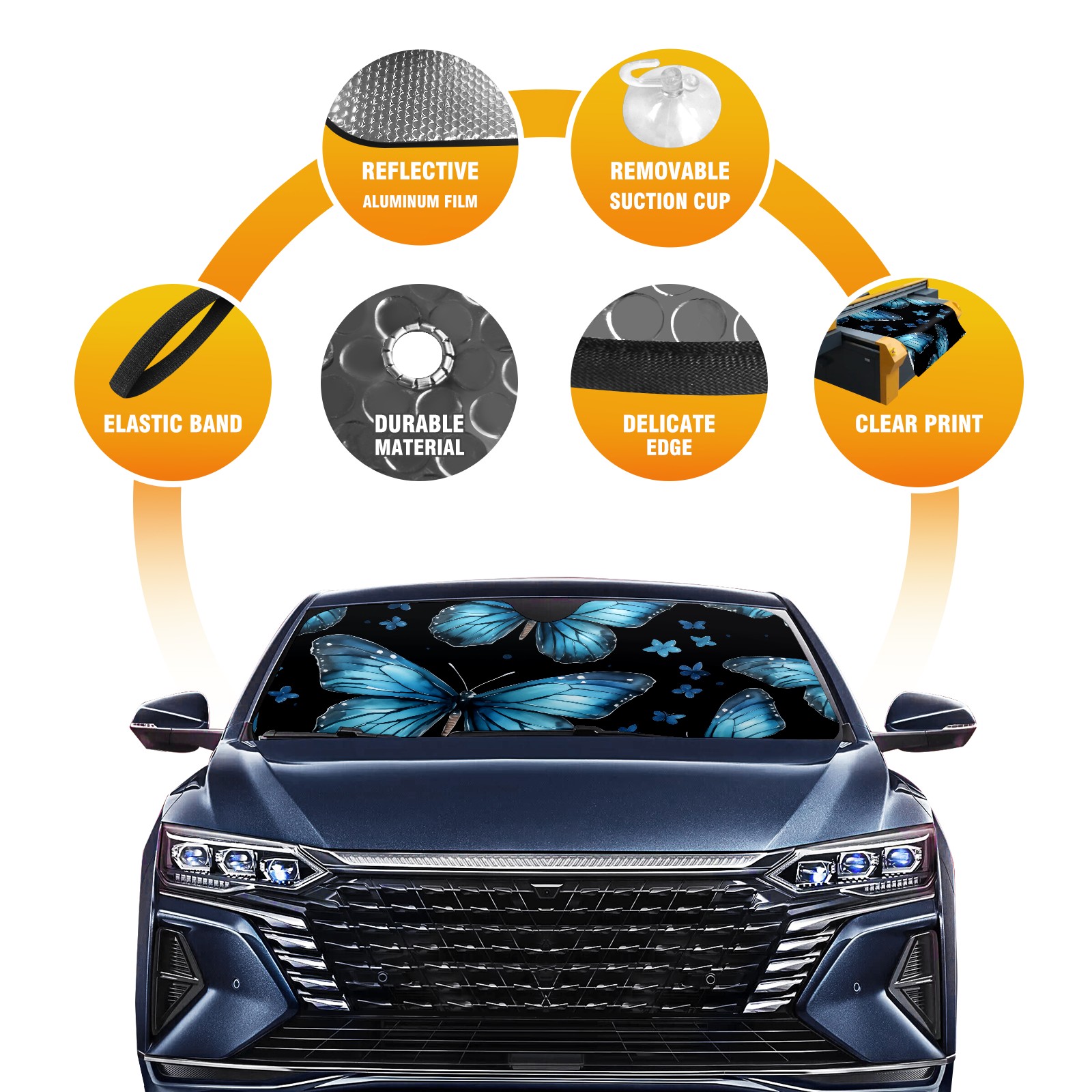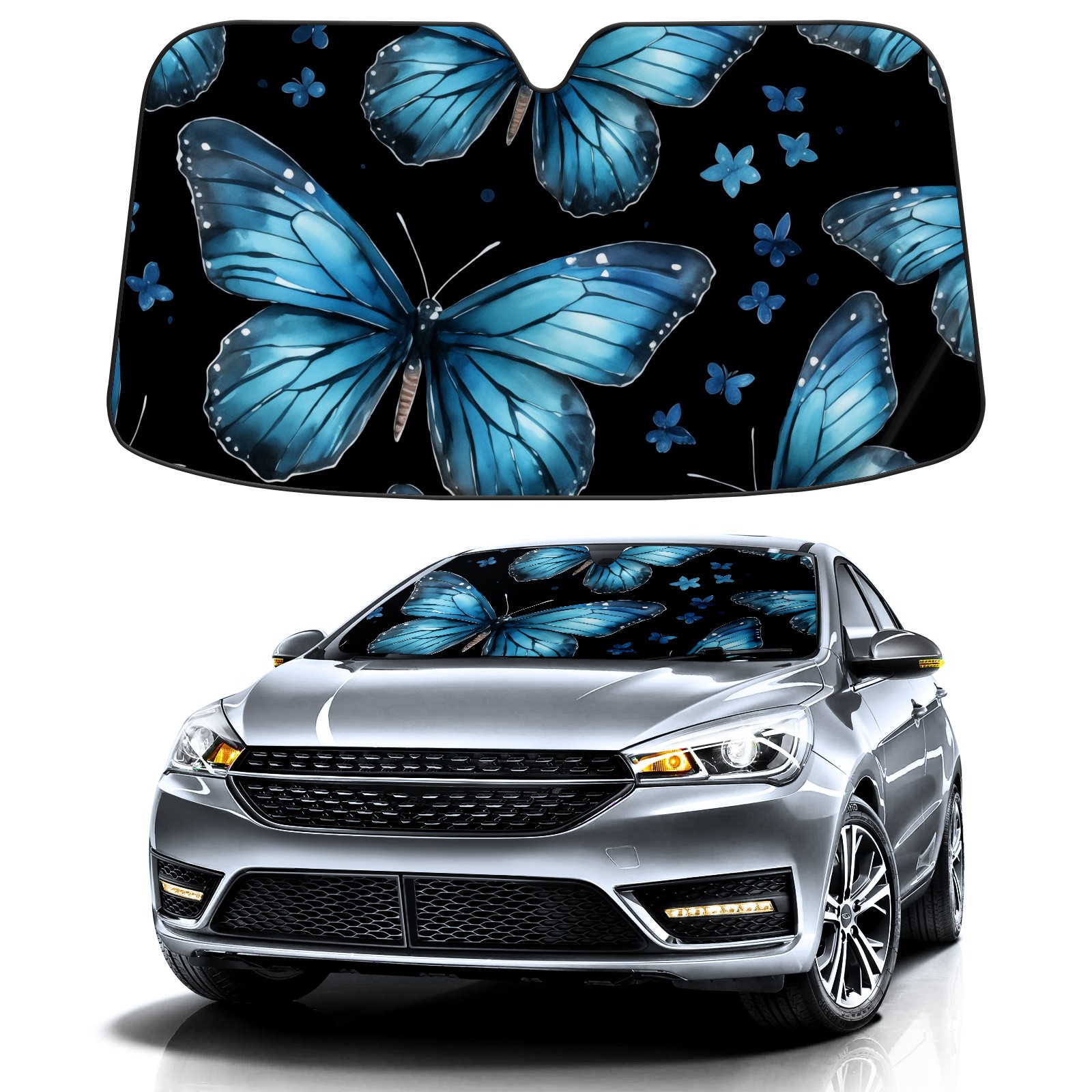 Car Windshield Sun Shade for Front Window Blue Butterfly Flower Foldable Vehicle Windshield Car Sun Visor Covers Automotive Window Protector Car Privacy Sun Blocker