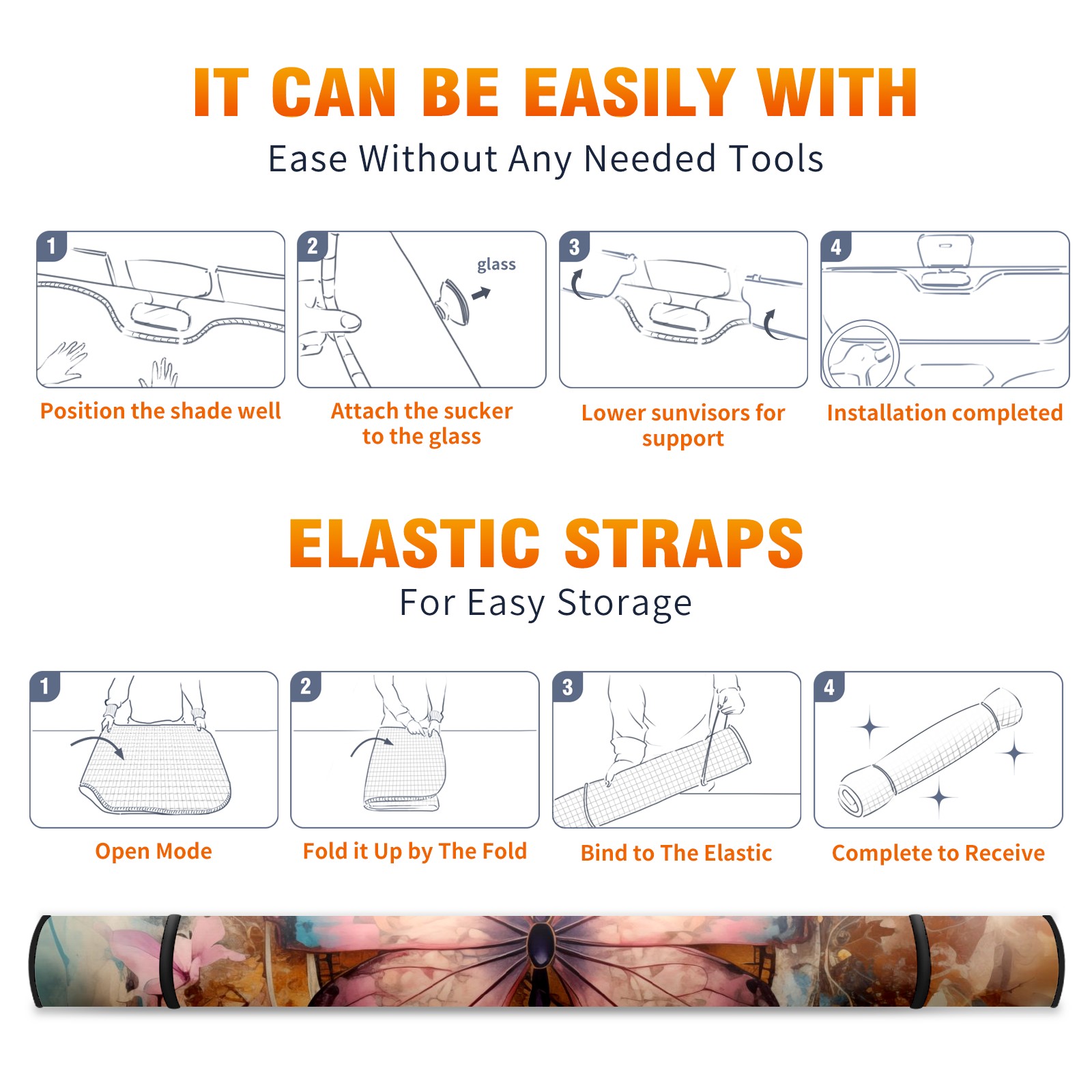 • <b>ZXIVGOQFR Foldable Premium Car Windshield Sunshade is your great solution to reduce your car’s interior temperature dramatically! This is definitely a must-have item for your summer travel! </b> <br> ●<b>Size: 63"L x 33.5"W </b> <br></b> ●<b>Blocking Uv Rays & Heat Insulation<br></b> Our vehicle sunshade provides effective UV, sun, and summer heat protection .Maintains dashboards by preventing fading and cracking <br> ●<b>Easy-To-Store Folding Design Makes Storage Convenient <br></b> ZXIVGOQFR car sunshades come with removable suction cups and elastic bands that you can install easily and quickly, and the removable suction cups will not leave any marks on your windows when removed. Within seconds, windshield visor can be installed and removed. When not in use,the front windshield can be easily and effectively placed on the door pocket or the dashboard, which is beautiful and does not take up space in the car.<br> <br> <b>PUT UP A 'PROTECTIVE UMBRELLA' FOR YOUR BELOVED CAR!</b>