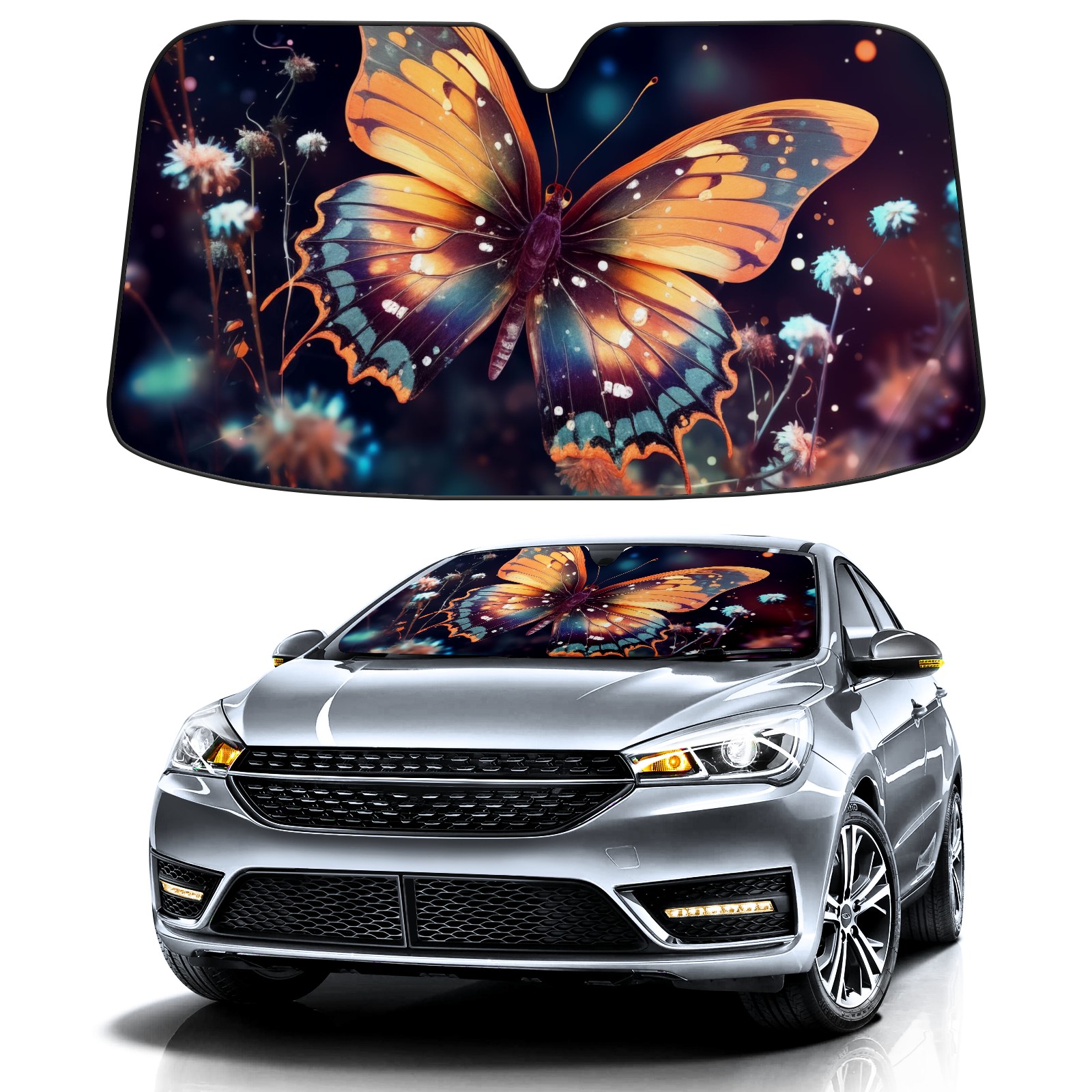 Car Windshield Sun Shade for Front Window Colorful Butterfly Wildflower Foldable Vehicle Windshield Car Sun Visor Covers Automotive Window Protector Car Privacy Sun Blocker
