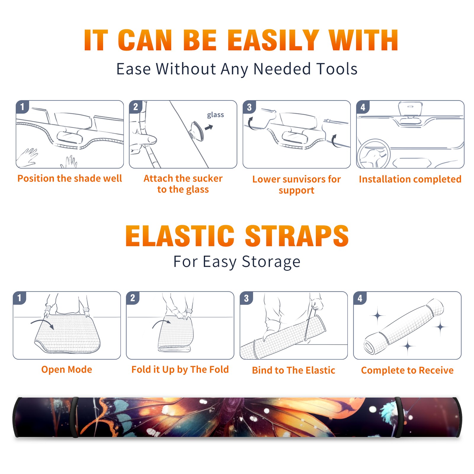 • <b>ZXIVGOQFR Foldable Premium Car Windshield Sunshade is your great solution to reduce your car’s interior temperature dramatically! This is definitely a must-have item for your summer travel! </b> <br> ●<b>Size: 63"L x 33.5"W </b> <br></b> ●<b>Blocking Uv Rays & Heat Insulation<br></b> Our vehicle sunshade provides effective UV, sun, and summer heat protection .Maintains dashboards by preventing fading and cracking <br> ●<b>Easy-To-Store Folding Design Makes Storage Convenient <br></b> ZXIVGOQFR car sunshades come with removable suction cups and elastic bands that you can install easily and quickly, and the removable suction cups will not leave any marks on your windows when removed. Within seconds, windshield visor can be installed and removed. When not in use,the front windshield can be easily and effectively placed on the door pocket or the dashboard, which is beautiful and does not take up space in the car.<br> <br> <b>PUT UP A 'PROTECTIVE UMBRELLA' FOR YOUR BELOVED CAR!</b>