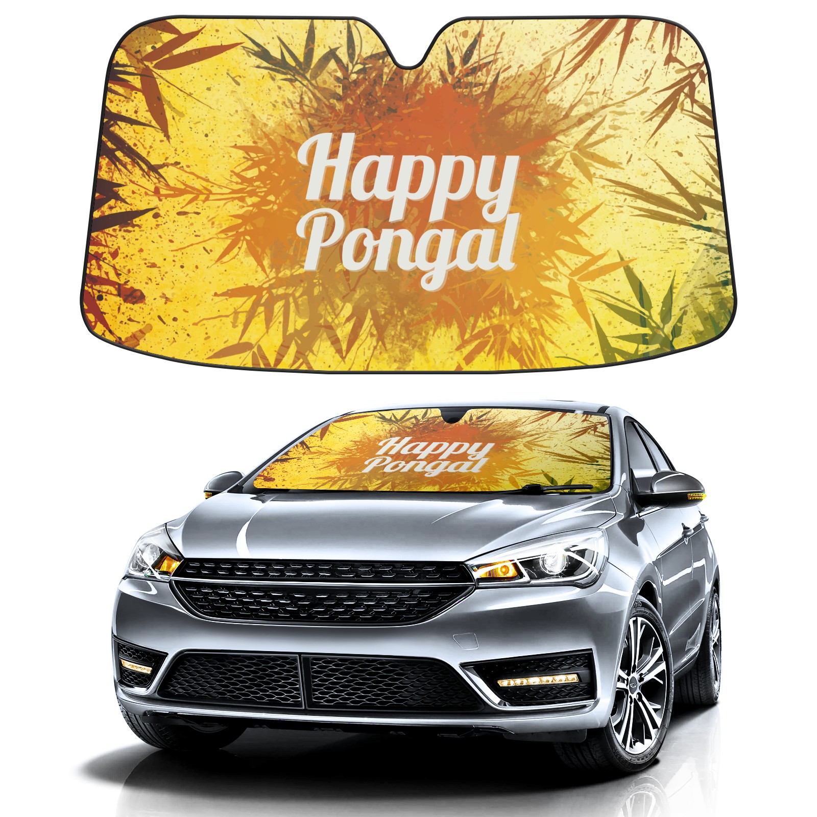 Car Windshield Sun Shade for Front Window Happy Pongal Leaves Foldable Vehicle Windshield Car Sun Visor Covers Automotive Window Protector Car Privacy Sun Blocker