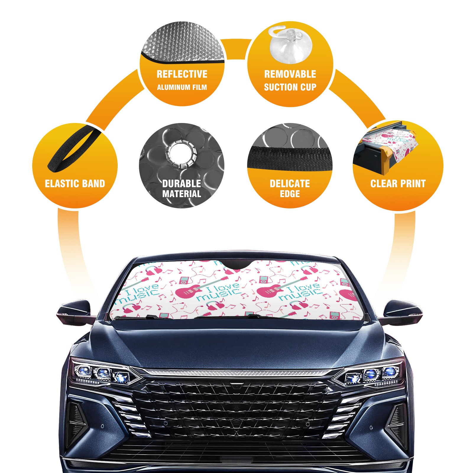 Car Windshield Sun Shade for Front Window guitar music Foldable Vehicle Windshield Car Sun Visor Covers Automotive Window Protector Car Privacy Sun Blocker