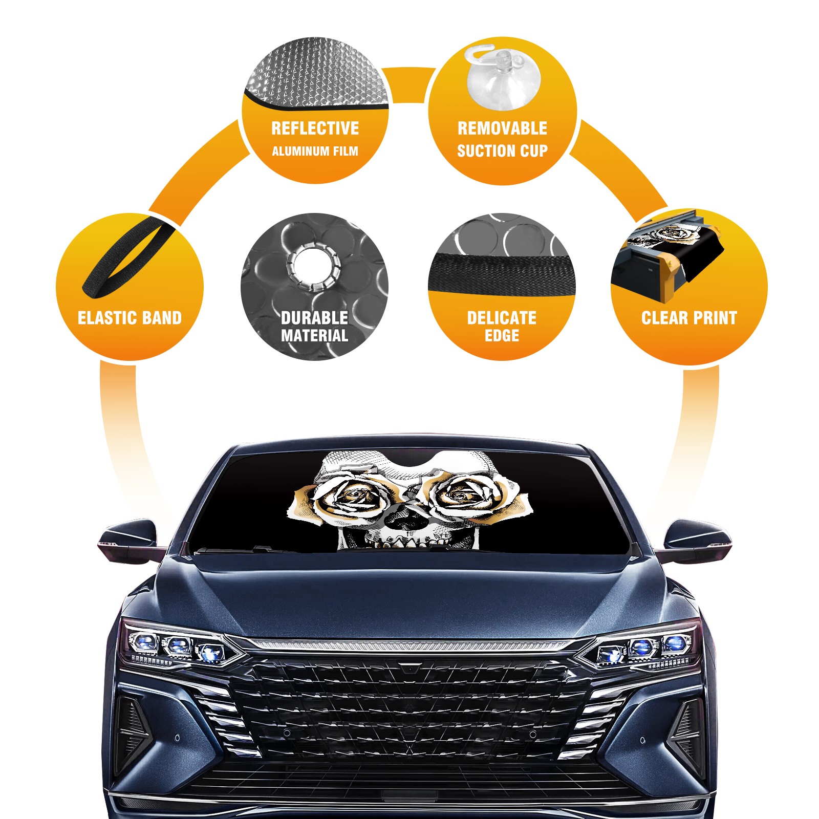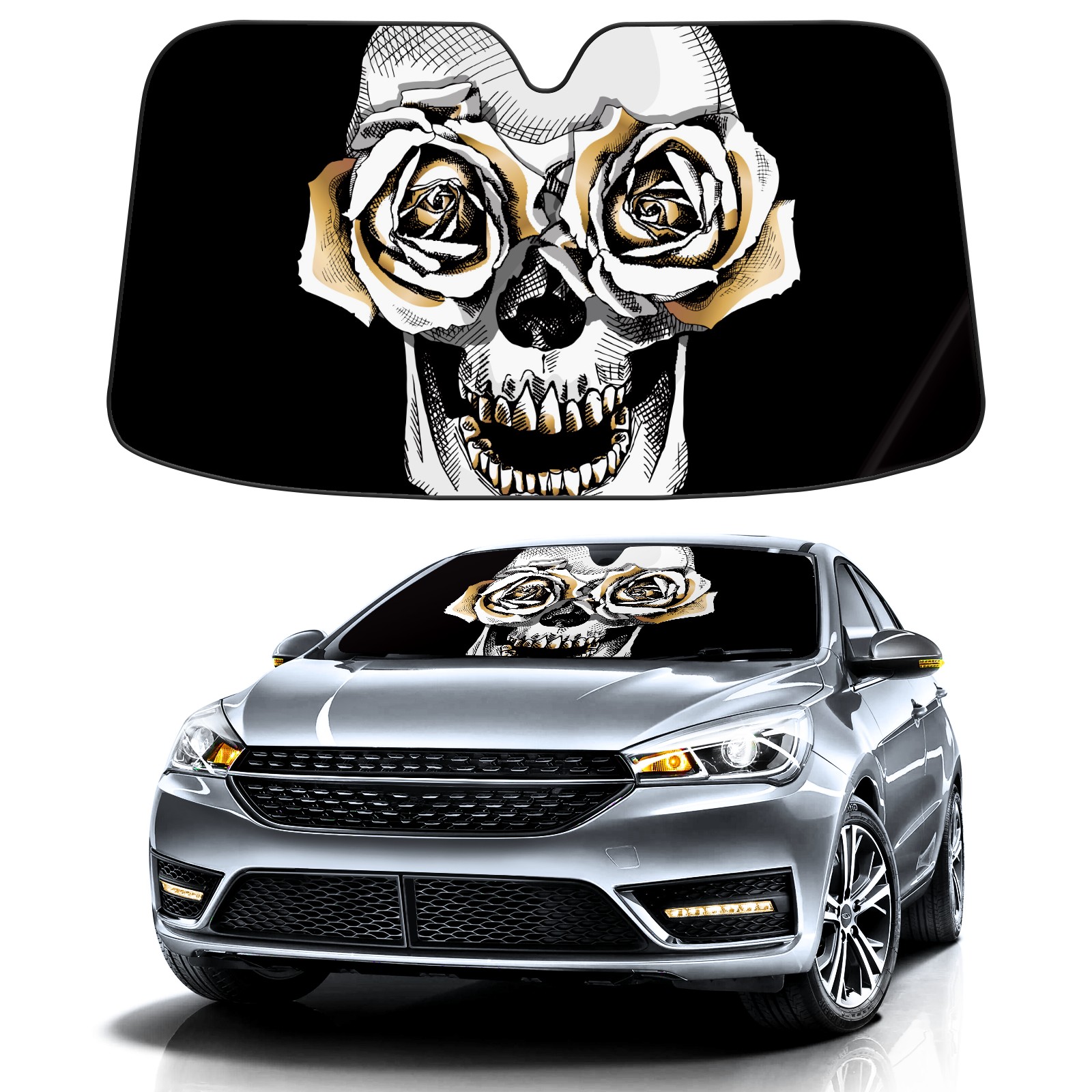 Car Windshield Sun Shade for Front Window flower skull Foldable Vehicle Windshield Car Sun Visor Covers Automotive Window Protector Car Privacy Sun Blocker