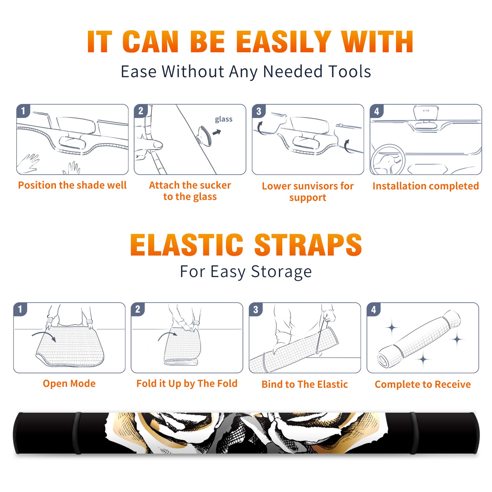 • <b>ZXIVGOQFR Foldable Premium Car Windshield Sunshade is your great solution to reduce your car’s interior temperature dramatically! This is definitely a must-have item for your summer travel! </b> <br> ●<b>Size: 63"L x 33.5"W </b> <br></b> ●<b>Blocking Uv Rays & Heat Insulation<br></b> Our vehicle sunshade provides effective UV, sun, and summer heat protection .Maintains dashboards by preventing fading and cracking <br> ●<b>Easy-To-Store Folding Design Makes Storage Convenient <br></b> ZXIVGOQFR car sunshades come with removable suction cups and elastic bands that you can install easily and quickly, and the removable suction cups will not leave any marks on your windows when removed. Within seconds, windshield visor can be installed and removed. When not in use,the front windshield can be easily and effectively placed on the door pocket or the dashboard, which is beautiful and does not take up space in the car.<br> <br> <b>PUT UP A 'PROTECTIVE UMBRELLA' FOR YOUR BELOVED CAR!</b>