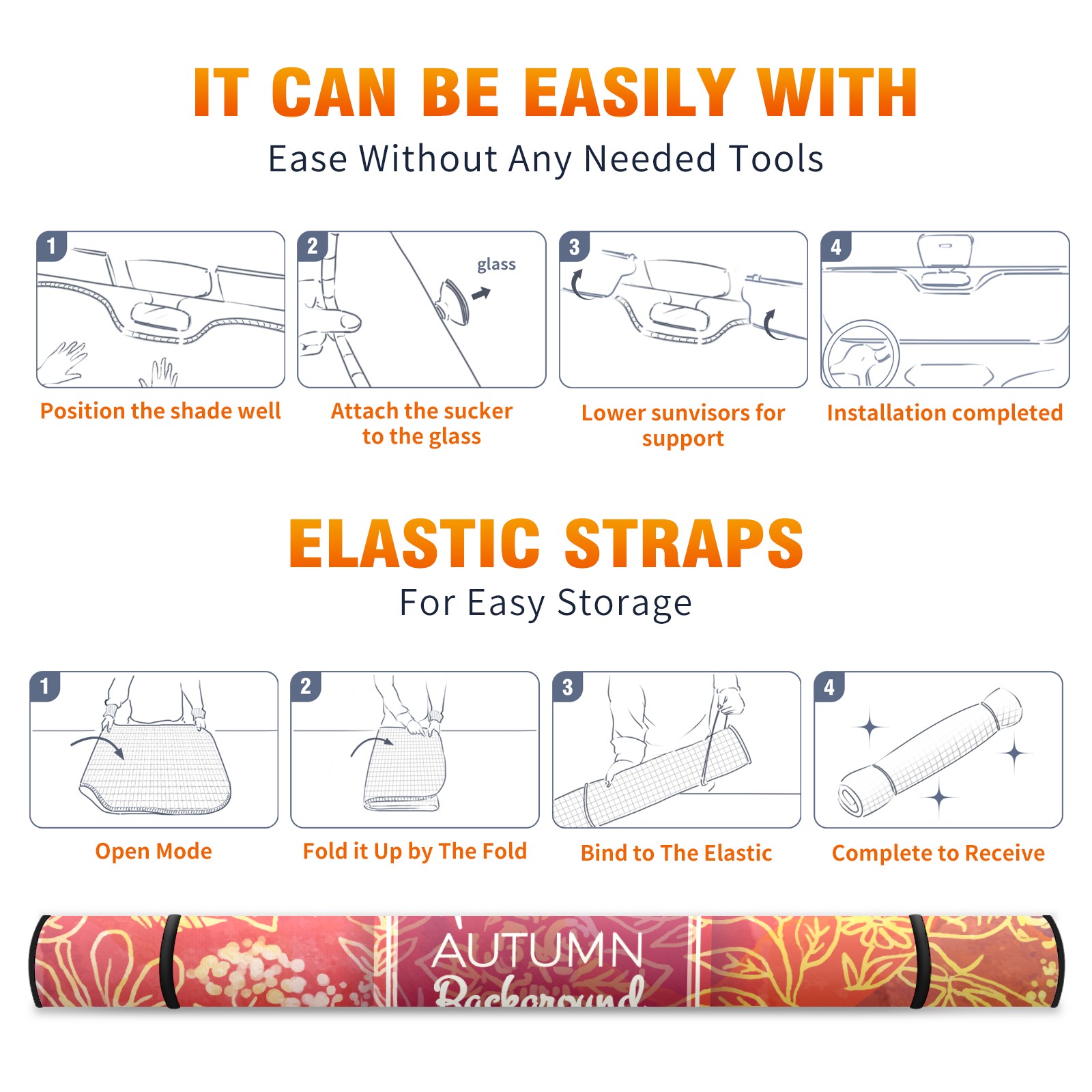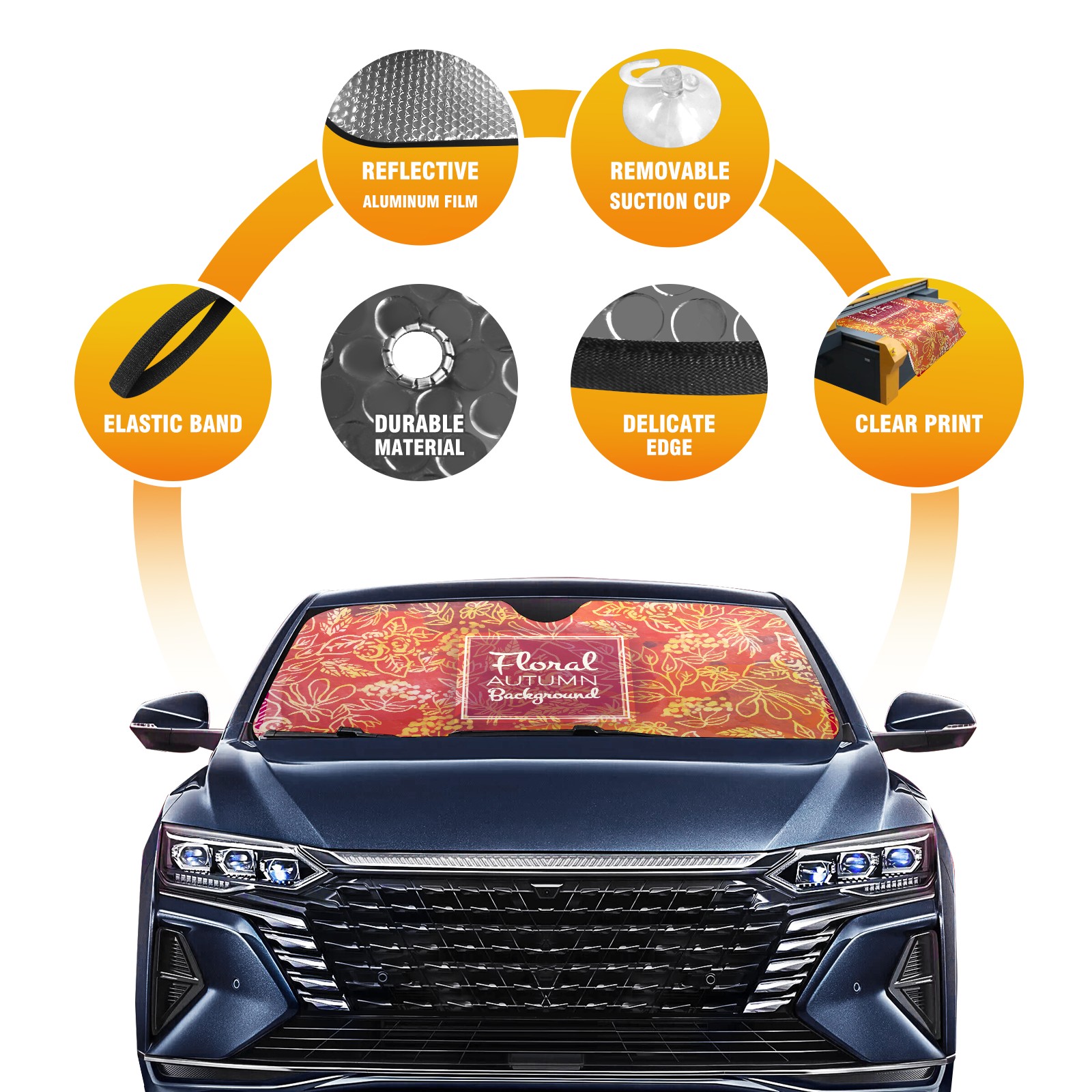 • <b>ZXIVGOQFR Foldable Premium Car Windshield Sunshade is your great solution to reduce your car’s interior temperature dramatically! This is definitely a must-have item for your summer travel! </b> <br> ●<b>Size: 63"L x 33.5"W </b> <br></b> ●<b>Blocking Uv Rays & Heat Insulation<br></b> Our vehicle sunshade provides effective UV, sun, and summer heat protection .Maintains dashboards by preventing fading and cracking <br> ●<b>Easy-To-Store Folding Design Makes Storage Convenient <br></b> ZXIVGOQFR car sunshades come with removable suction cups and elastic bands that you can install easily and quickly, and the removable suction cups will not leave any marks on your windows when removed. Within seconds, windshield visor can be installed and removed. When not in use,the front windshield can be easily and effectively placed on the door pocket or the dashboard, which is beautiful and does not take up space in the car.<br> <br> <b>PUT UP A 'PROTECTIVE UMBRELLA' FOR YOUR BELOVED CAR!</b>