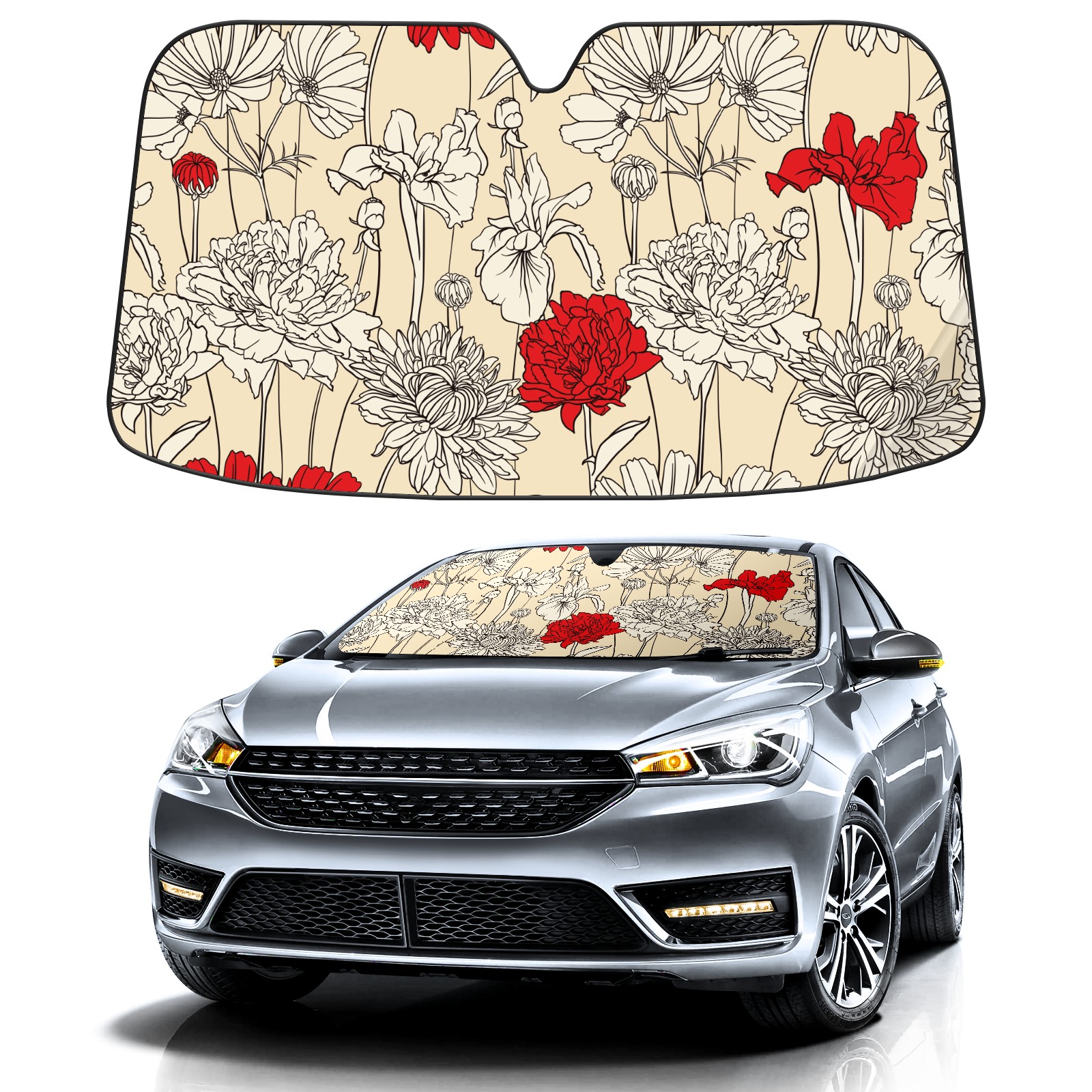 Car Windshield Sun Shade for Front Window Flower Red Foldable Vehicle Windshield Car Sun Visor Covers Automotive Window Protector Car Privacy Sun Blocker