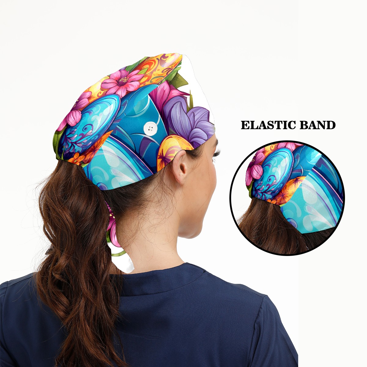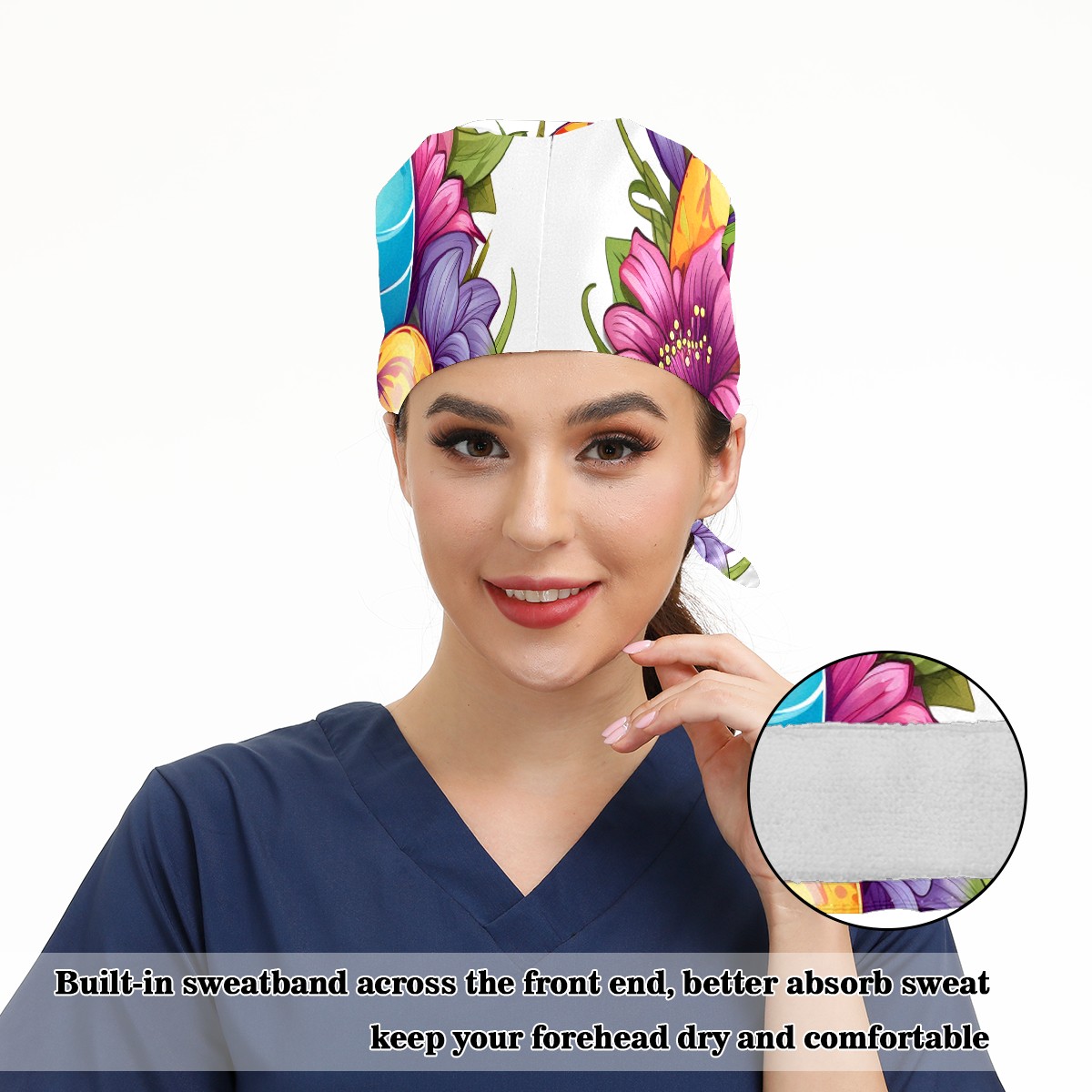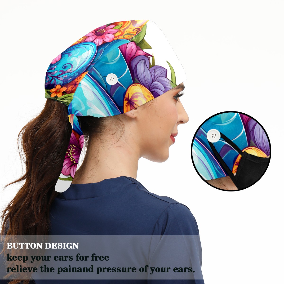 Working Caps with Button&Sweatband Satin Lined Cotton Adjustable Nurse Hats Elastic Band Scrub Cap Surgeon Hat Easter 83
