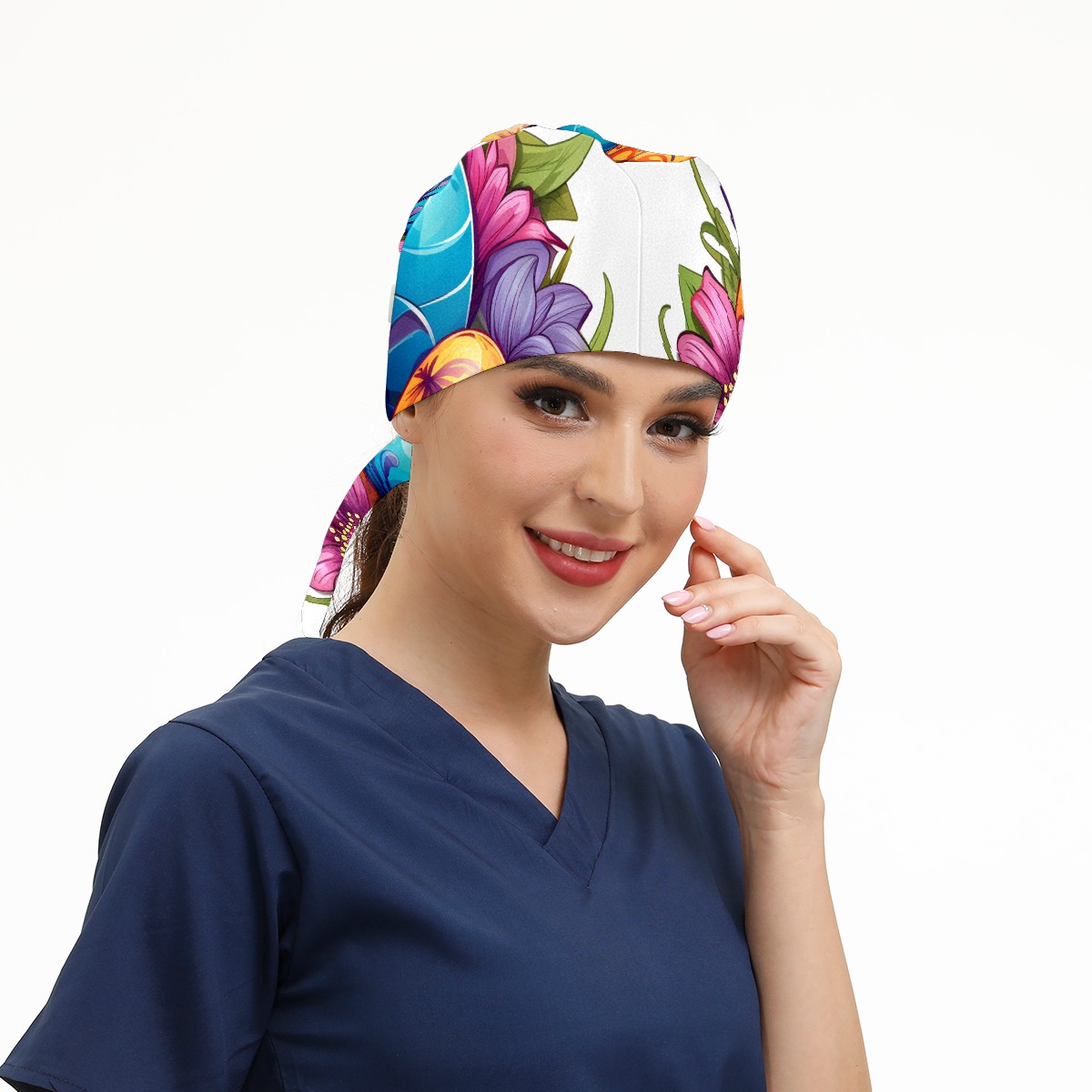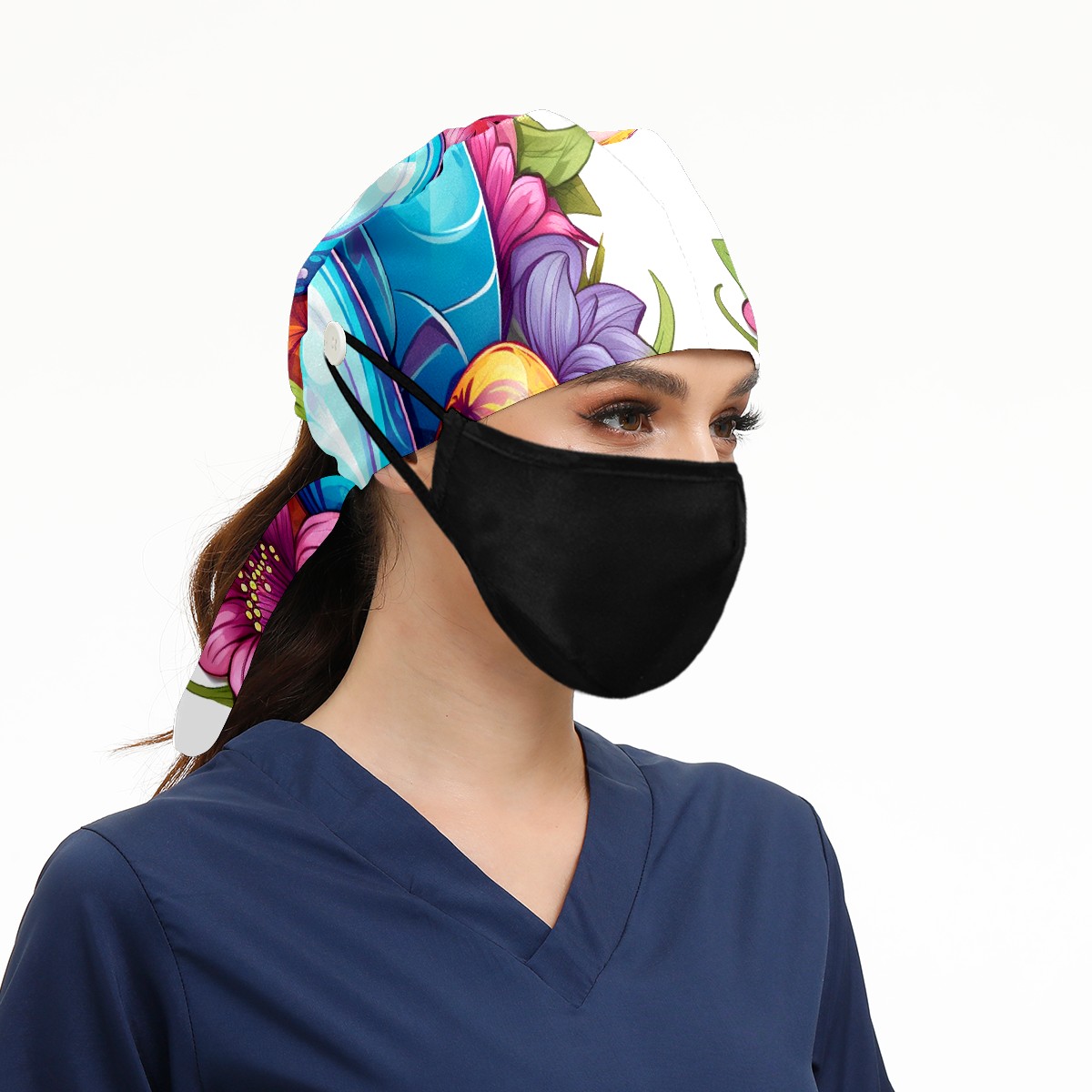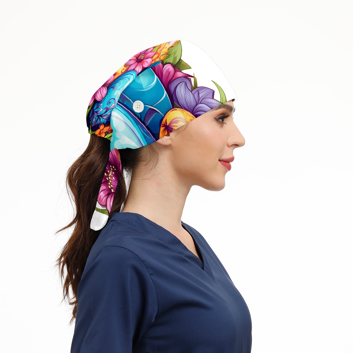 Working Caps with Button&Sweatband Satin Lined Cotton Adjustable Nurse Hats Elastic Band Scrub Cap Surgeon Hat Easter 83