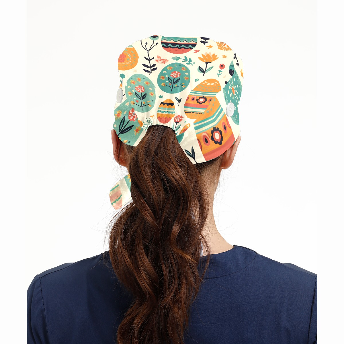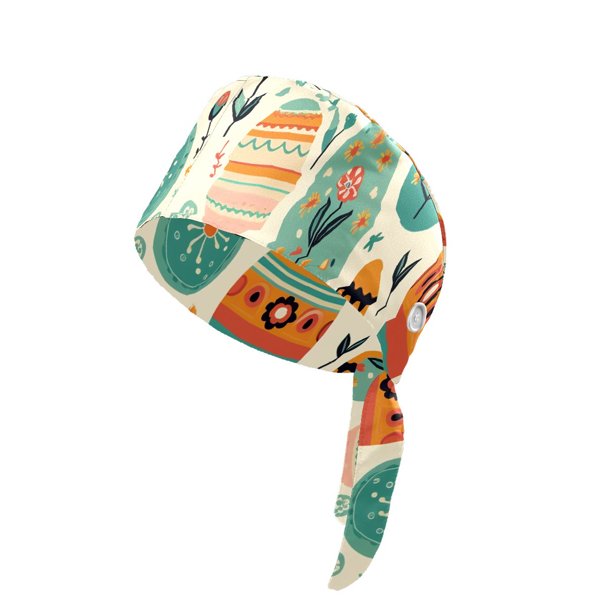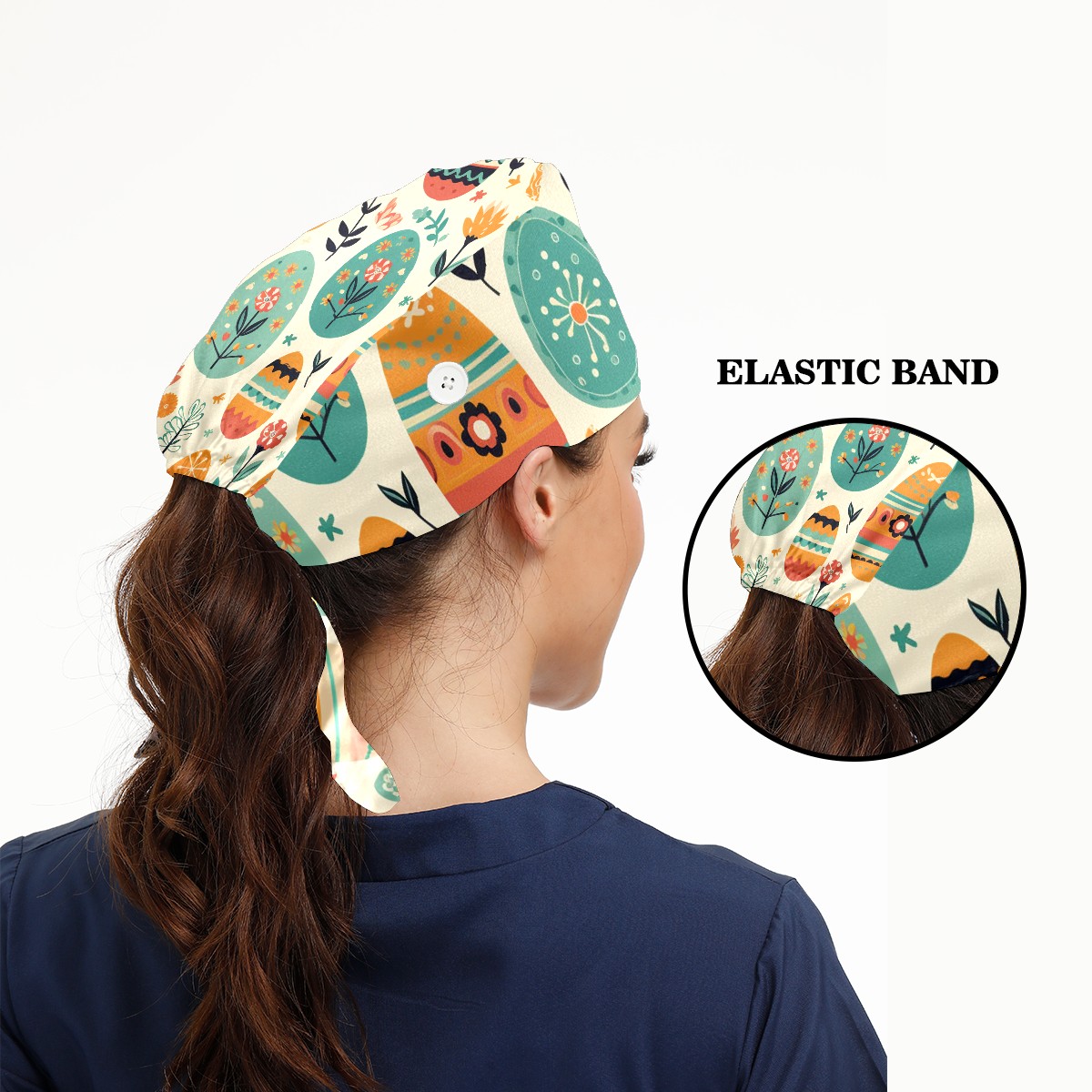Working Caps with Button&Sweatband Satin Lined Cotton Adjustable Nurse Hats Elastic Band Scrub Cap Surgeon Hat Easter 78