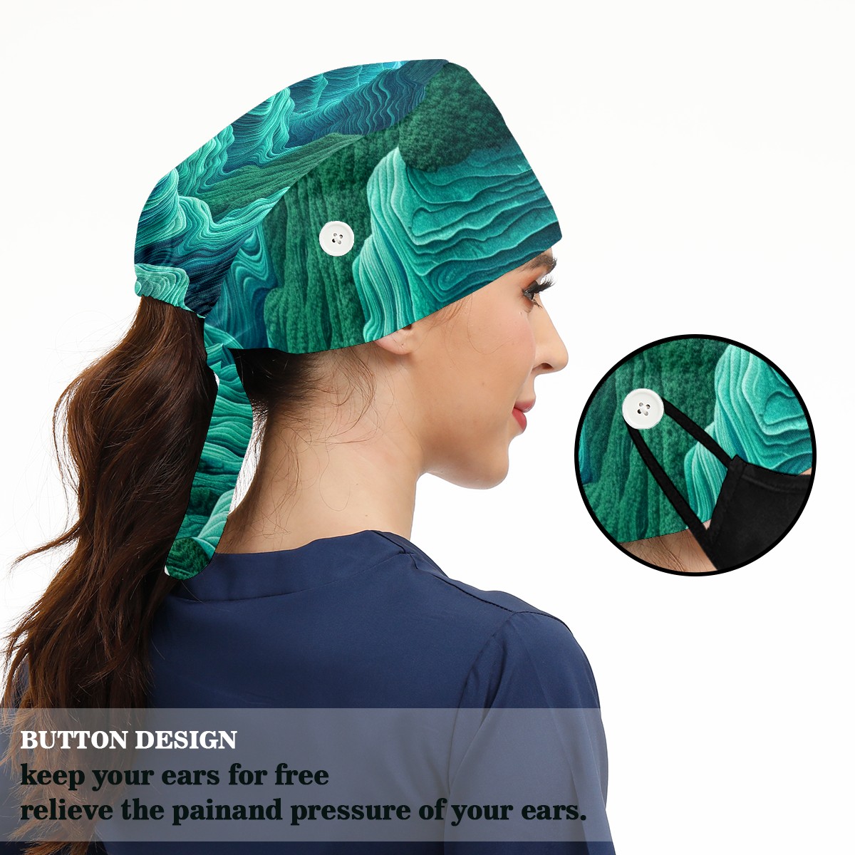 Working Caps with Button&Sweatband Satin Lined Cotton Adjustable Nurse Hats Elastic Band Scrub Cap Surgeon Hat Easter 79
