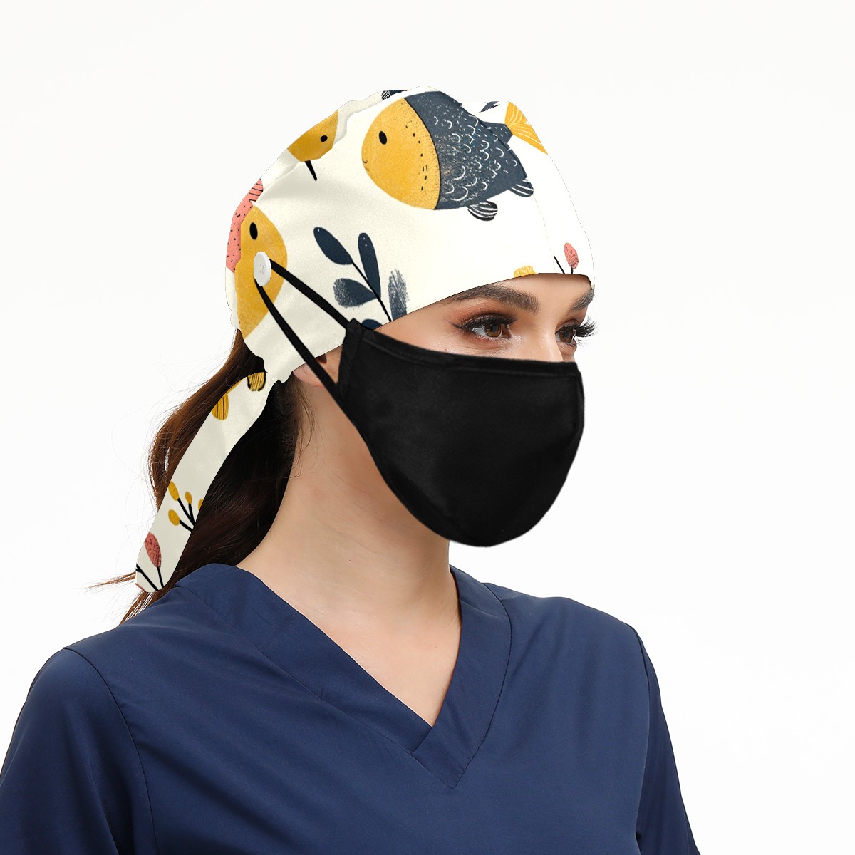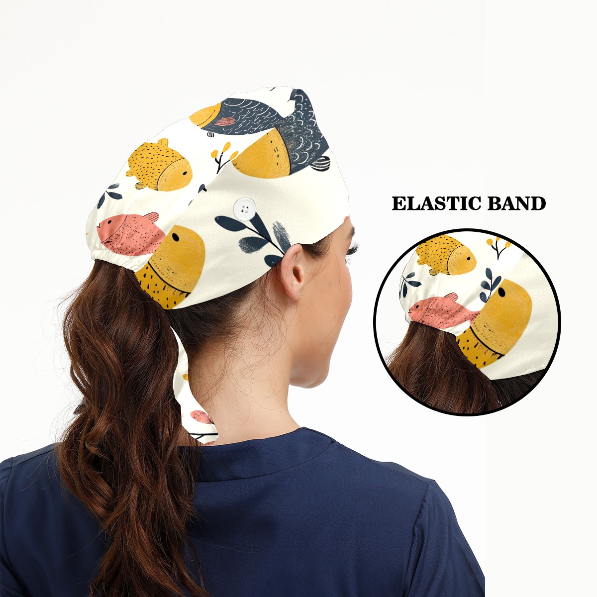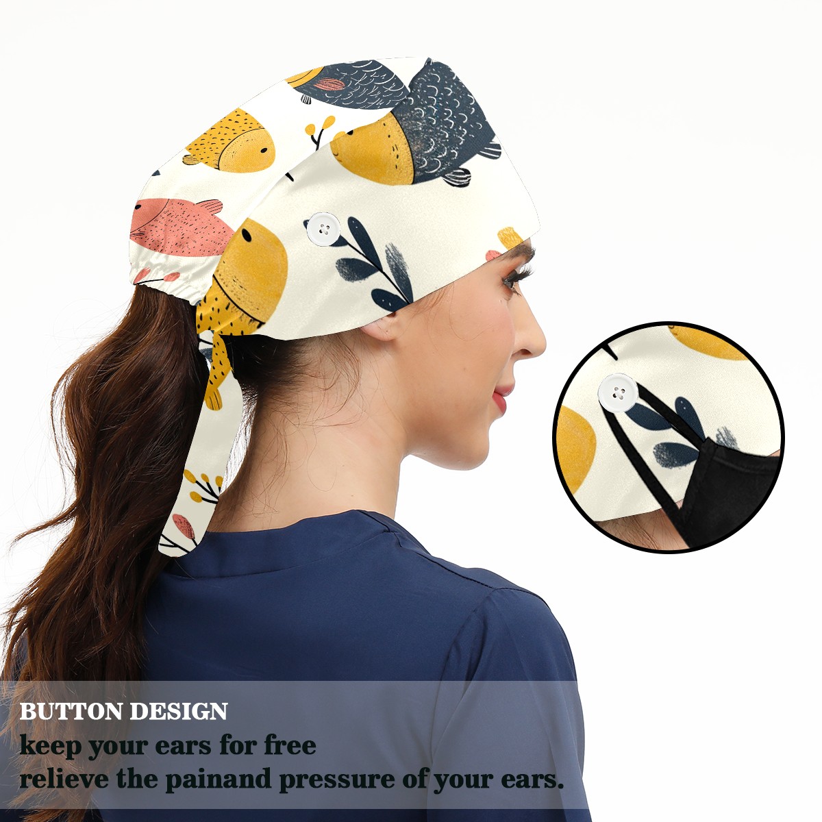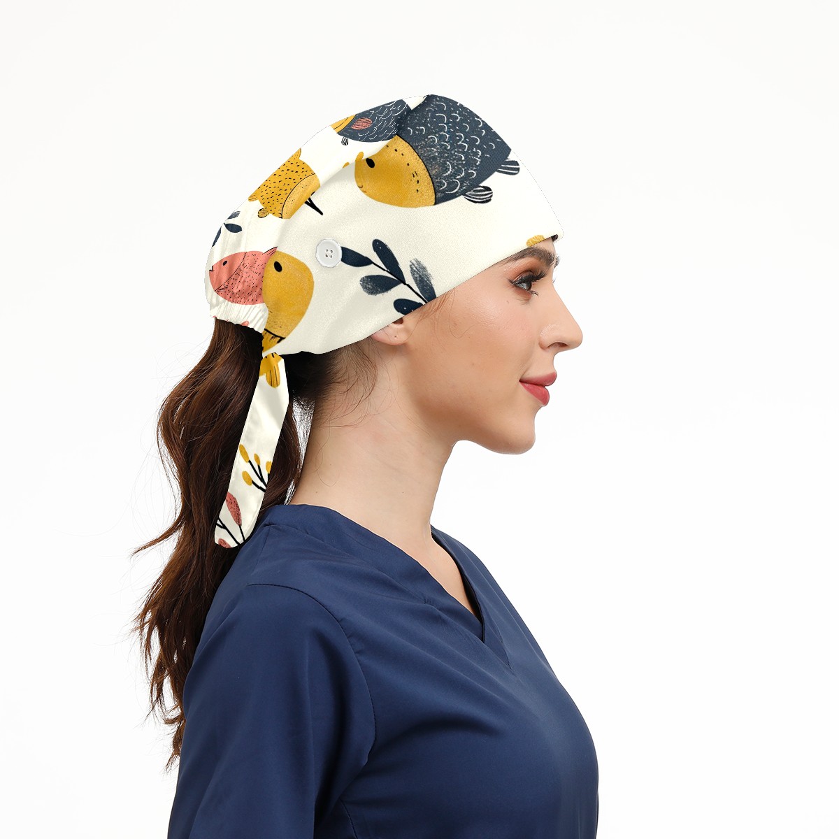 Working Caps with Button&Sweatband Satin Lined Cotton Adjustable Nurse Hats Elastic Band Scrub Cap Surgeon Hat Easter 74