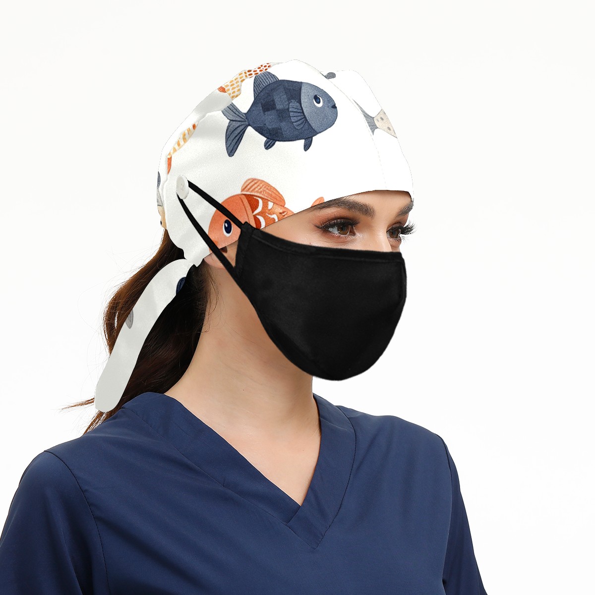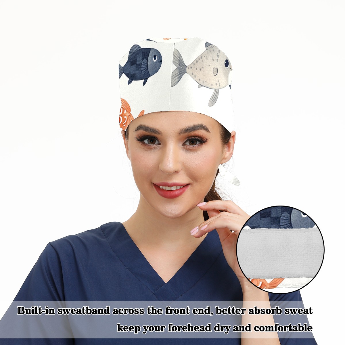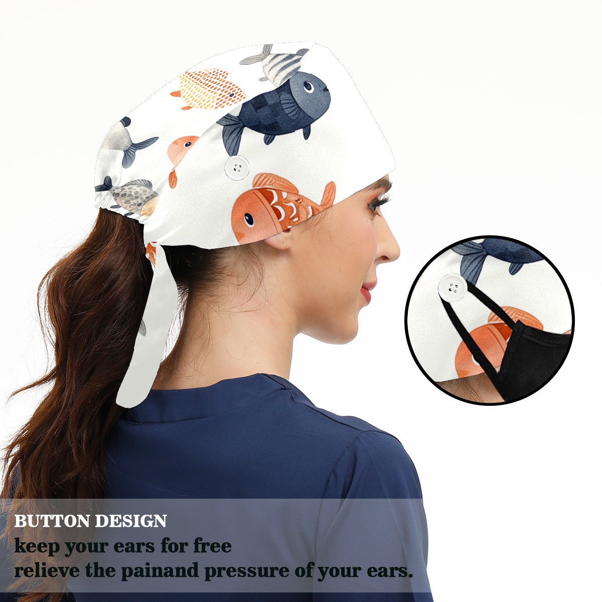 Working Caps with Button&Sweatband Satin Lined Cotton Adjustable Nurse Hats Elastic Band Scrub Cap Surgeon Hat Easter 73
