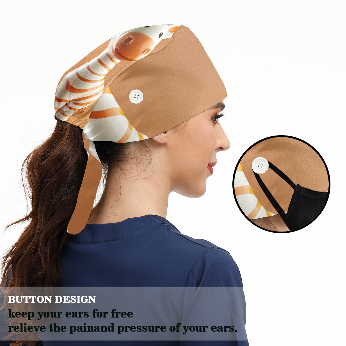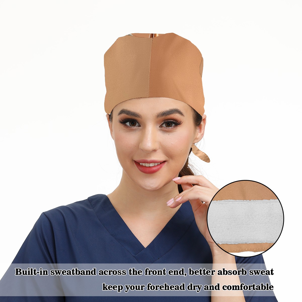Working Caps with Button&Sweatband Satin Lined Cotton Adjustable Nurse Hats Elastic Band Scrub Cap Surgeon Hat Easter 67