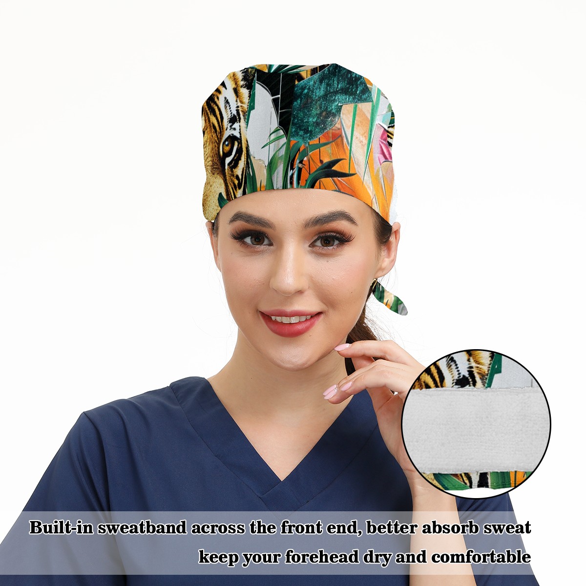 Working Caps with Button&Sweatband Satin Lined Cotton Adjustable Nurse Hats Elastic Band Scrub Cap Surgeon Hat Easter 71