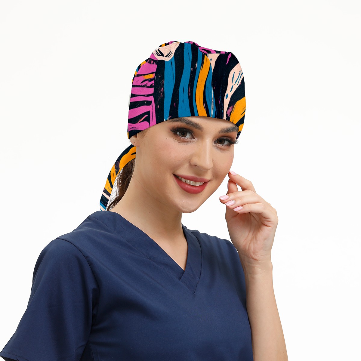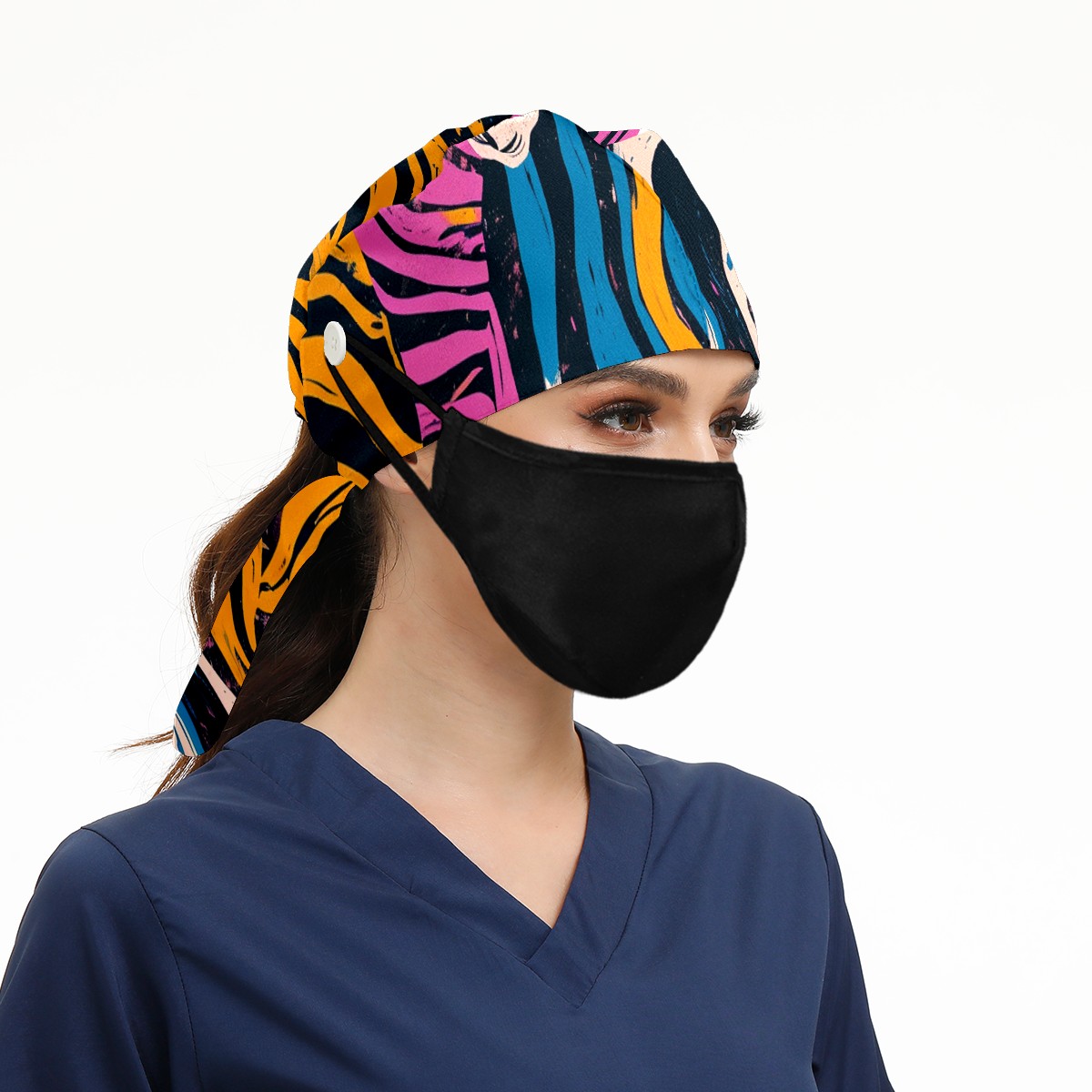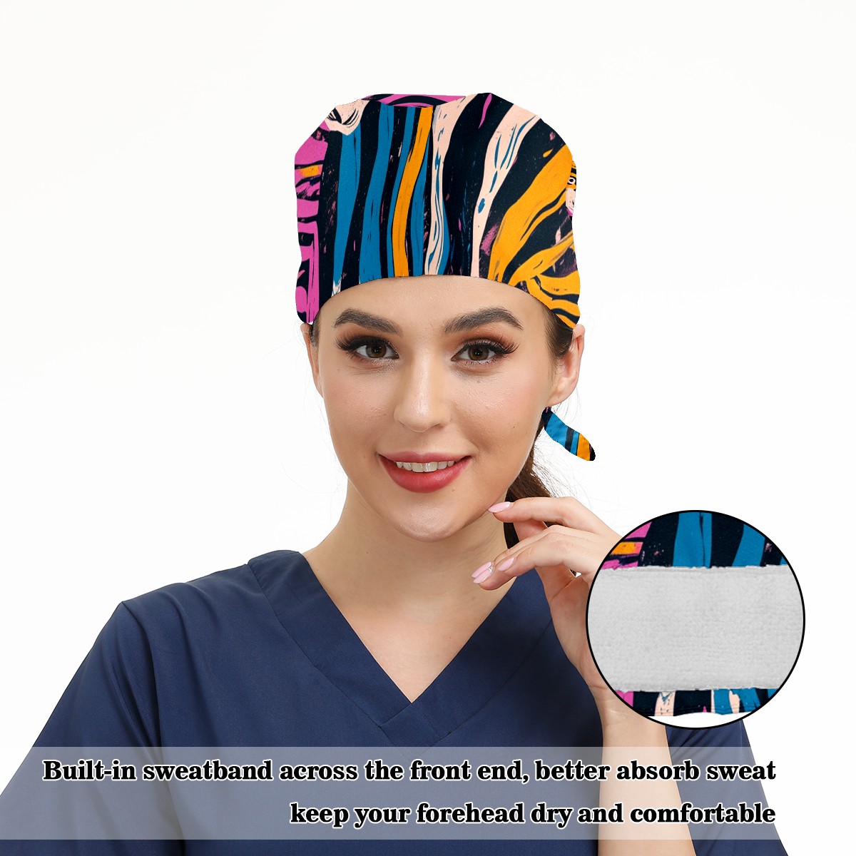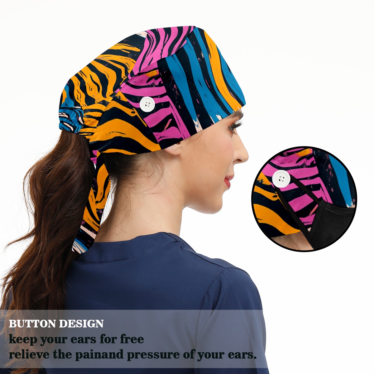 Working Caps with Button&Sweatband Satin Lined Cotton Adjustable Nurse Hats Elastic Band Scrub Cap Surgeon Hat Easter 69
