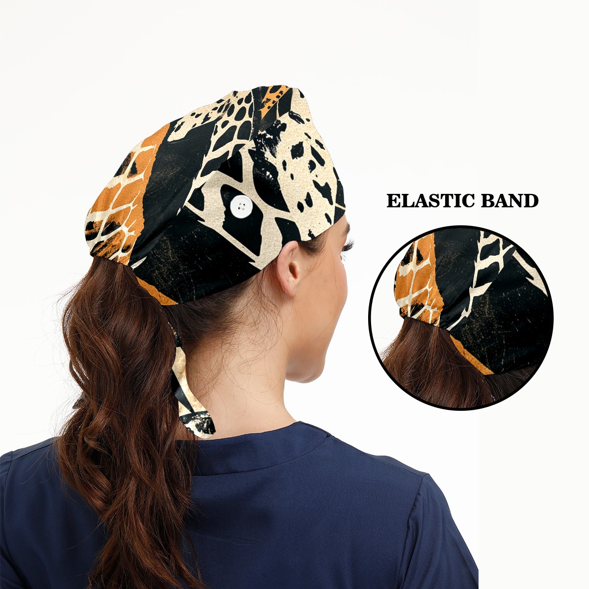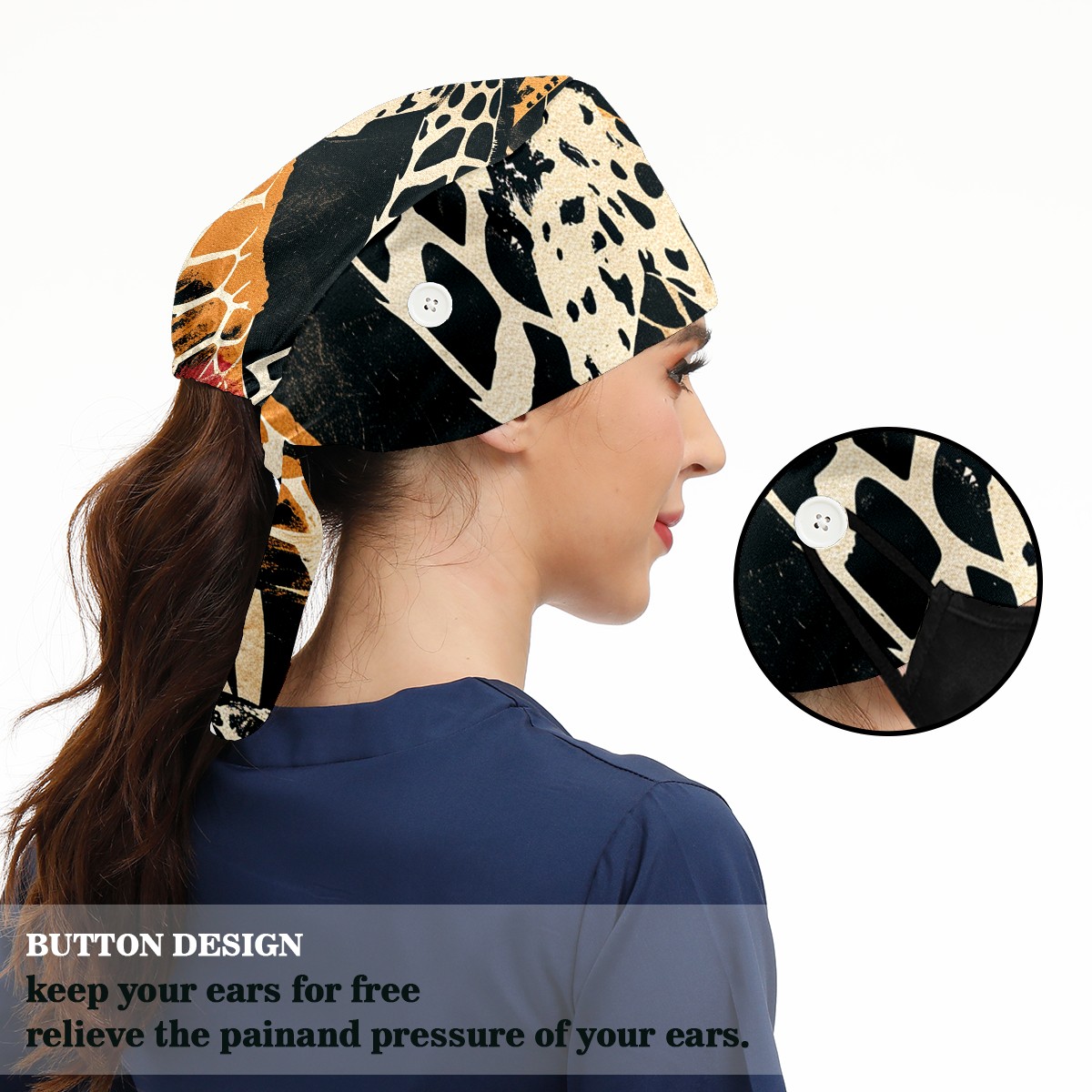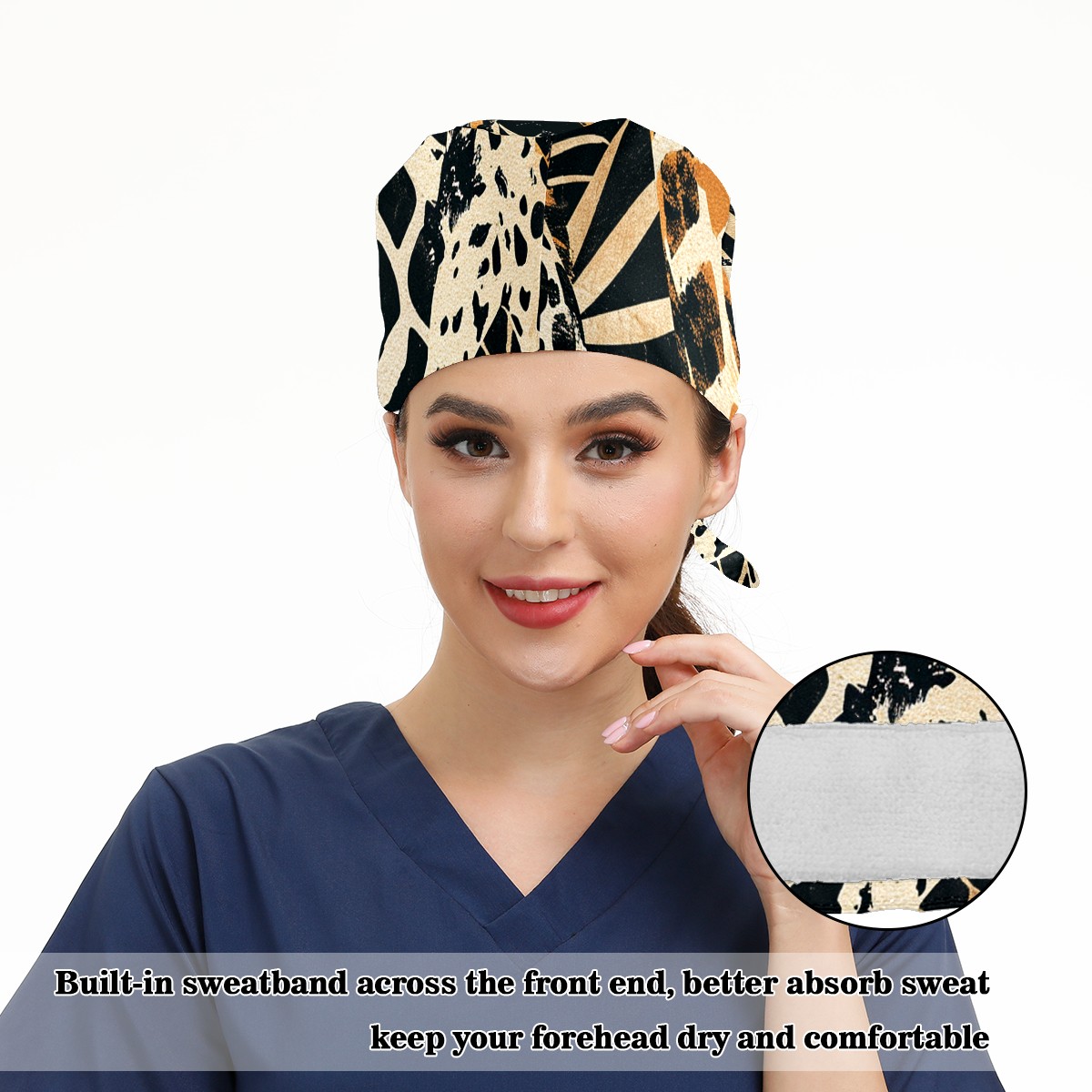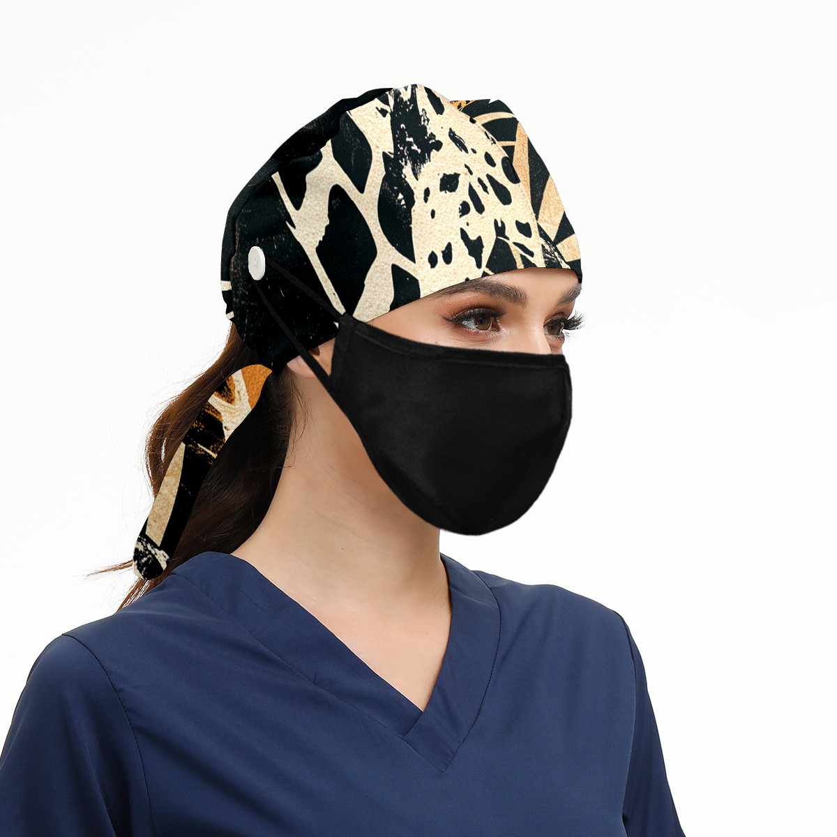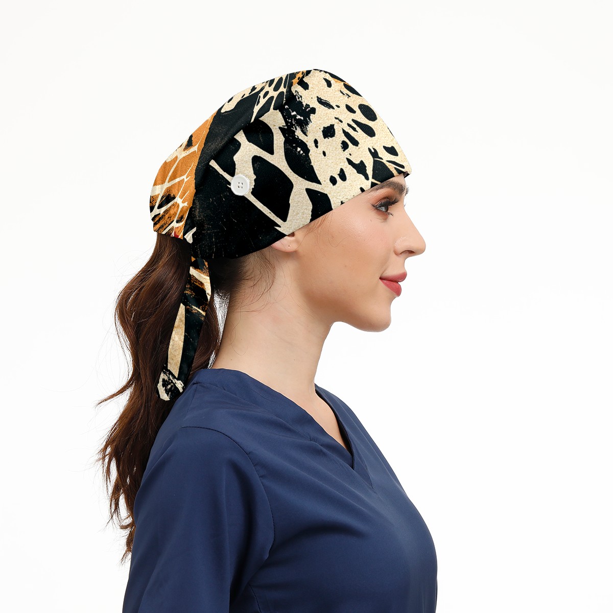 Working Caps with Button&Sweatband Satin Lined Cotton Adjustable Nurse Hats Elastic Band Scrub Cap Surgeon Hat Easter 66