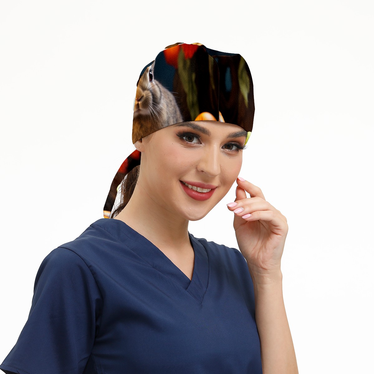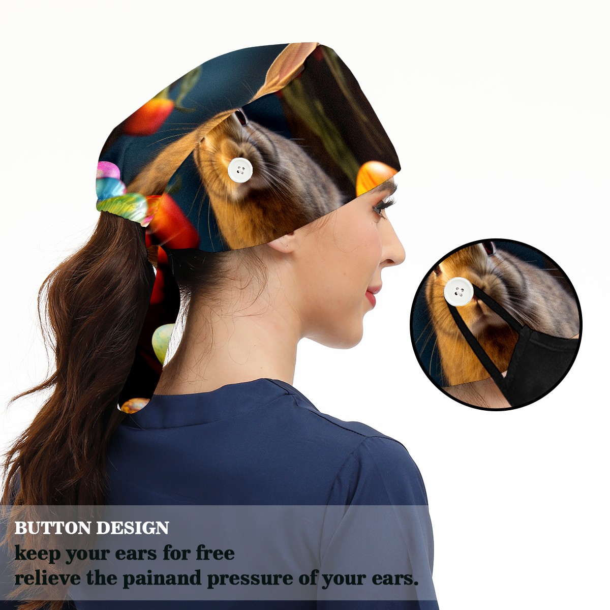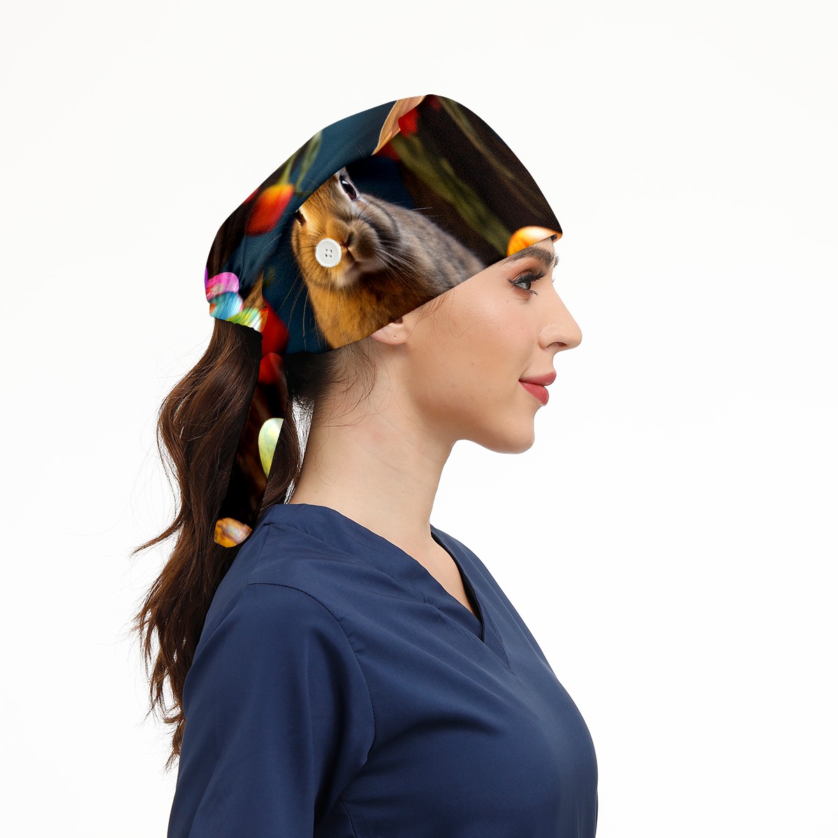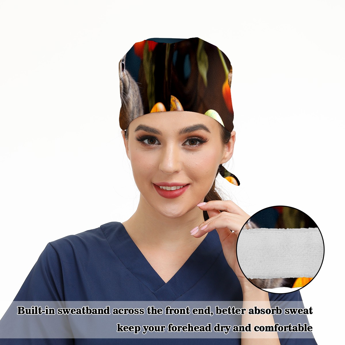 Working Caps with Button&Sweatband Satin Lined Cotton Adjustable Nurse Hats Elastic Band Scrub Cap Surgeon Hat Easter (167)