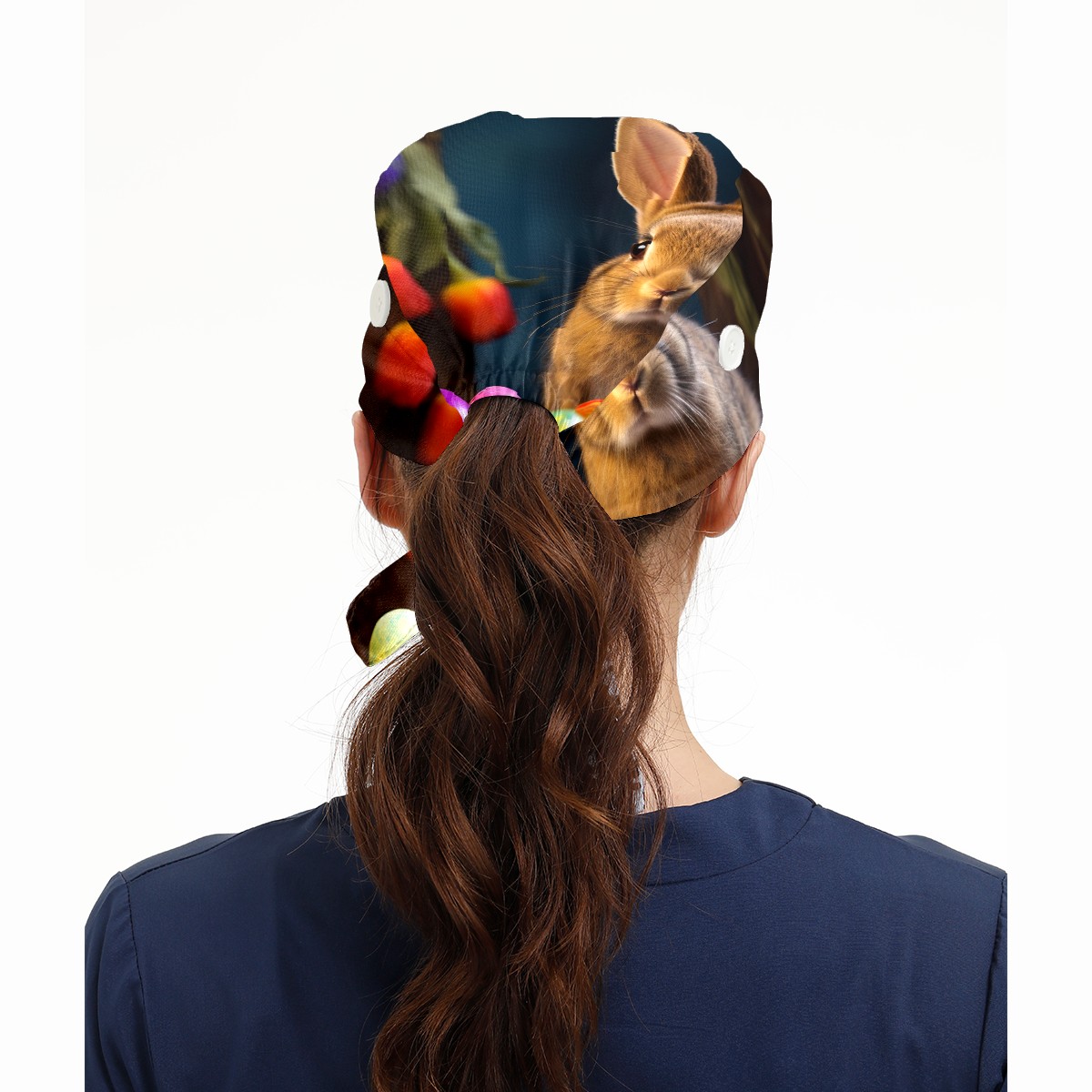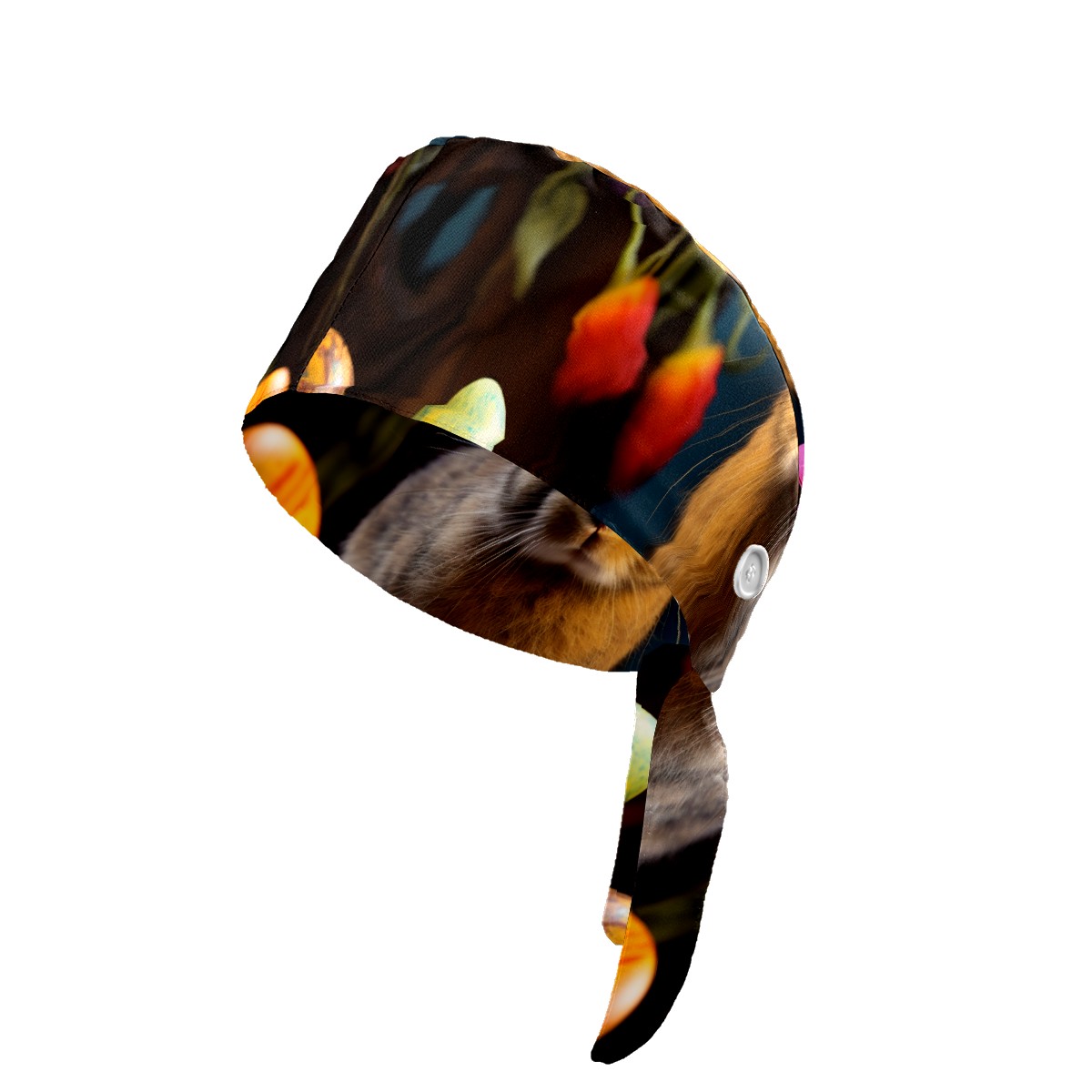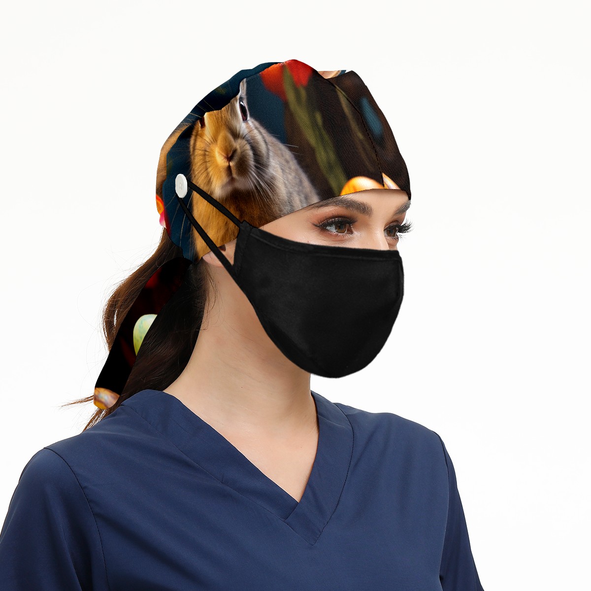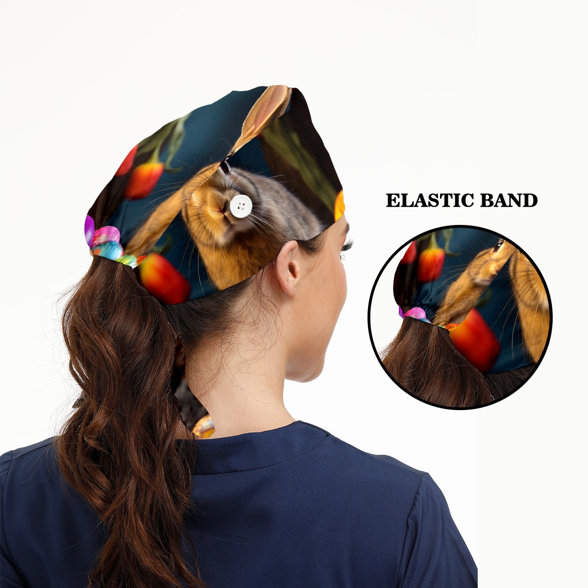 Working Caps with Button&Sweatband Satin Lined Cotton Adjustable Nurse Hats Elastic Band Scrub Cap Surgeon Hat Easter (167)