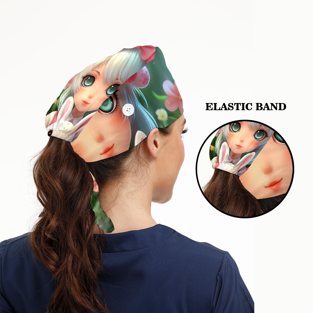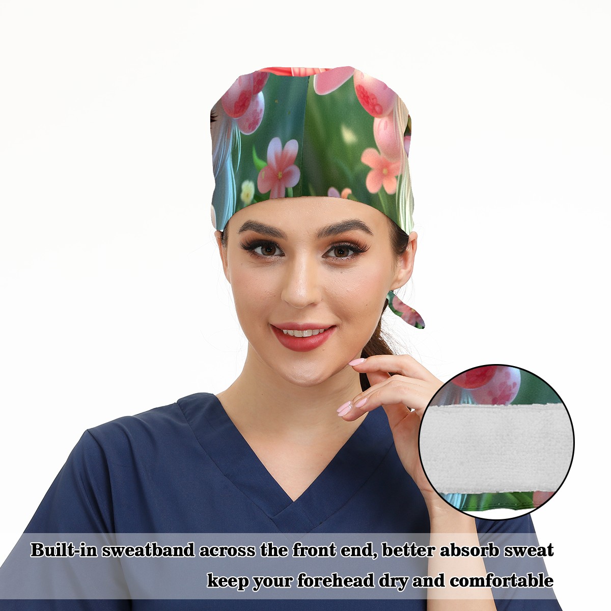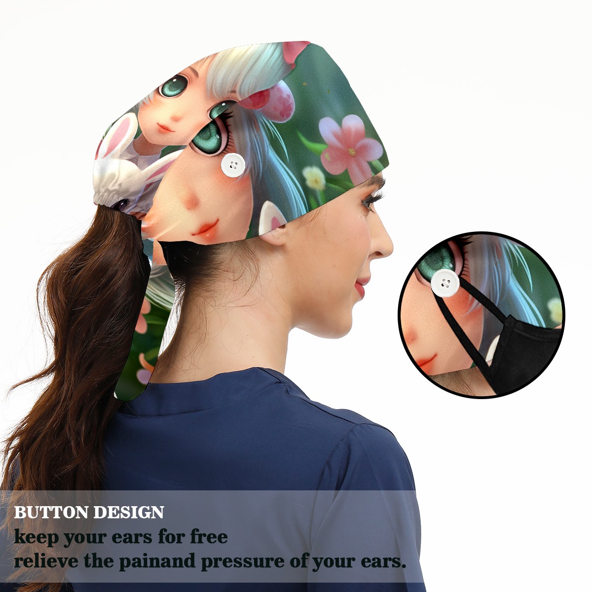Working Caps with Button&Sweatband Satin Lined Cotton Adjustable Nurse Hats Elastic Band Scrub Cap Surgeon Hat Easter (159)