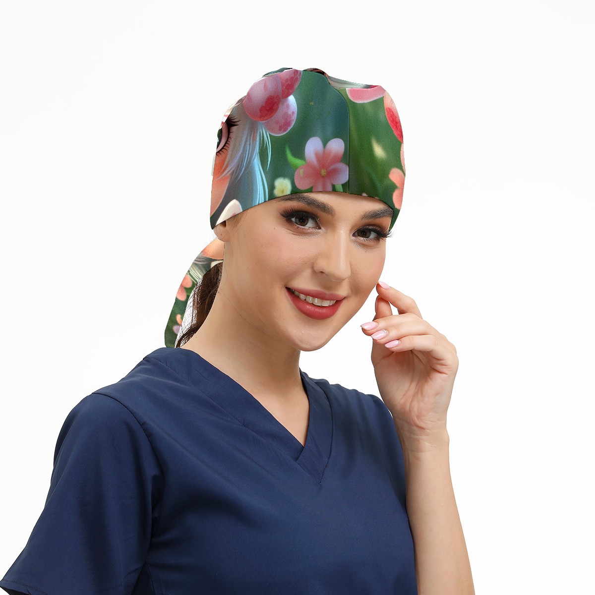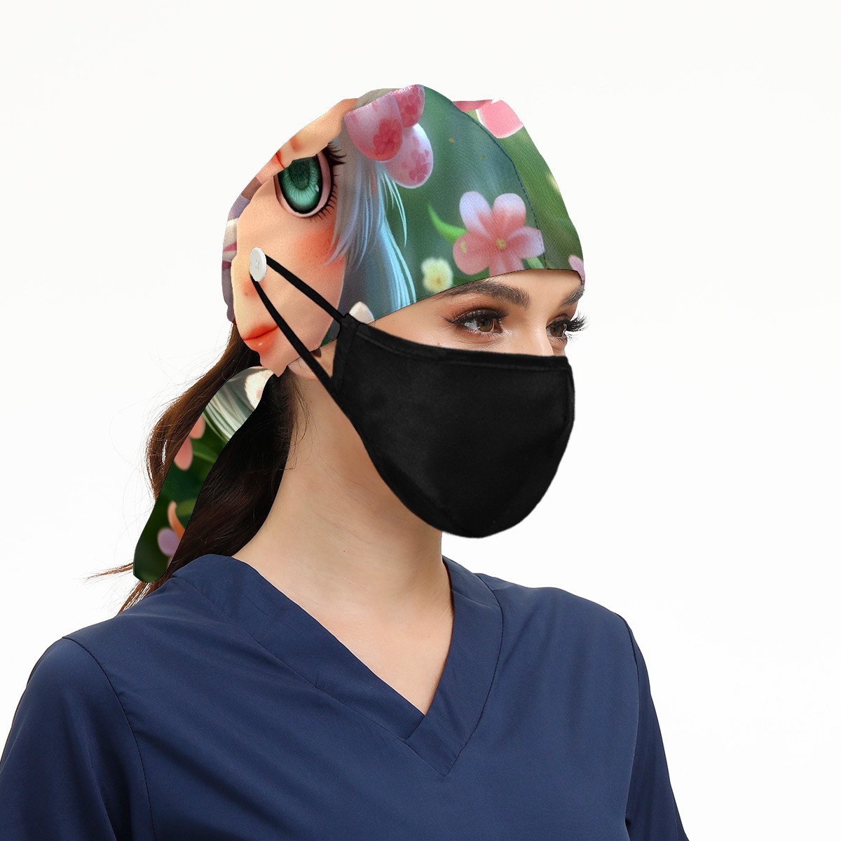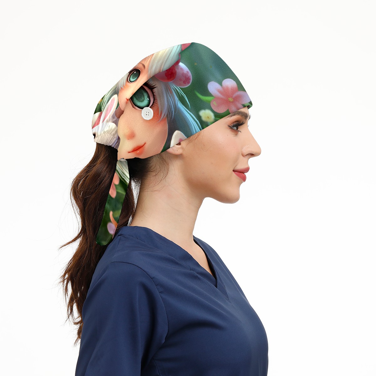 Working Caps with Button&Sweatband Satin Lined Cotton Adjustable Nurse Hats Elastic Band Scrub Cap Surgeon Hat Easter (159)