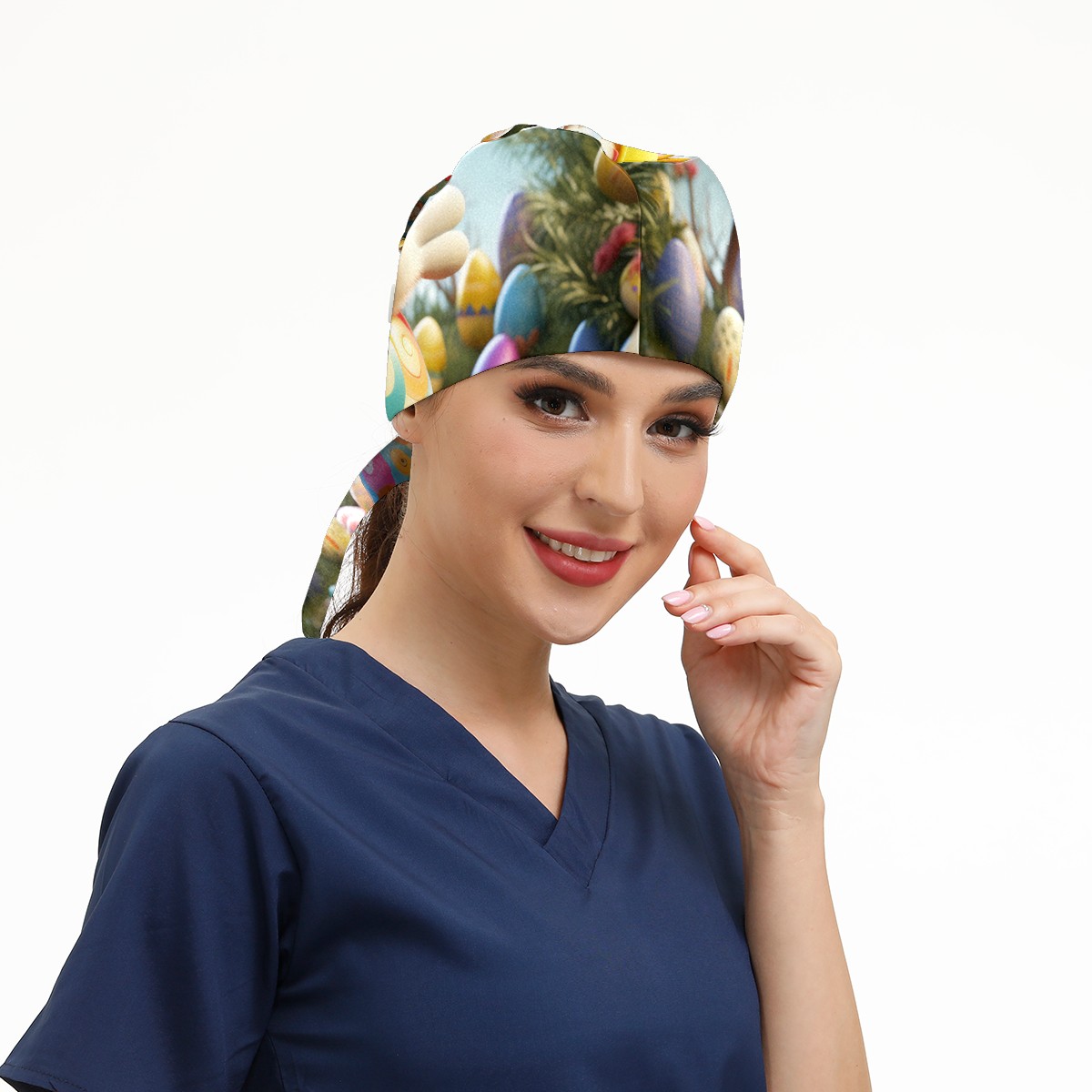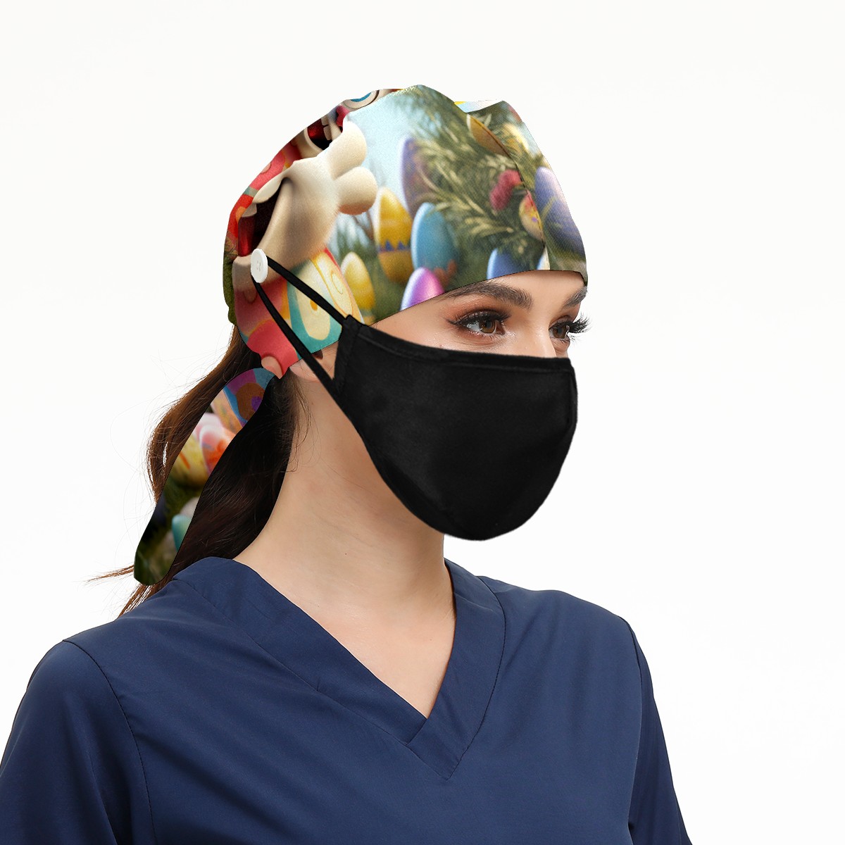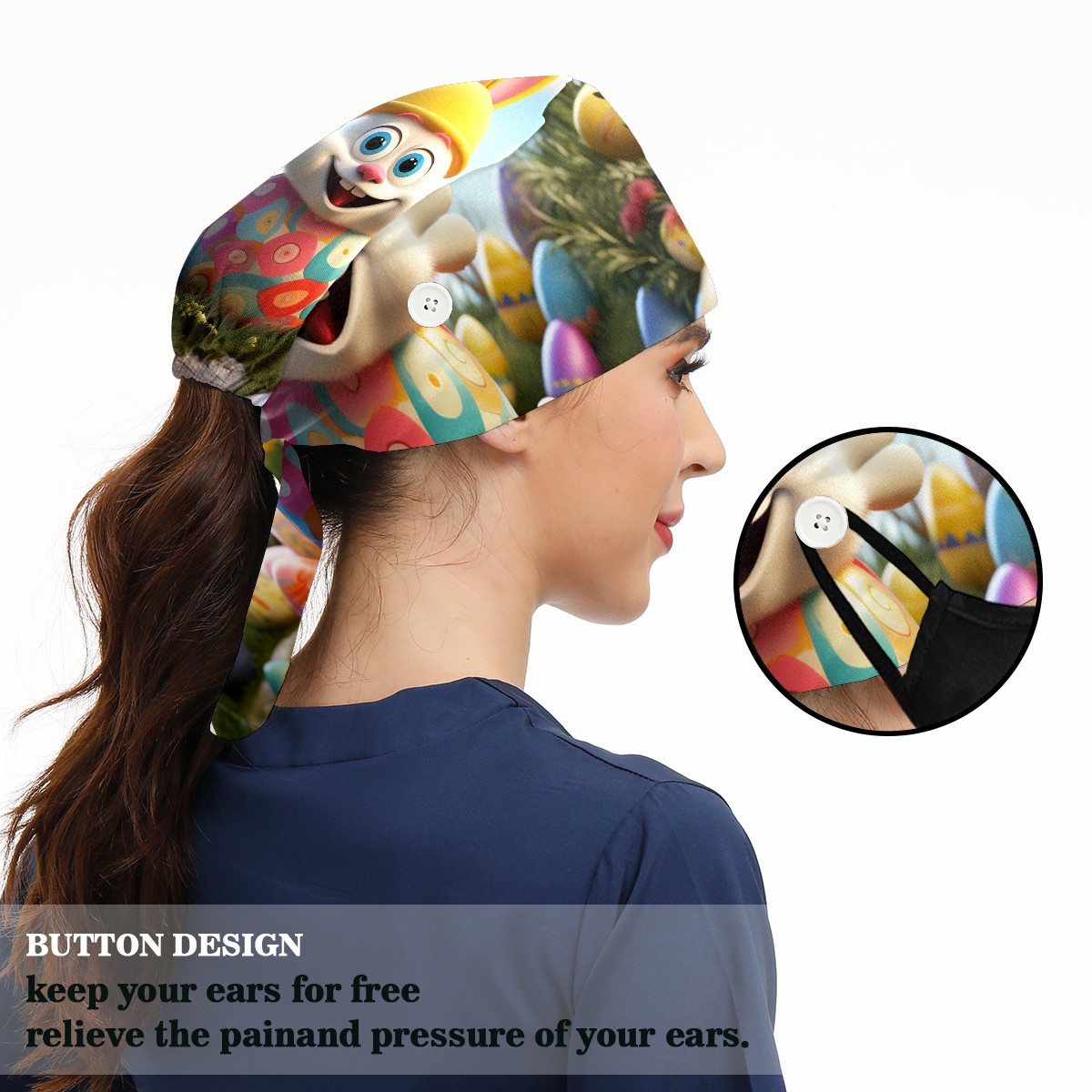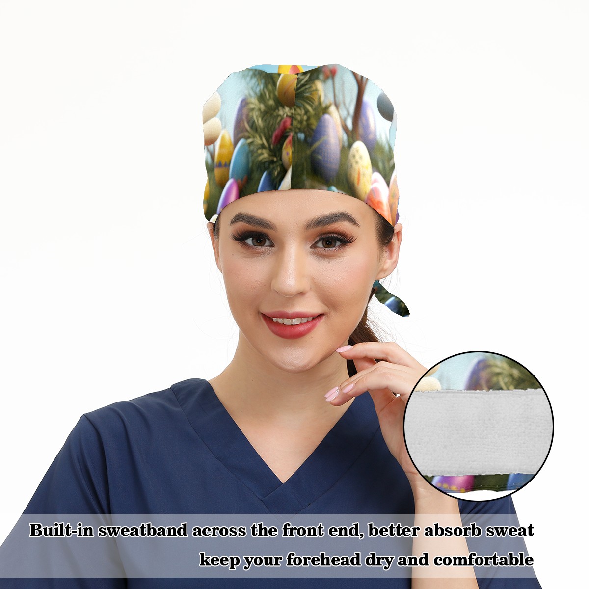 Working Caps with Button&Sweatband Satin Lined Cotton Adjustable Nurse Hats Elastic Band Scrub Cap Surgeon Hat Easter (153)