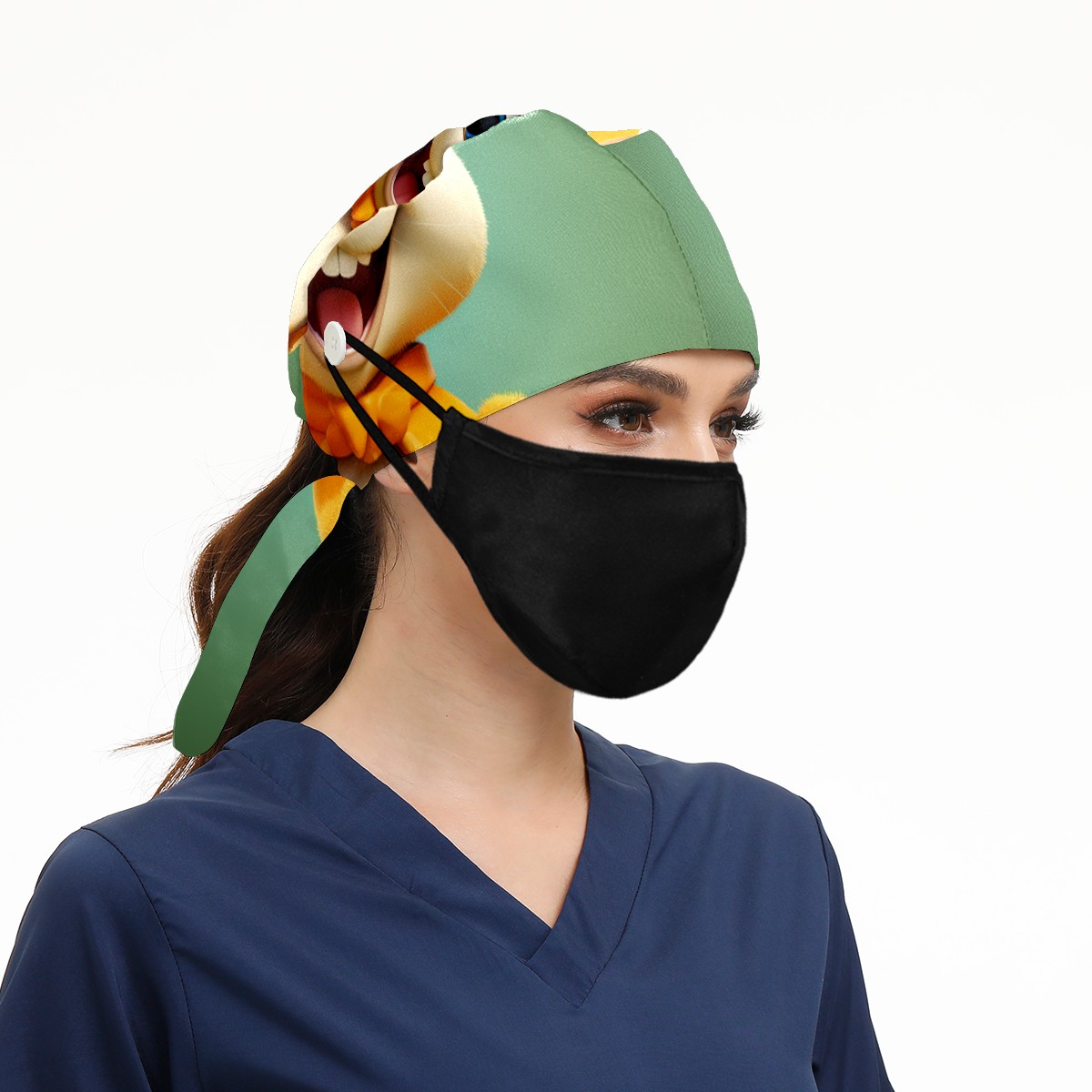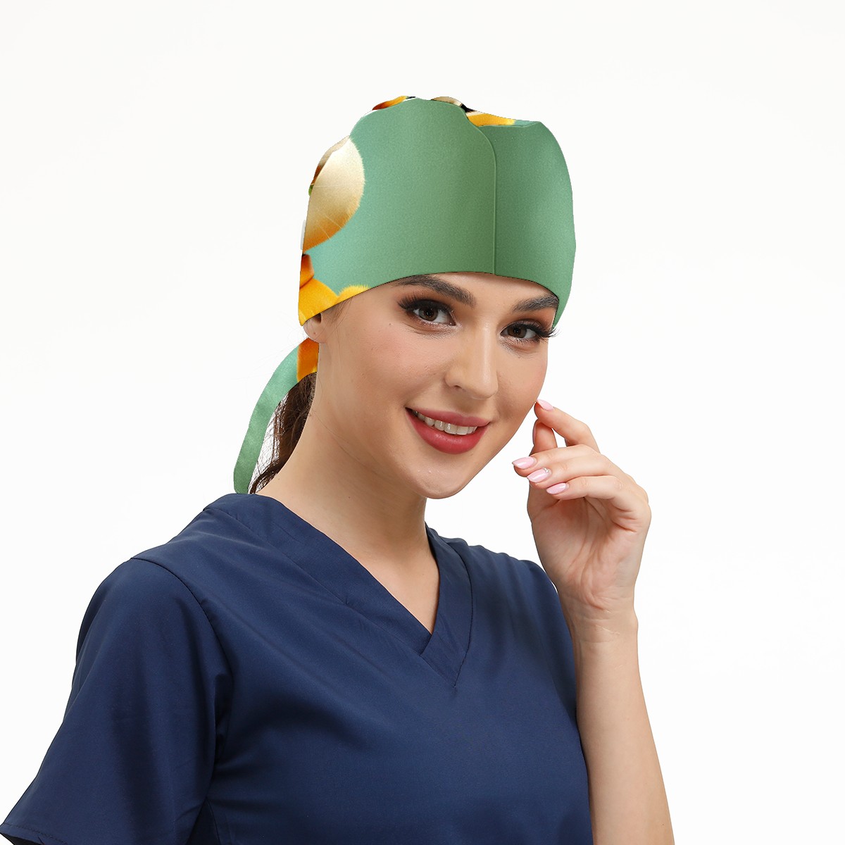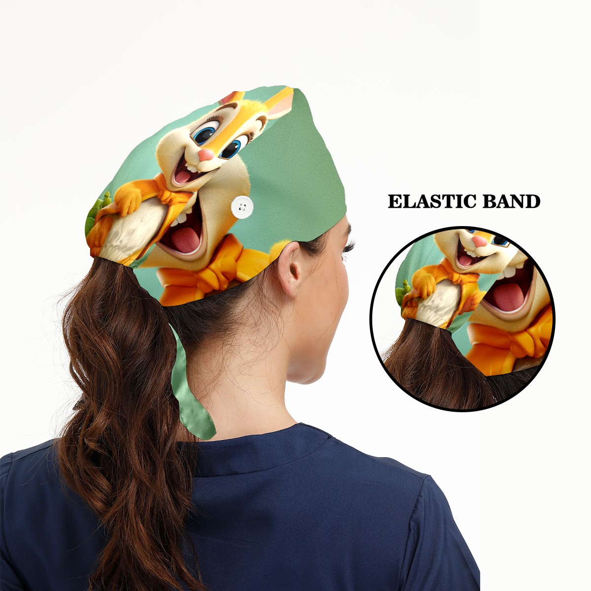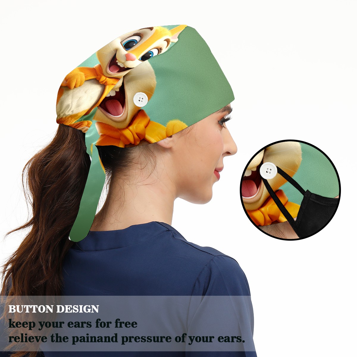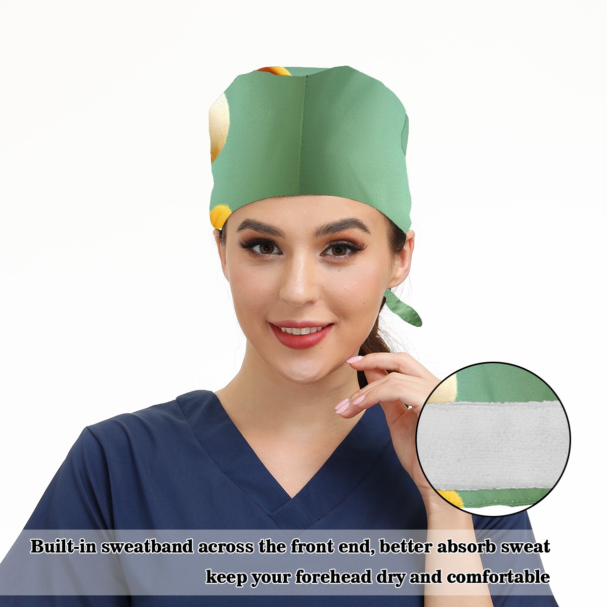 Working Caps with Button&Sweatband Satin Lined Cotton Adjustable Nurse Hats Elastic Band Scrub Cap Surgeon Hat Easter (150)