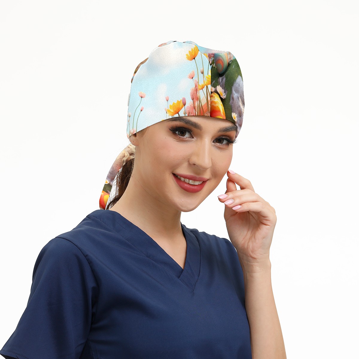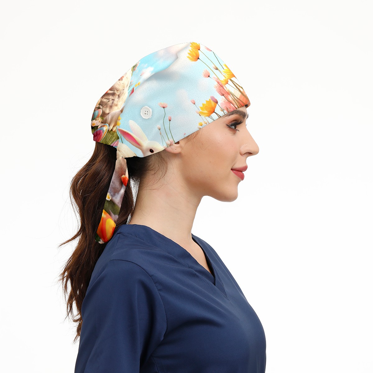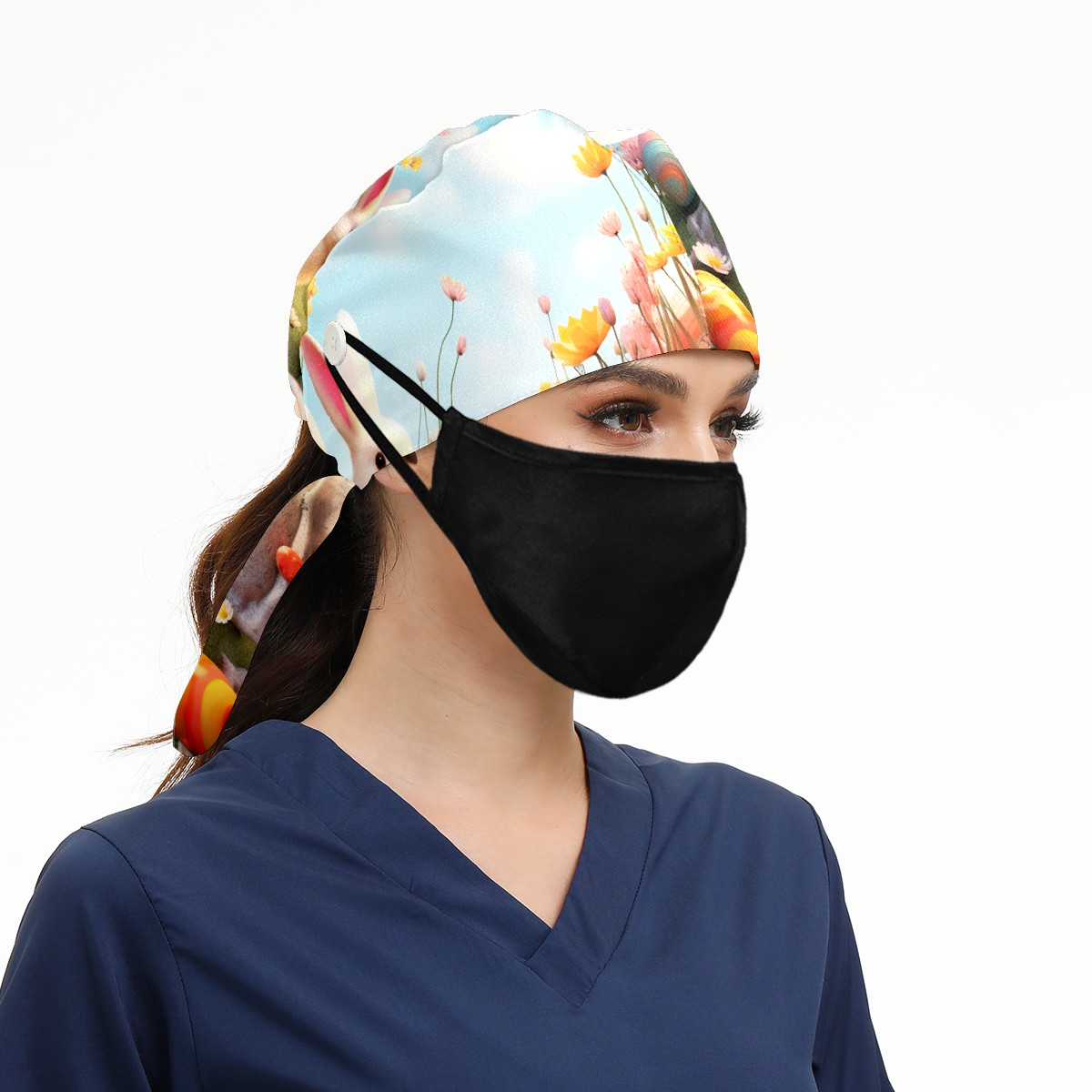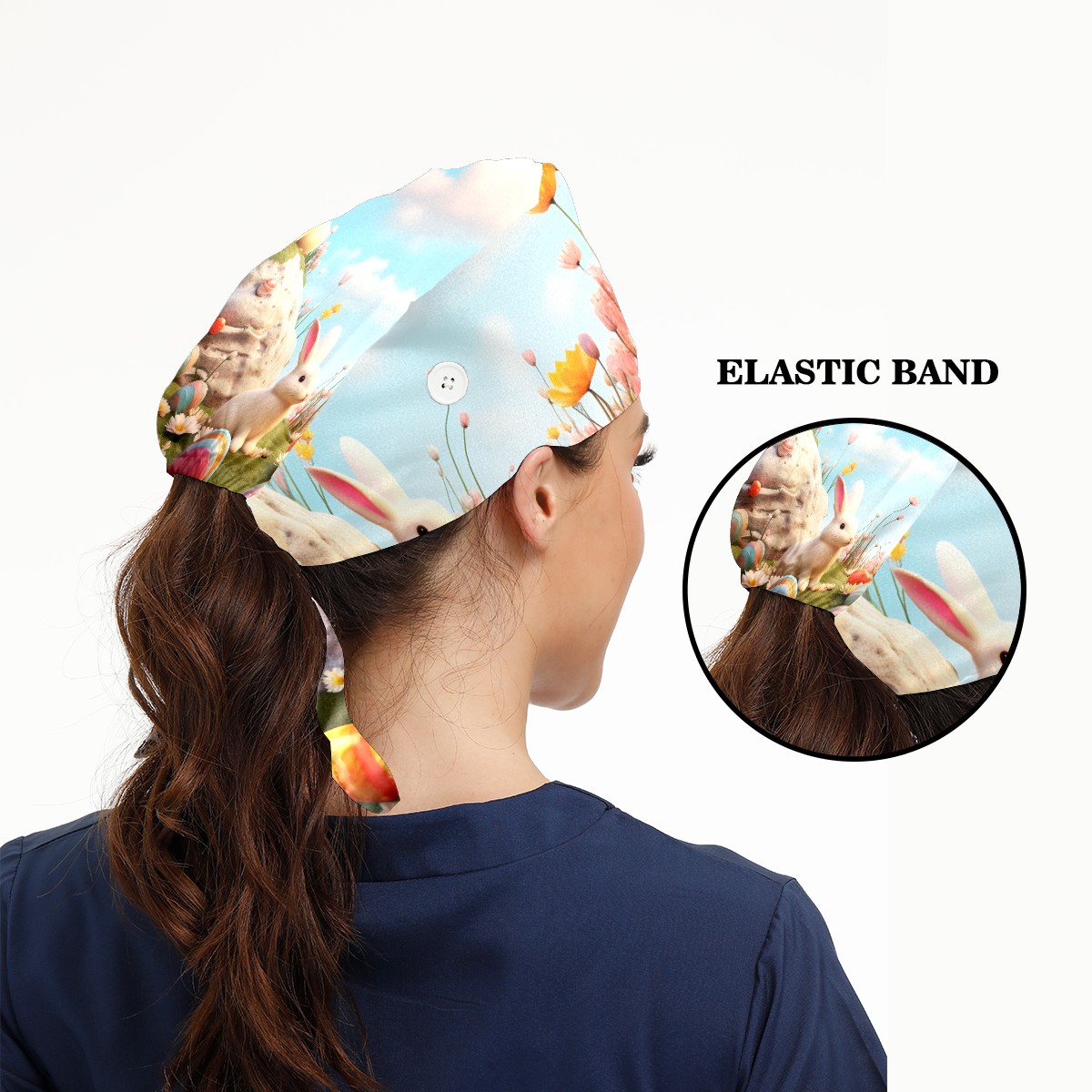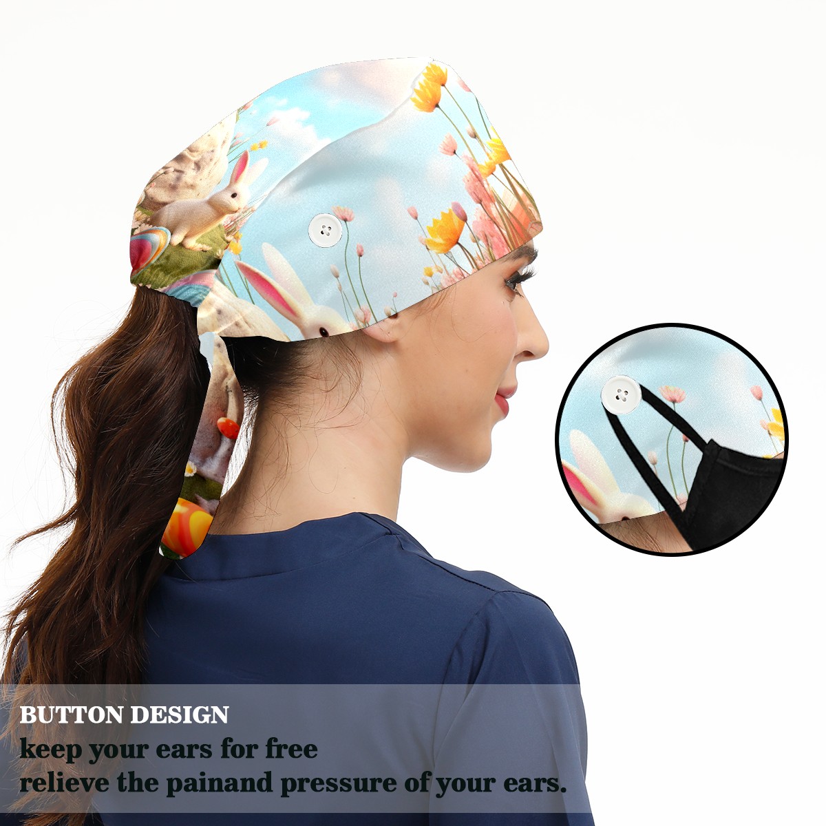 Working Caps with Button&Sweatband Satin Lined Cotton Adjustable Nurse Hats Elastic Band Scrub Cap Surgeon Hat Easter (146)