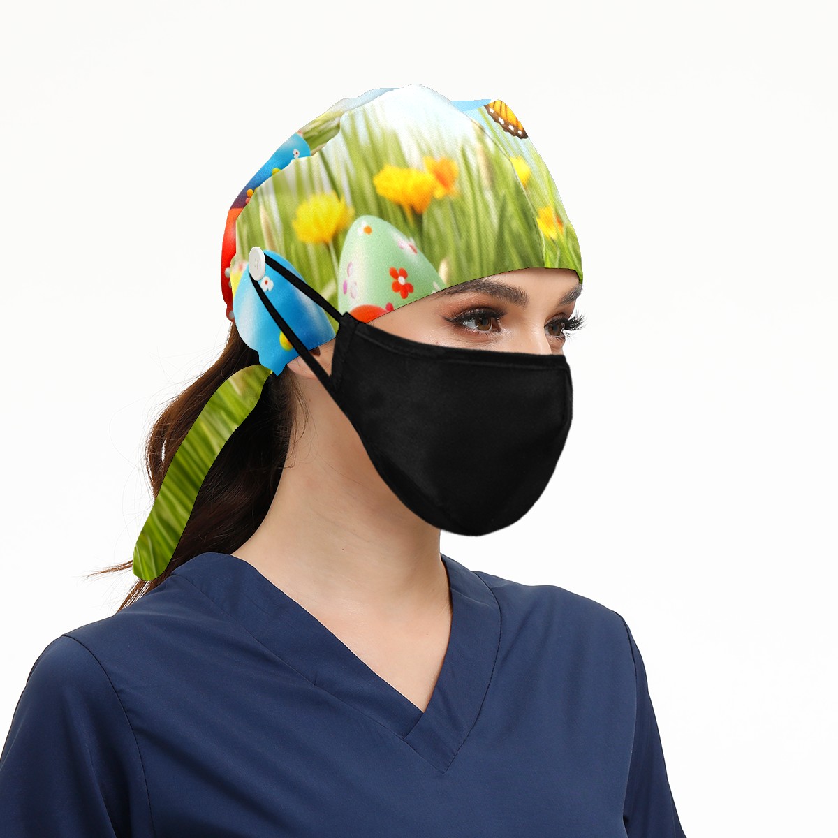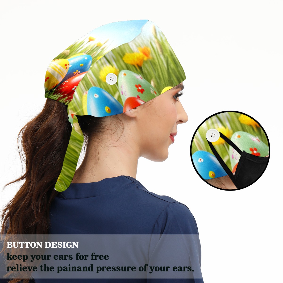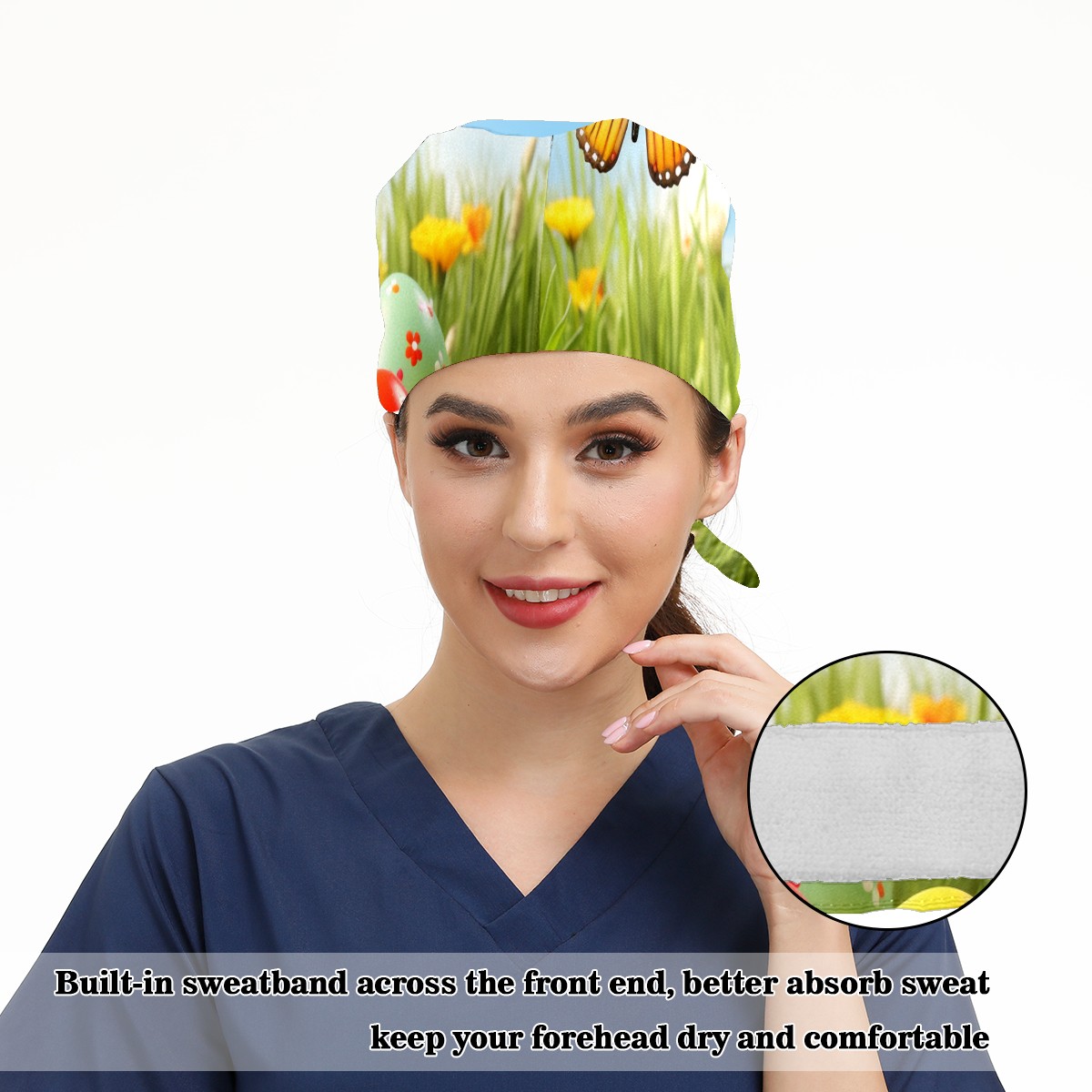 Working Caps with Button&Sweatband Satin Lined Cotton Adjustable Nurse Hats Elastic Band Scrub Cap Surgeon Hat Easter (143)