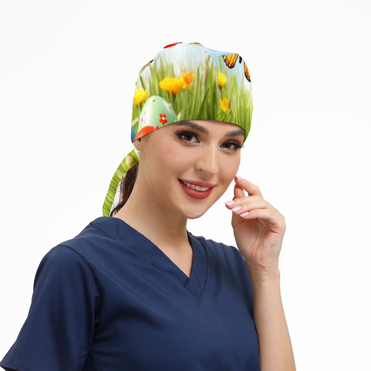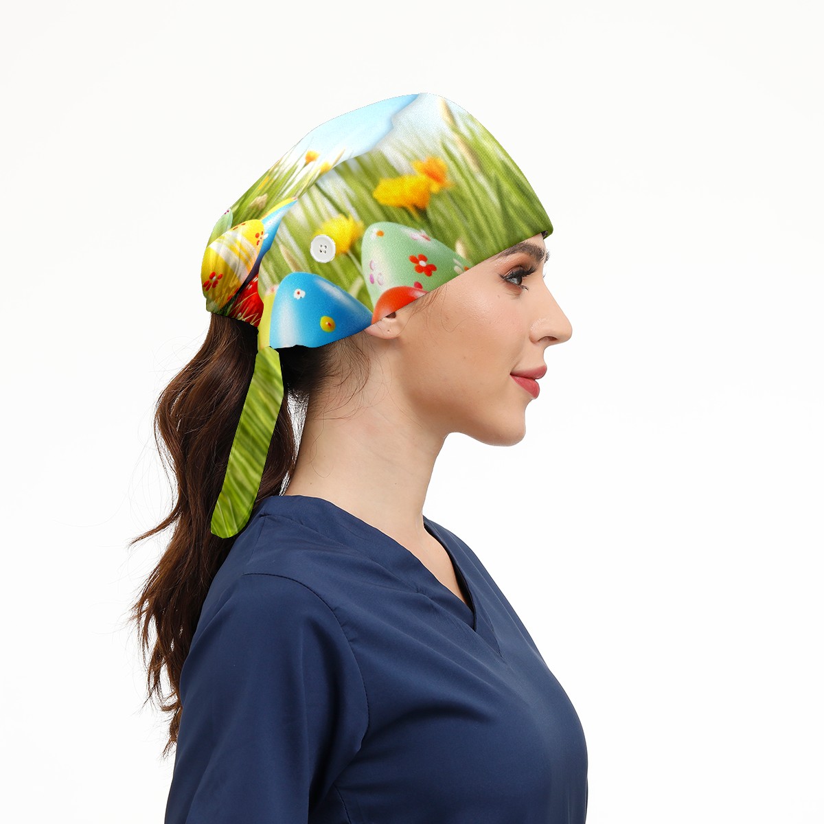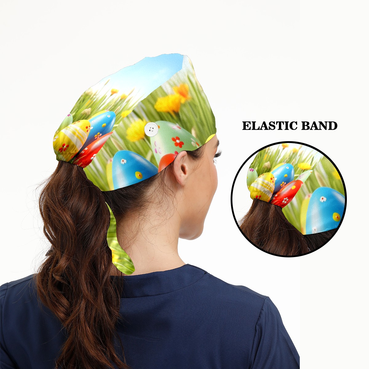 Working Caps with Button&Sweatband Satin Lined Cotton Adjustable Nurse Hats Elastic Band Scrub Cap Surgeon Hat Easter (143)