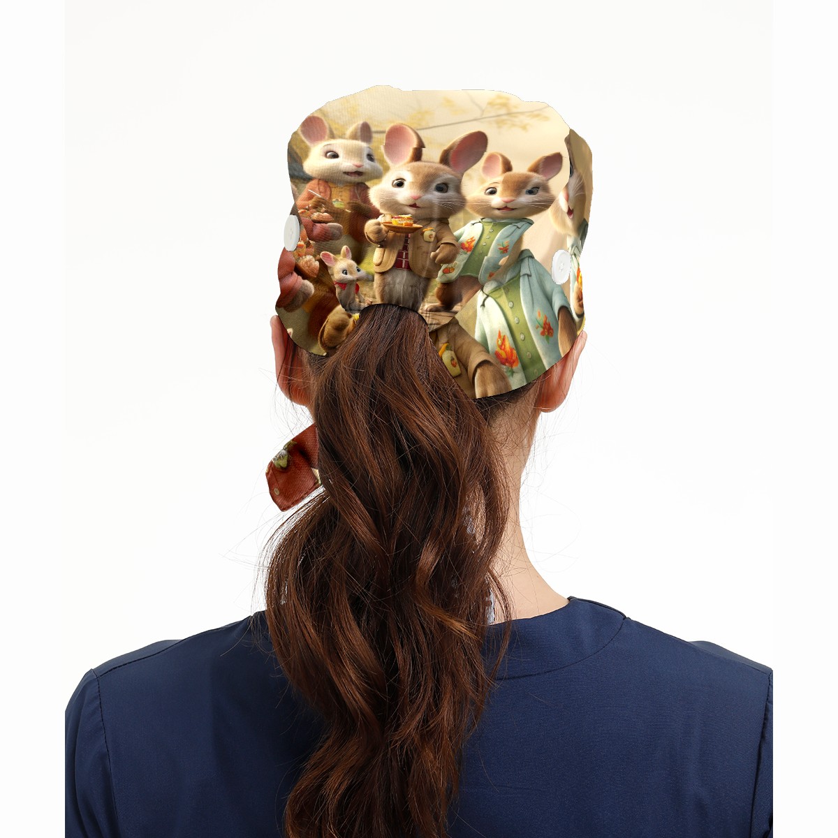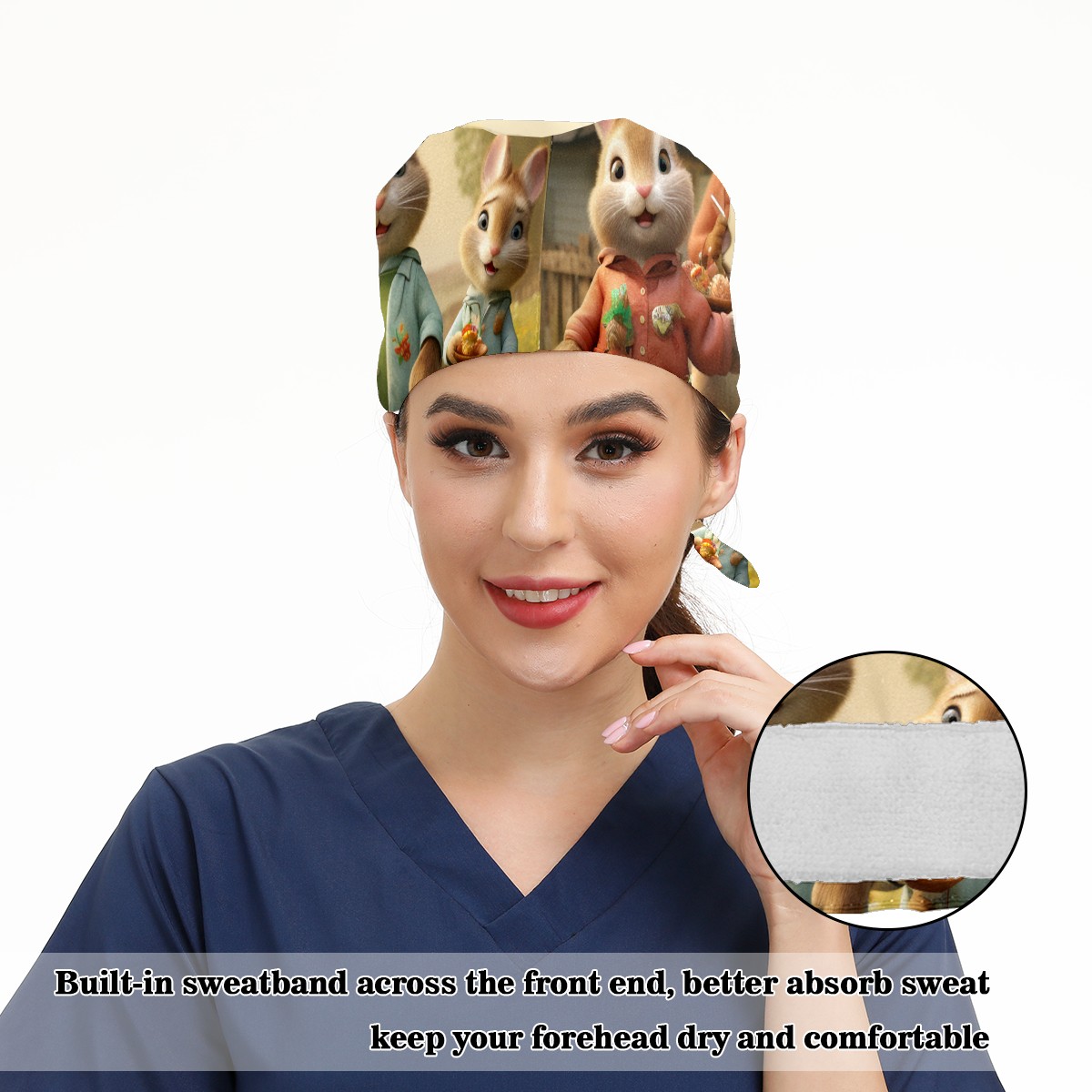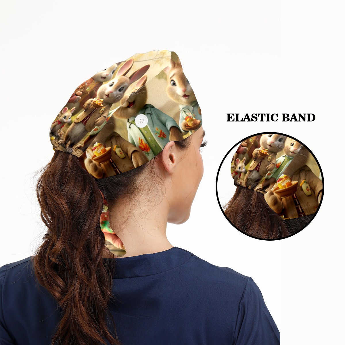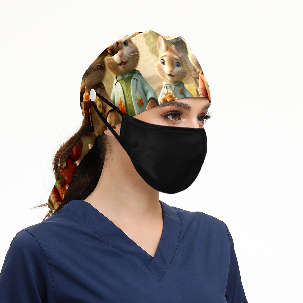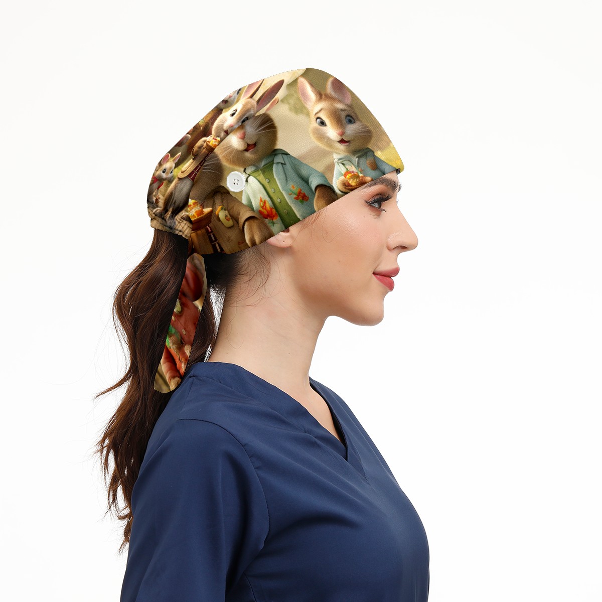 Working Caps with Button&Sweatband Satin Lined Cotton Adjustable Nurse Hats Elastic Band Scrub Cap Surgeon Hat Easter (134)