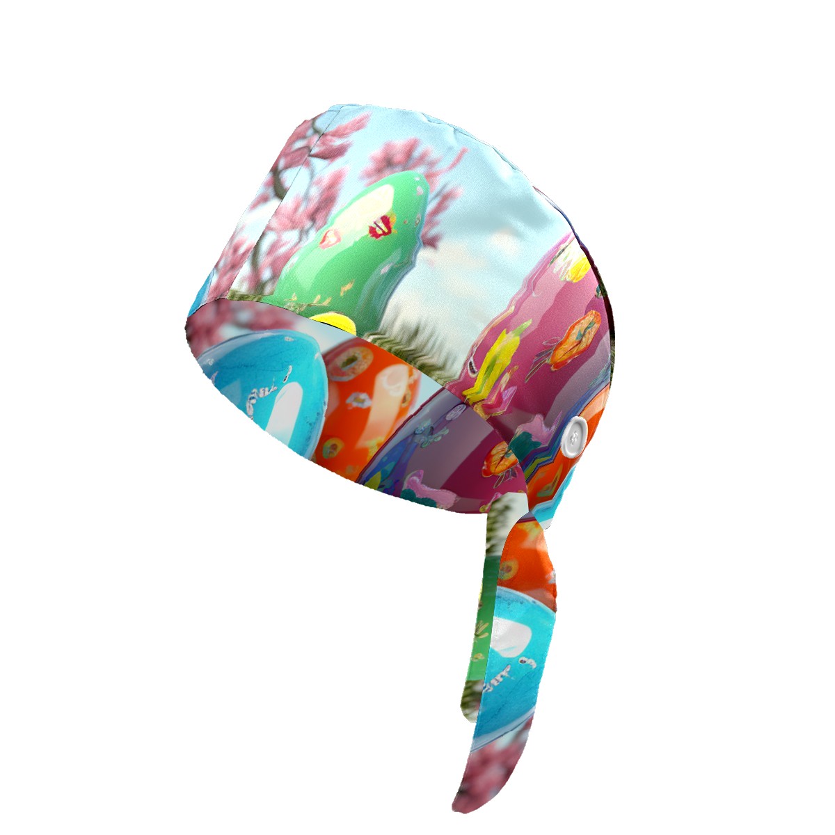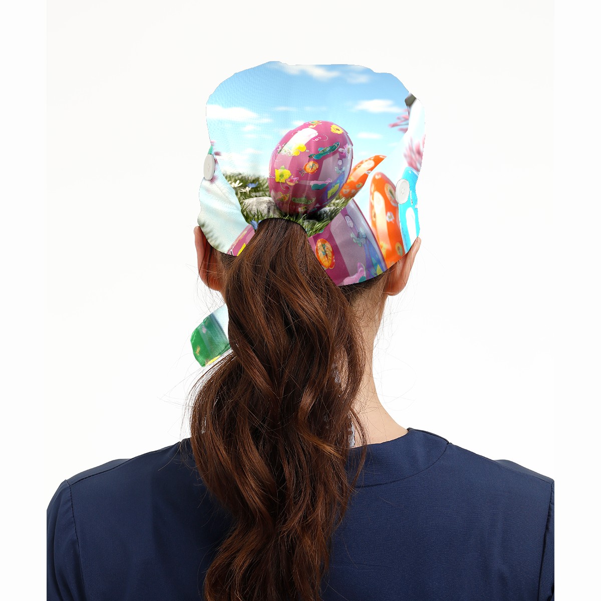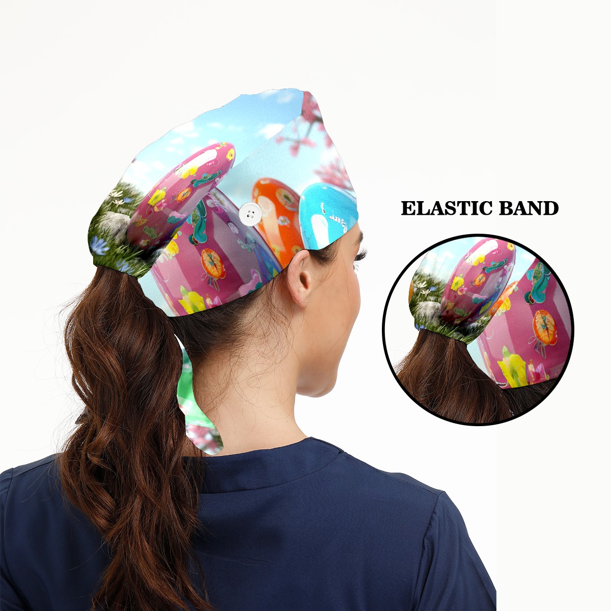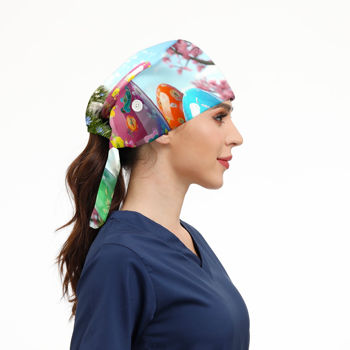 Working Caps with Button&Sweatband Satin Lined Cotton Adjustable Nurse Hats Elastic Band Scrub Cap Surgeon Hat Easter (127)