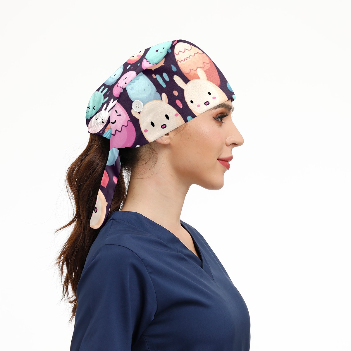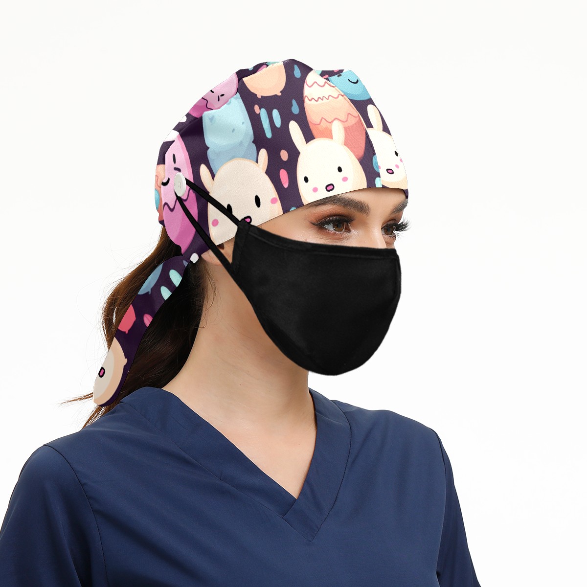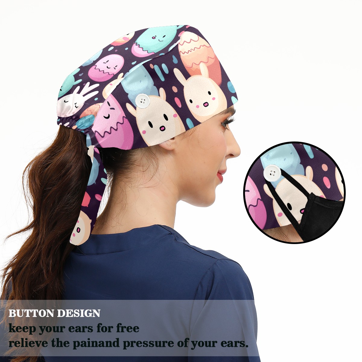 Working Caps with Button&Sweatband Satin Lined Cotton Adjustable Nurse Hats Elastic Band Scrub Cap Surgeon Hat Easter (100)