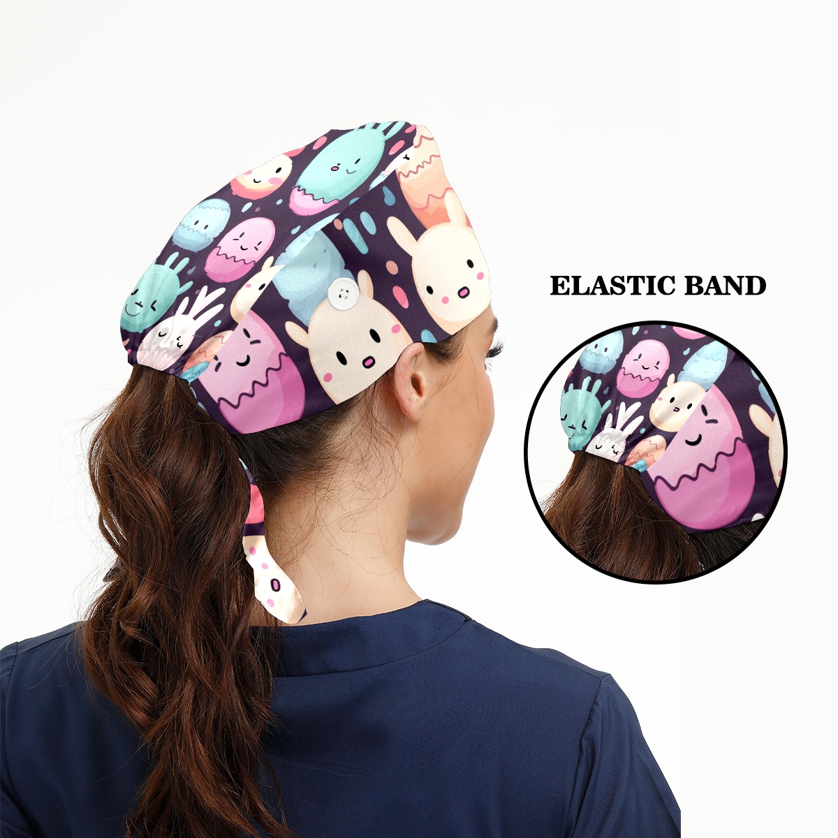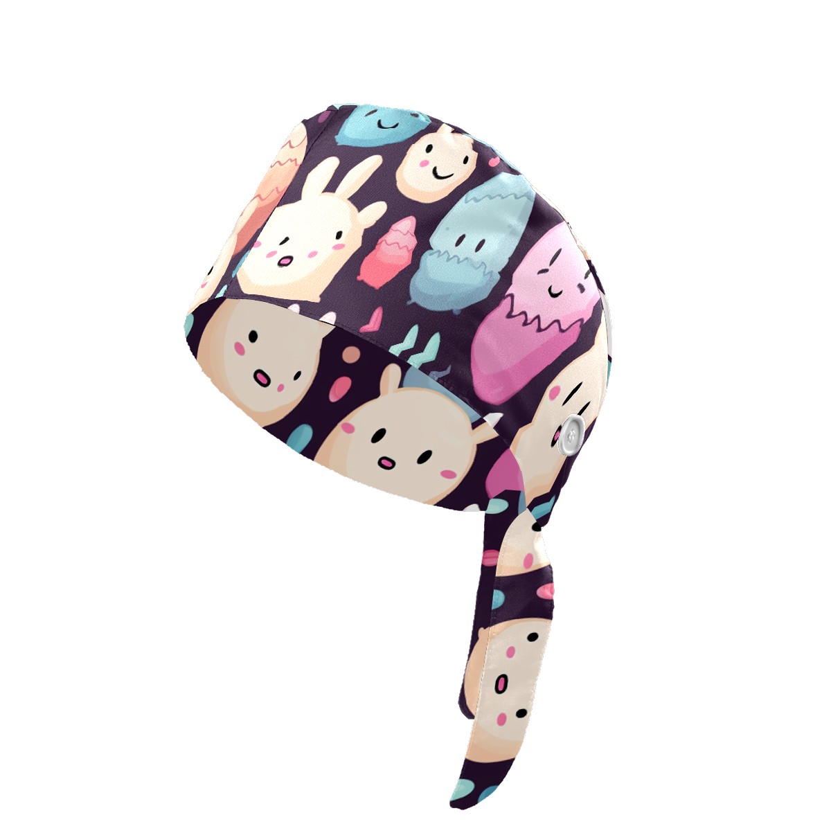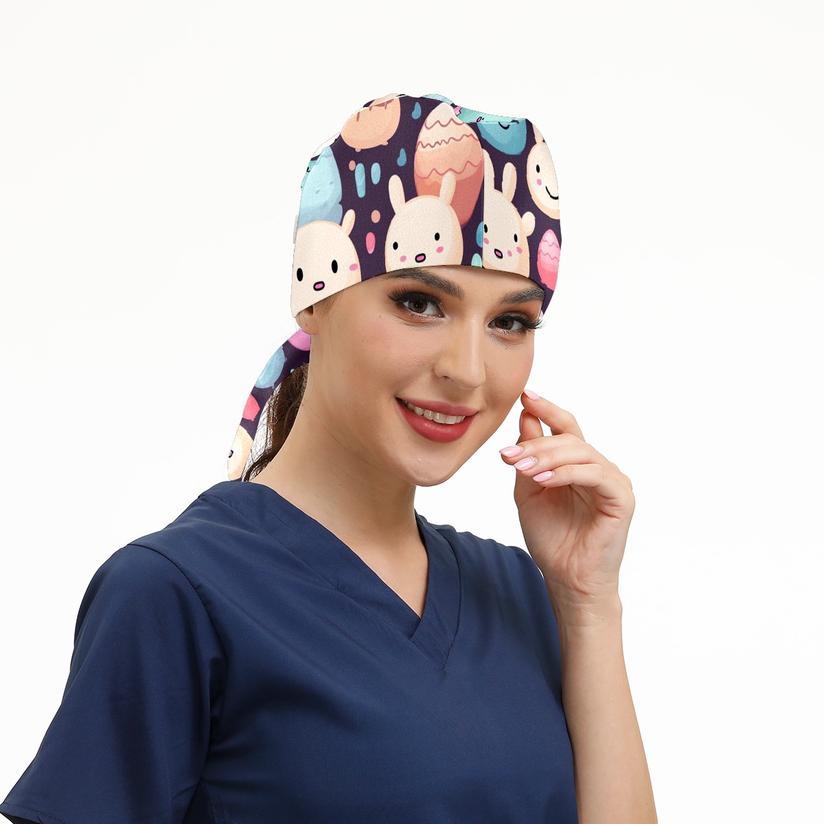 Working Caps with Button&Sweatband Satin Lined Cotton Adjustable Nurse Hats Elastic Band Scrub Cap Surgeon Hat Easter (100)