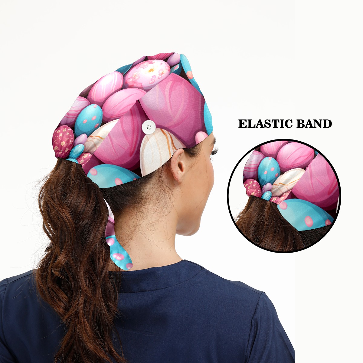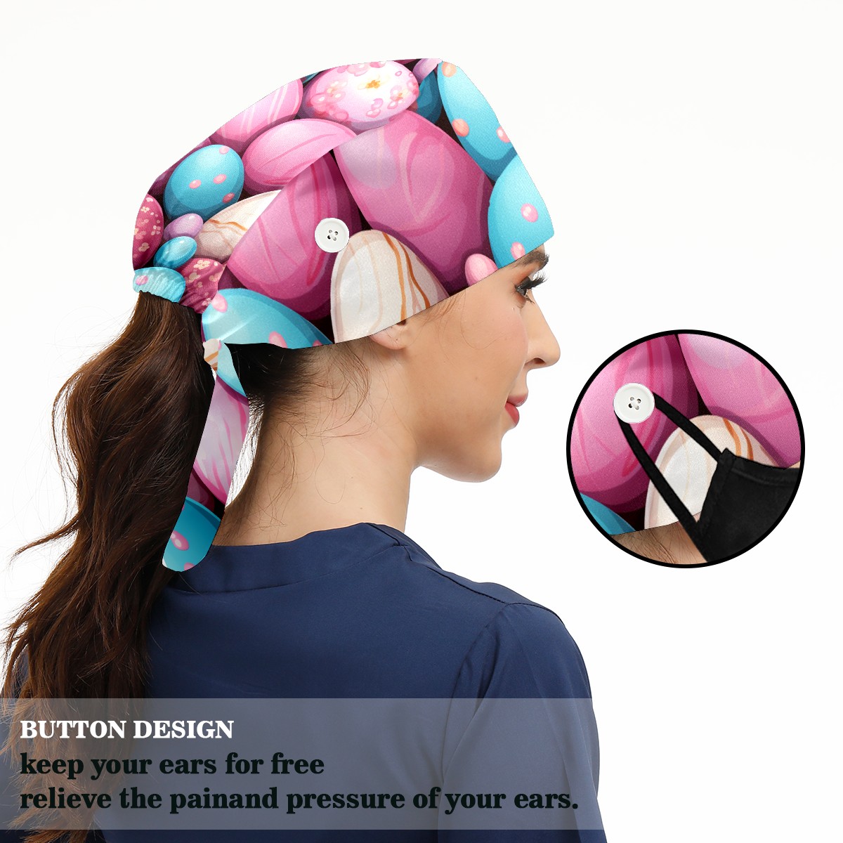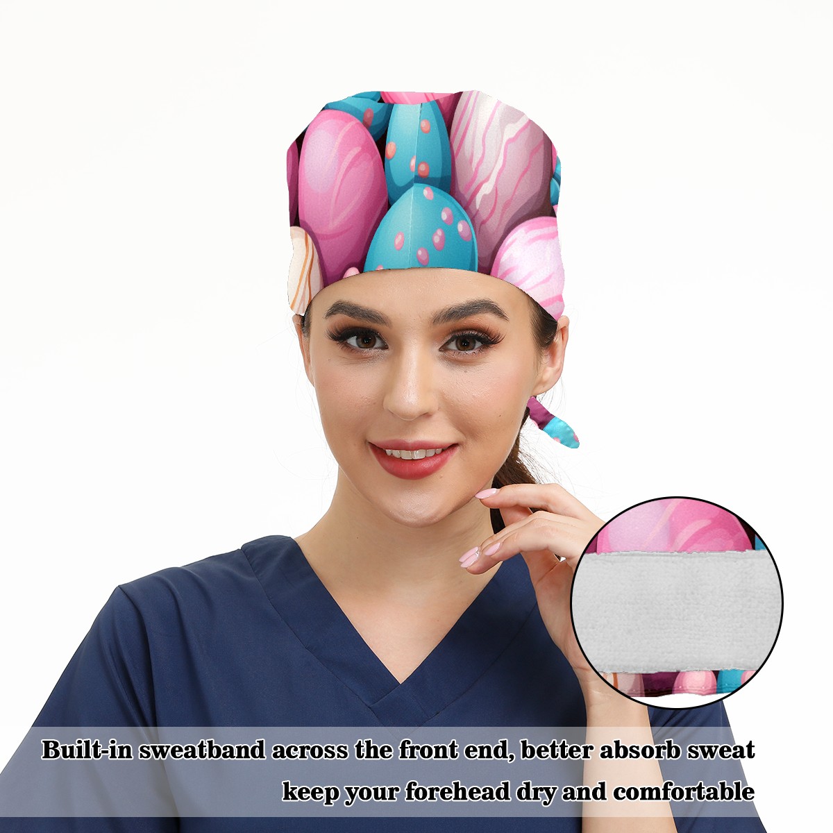 Working Caps with Button&Sweatband Satin Lined Cotton Adjustable Nurse Hats Elastic Band Scrub Cap Surgeon Hat Easter (97)