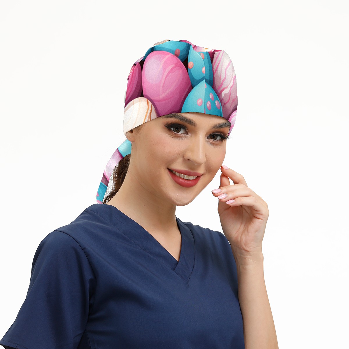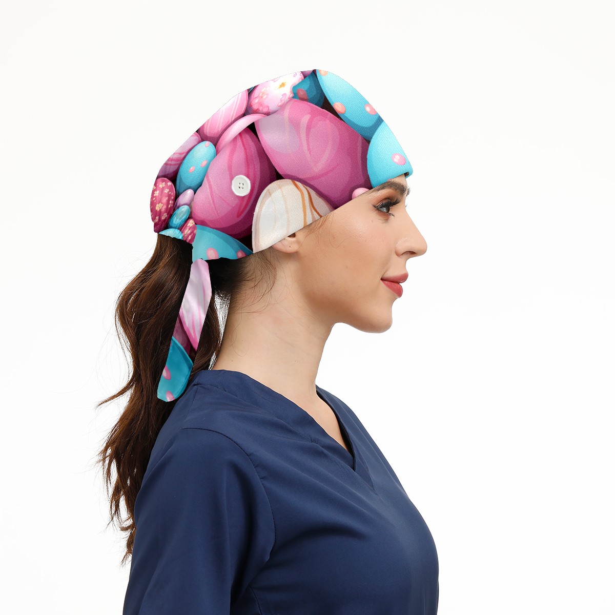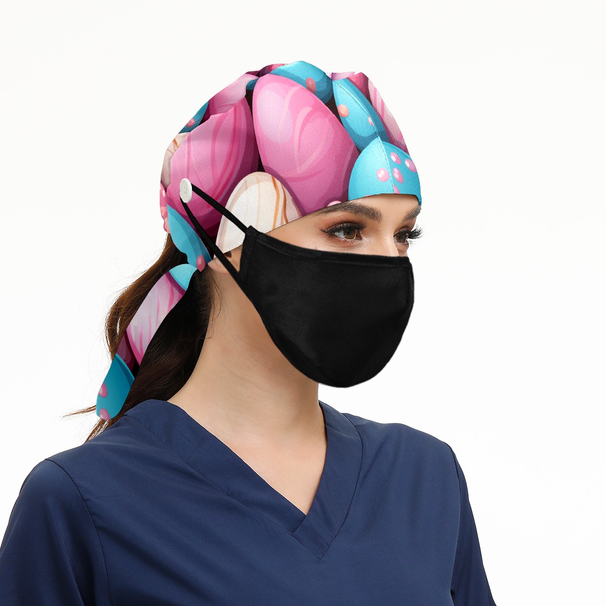 Working Caps with Button&Sweatband Satin Lined Cotton Adjustable Nurse Hats Elastic Band Scrub Cap Surgeon Hat Easter (97)