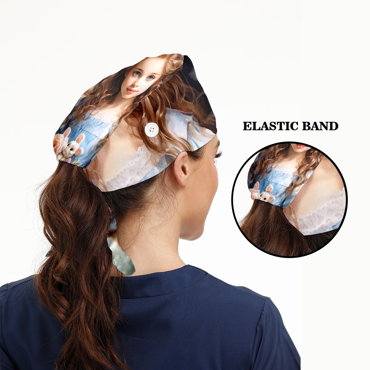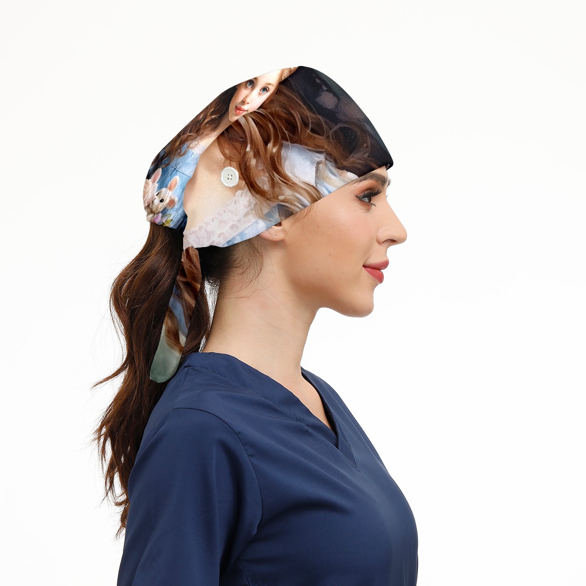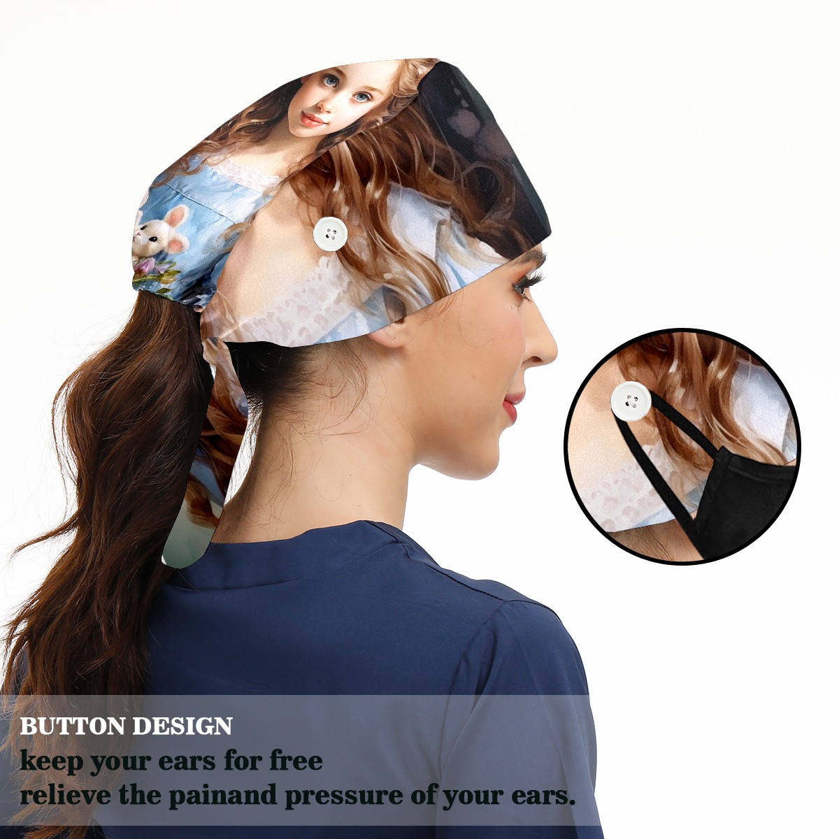 Working Caps with Button&Sweatband Satin Lined Cotton Adjustable Nurse Hats Elastic Band Scrub Cap Surgeon Hat Easter (90)