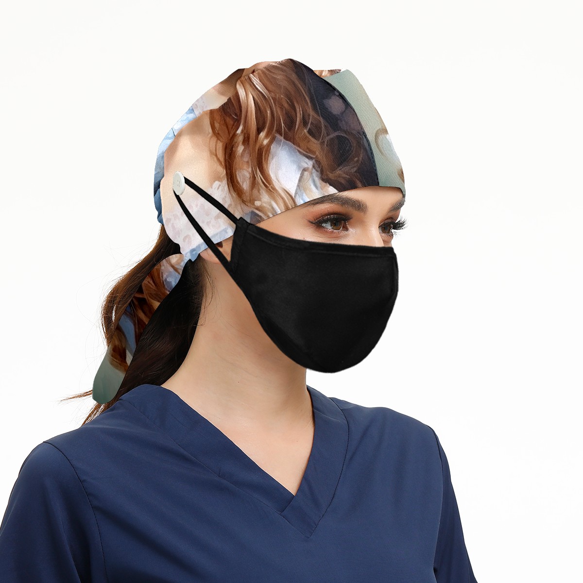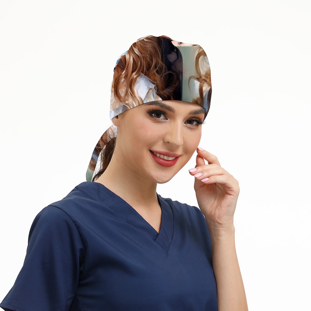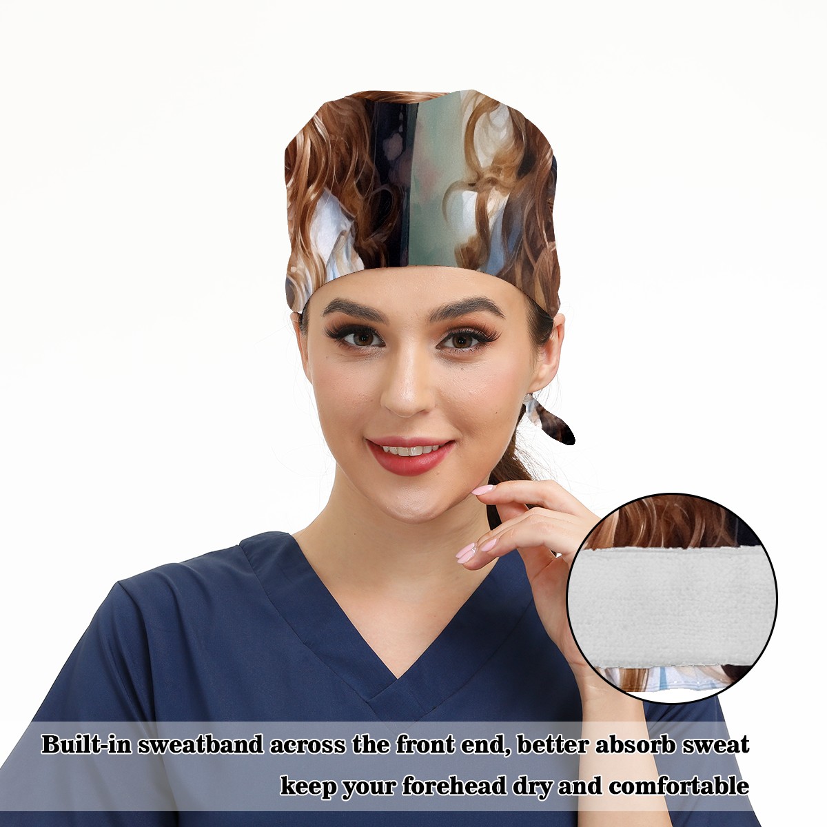Working Caps with Button&Sweatband Satin Lined Cotton Adjustable Nurse Hats Elastic Band Scrub Cap Surgeon Hat Easter (90)