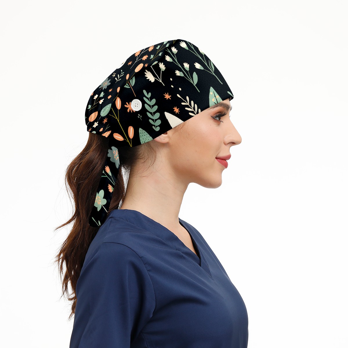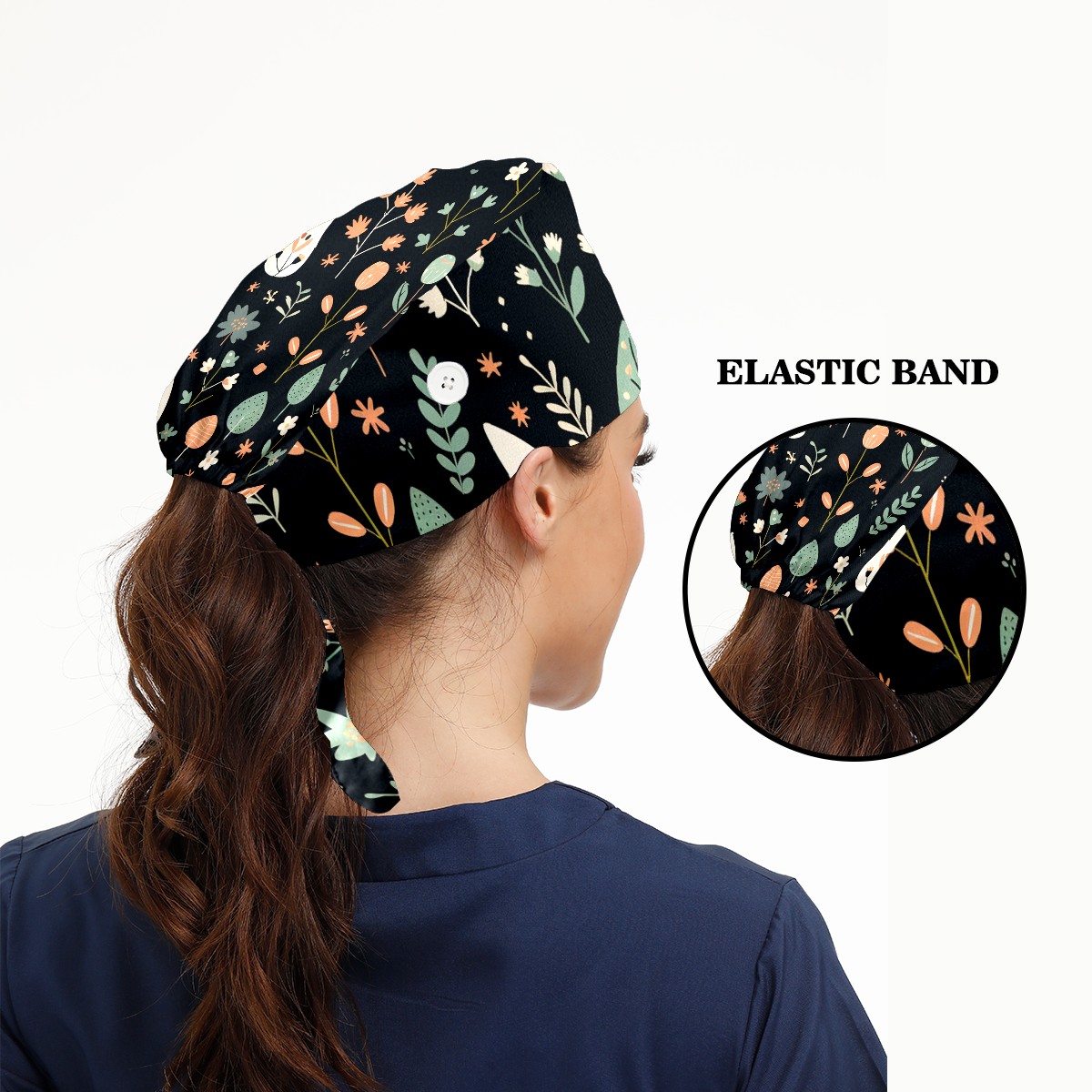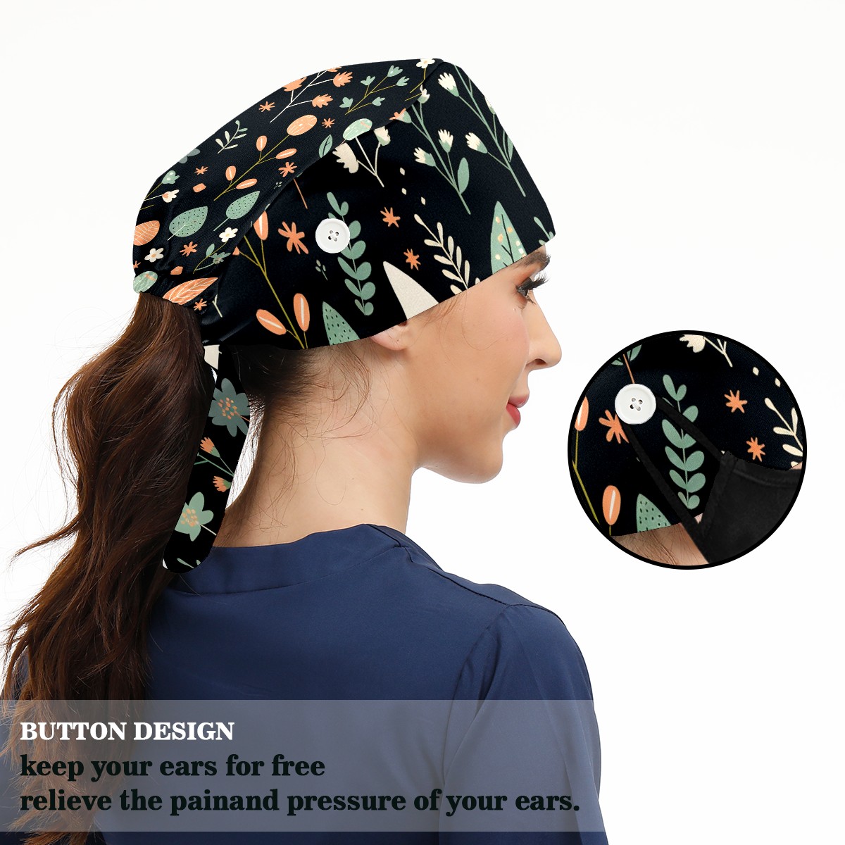 Working Caps with Button&Sweatband Satin Lined Cotton Adjustable Nurse Hats Elastic Band Scrub Cap Surgeon Hat Easter (75)