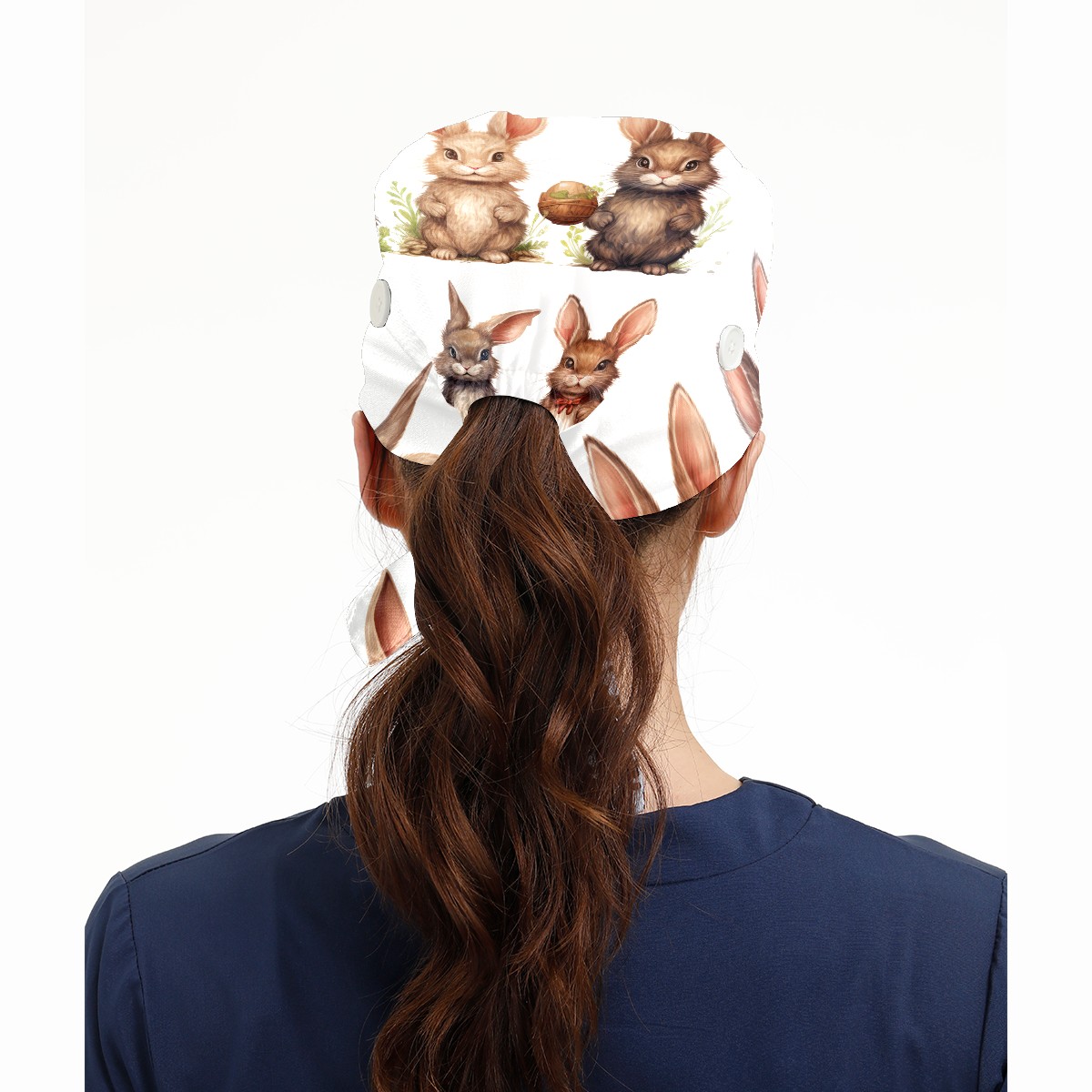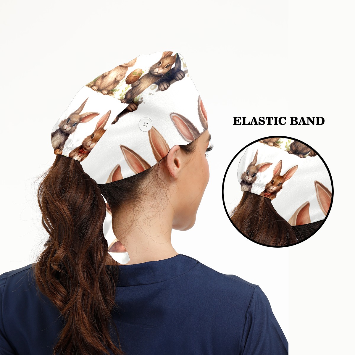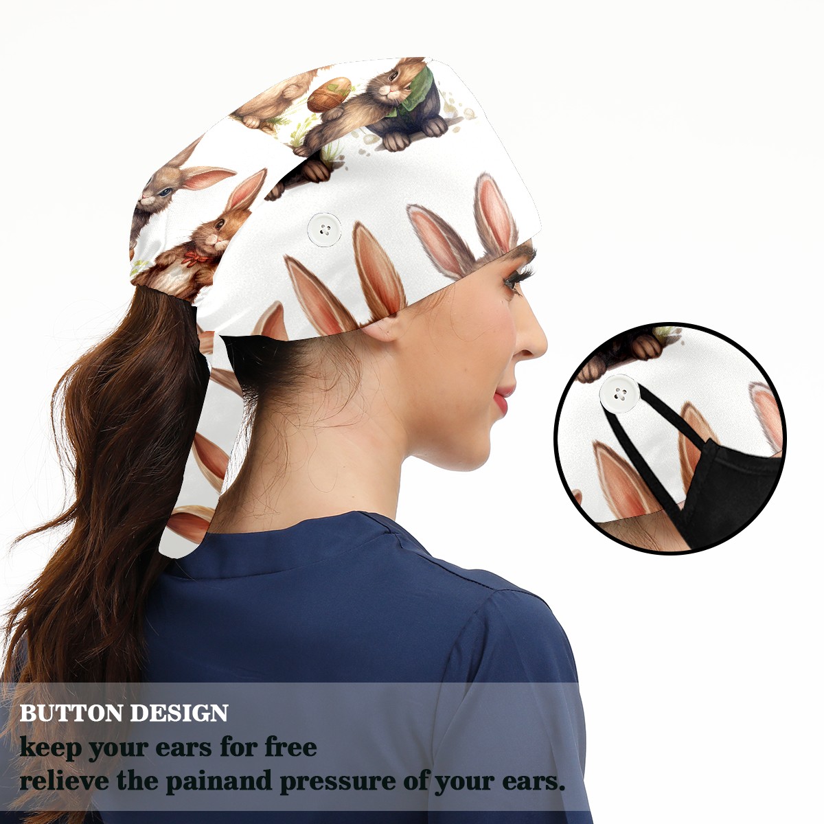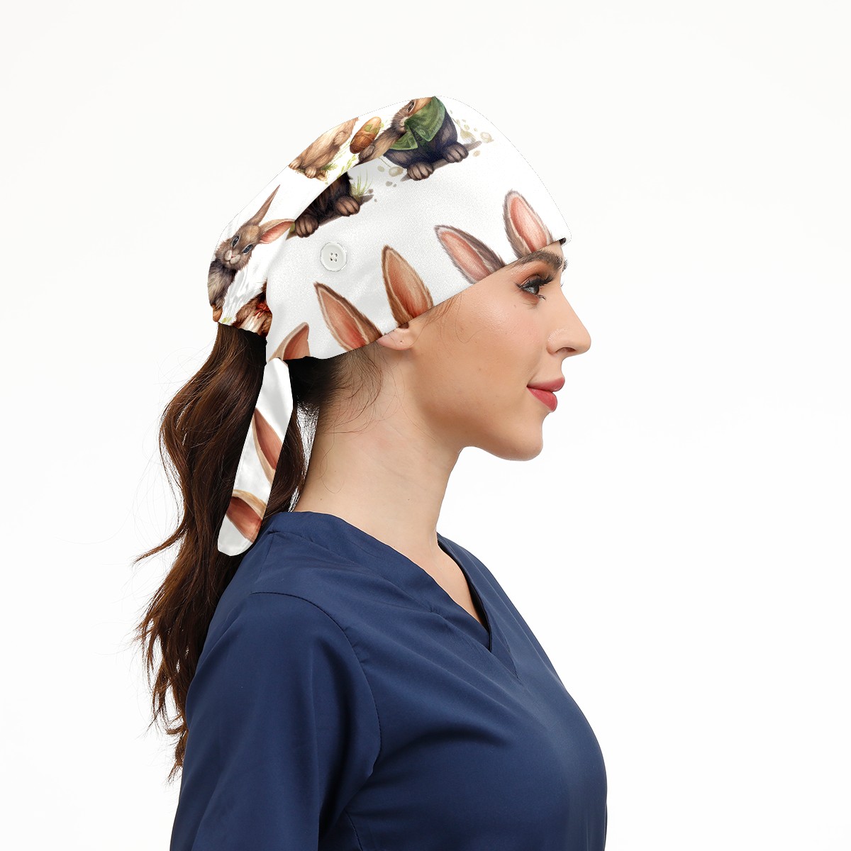 Working Caps with Button&Sweatband Satin Lined Cotton Adjustable Nurse Hats Elastic Band Scrub Cap Surgeon Hat Easter (40)