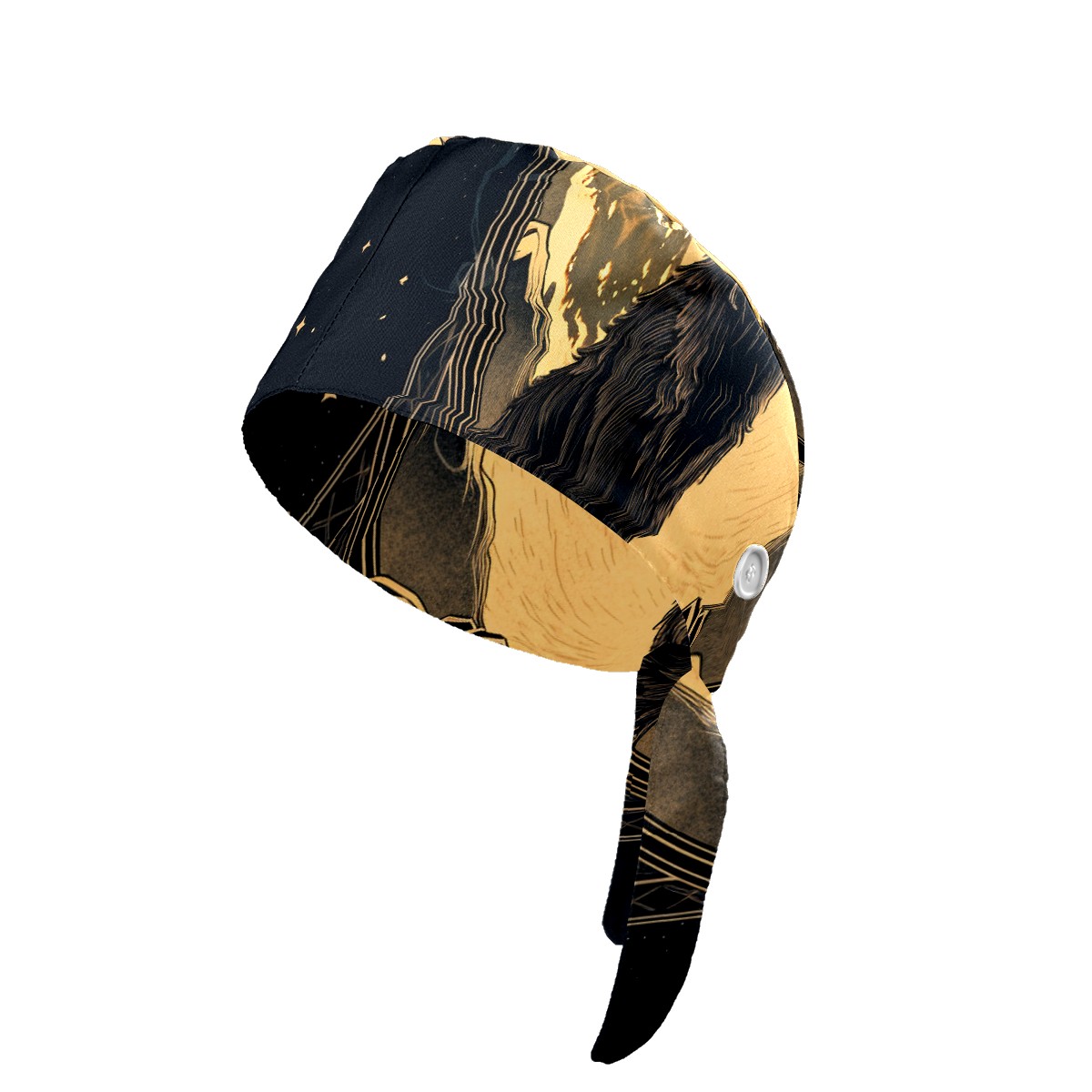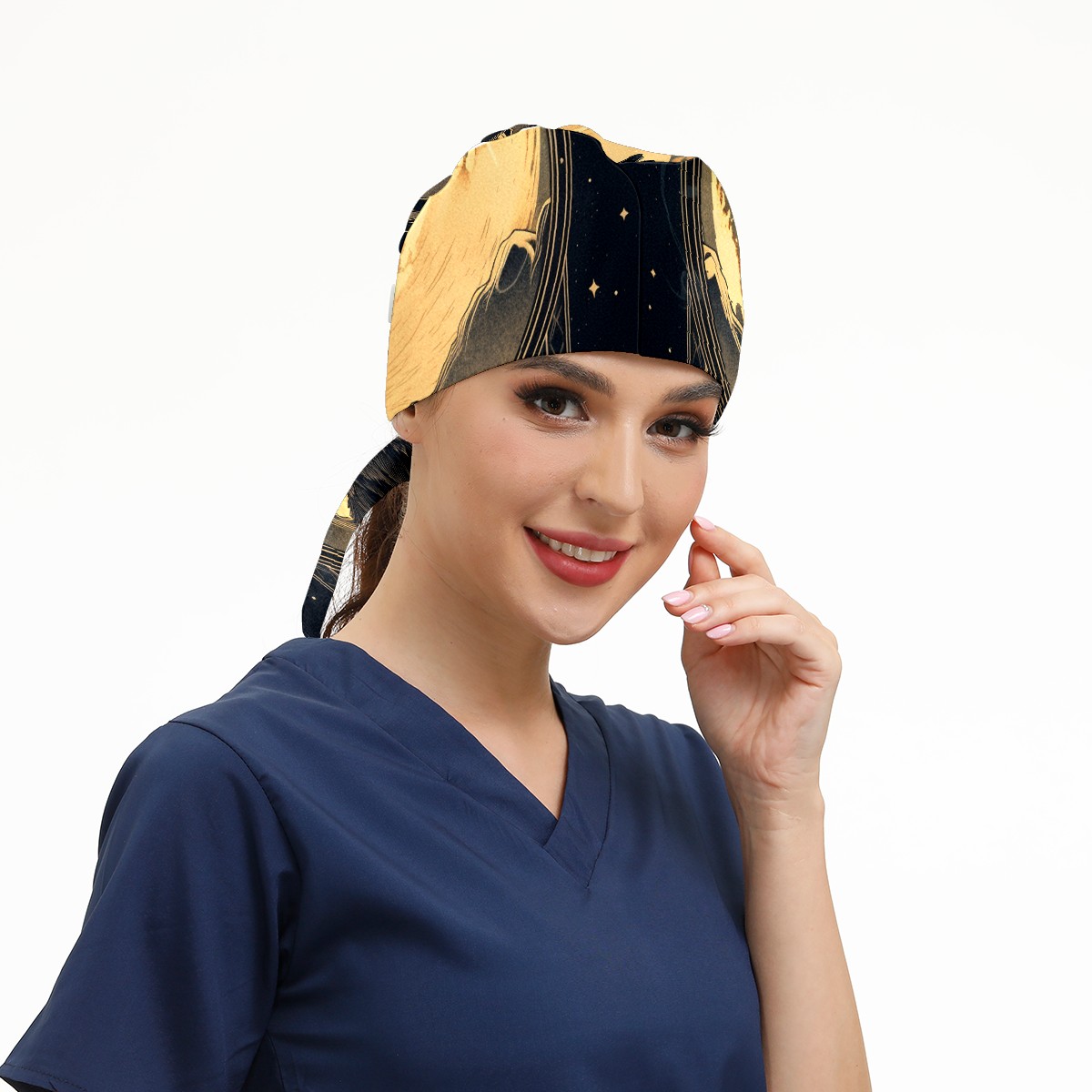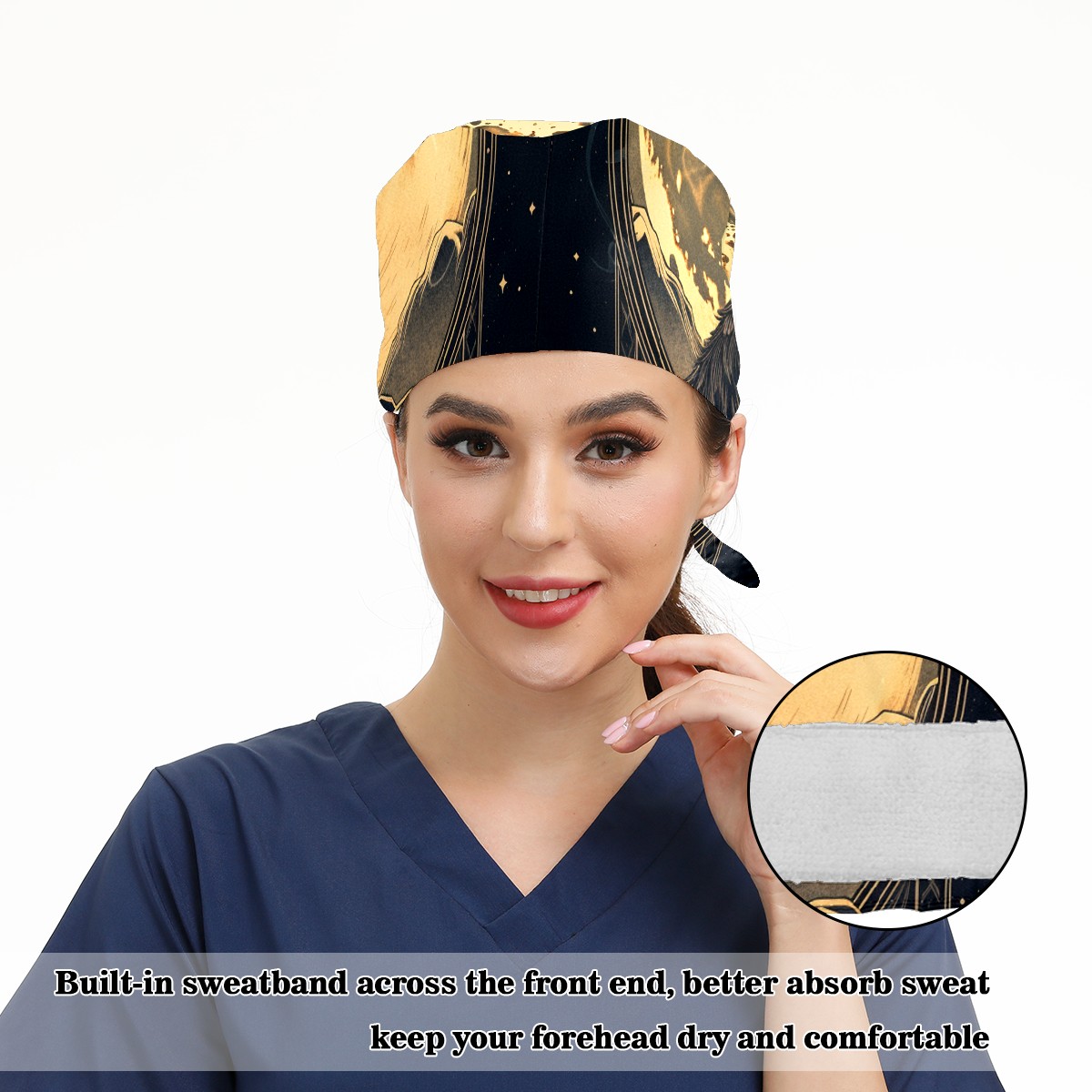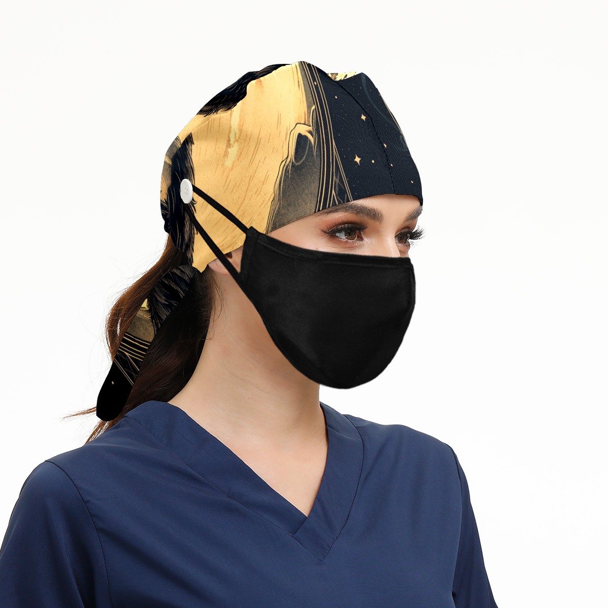 Working Caps with Button&Sweatband Satin Lined Cotton Adjustable Nurse Hats Elastic Band Scrub Cap Surgeon Hat Wolf