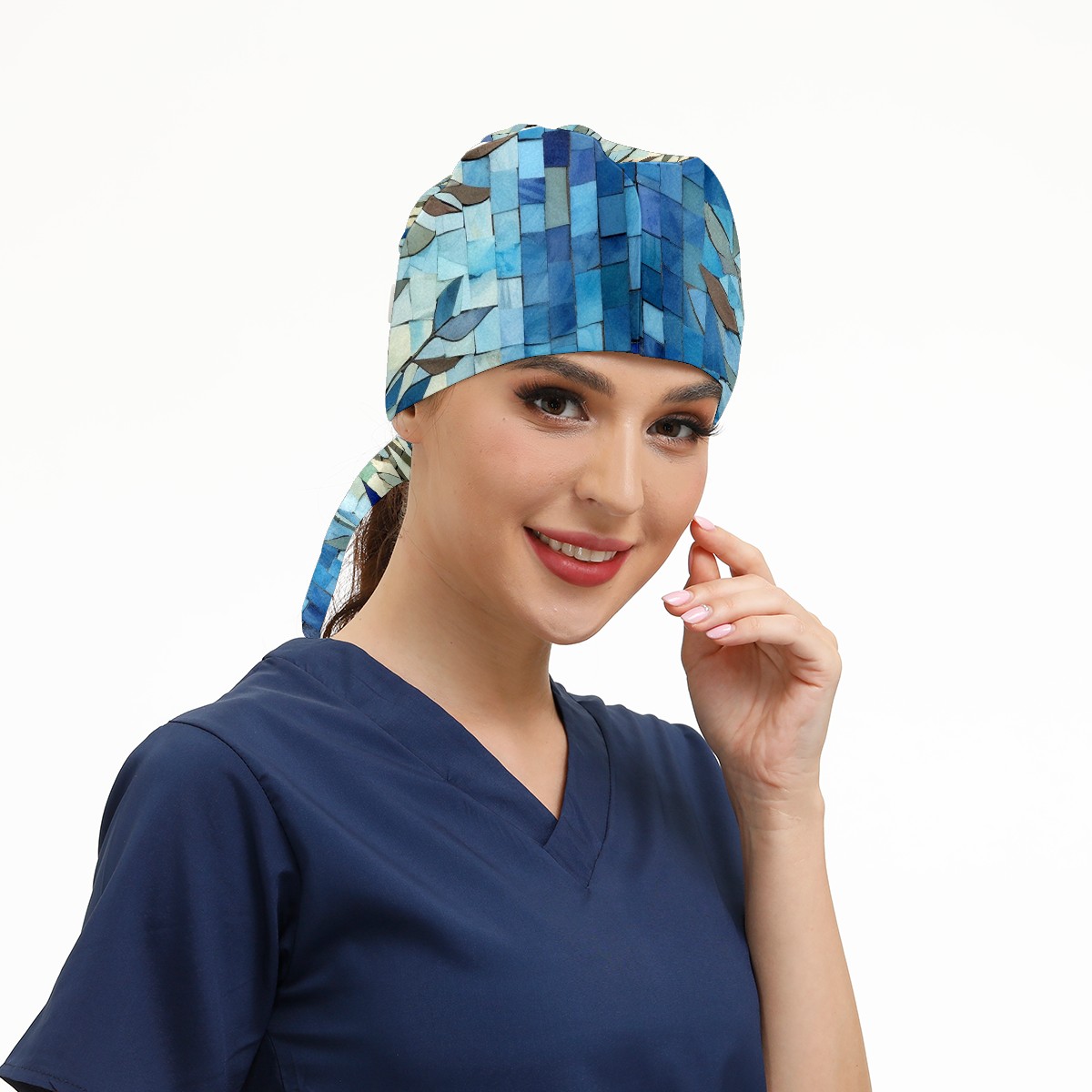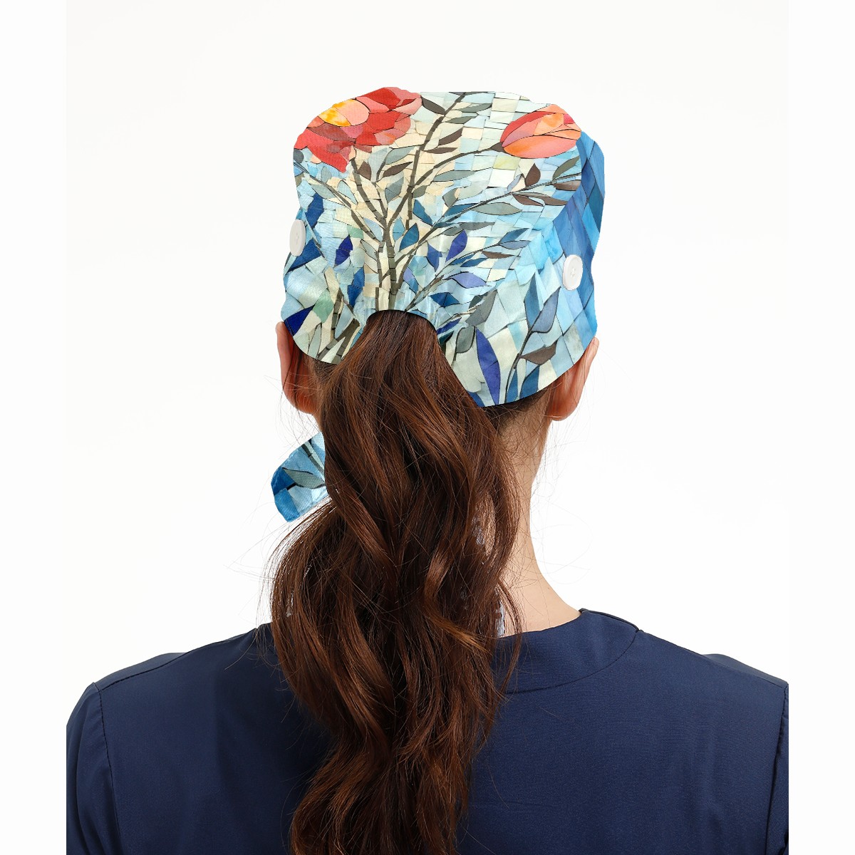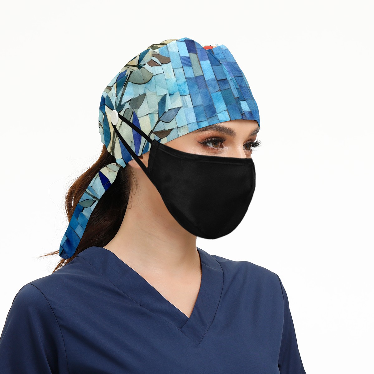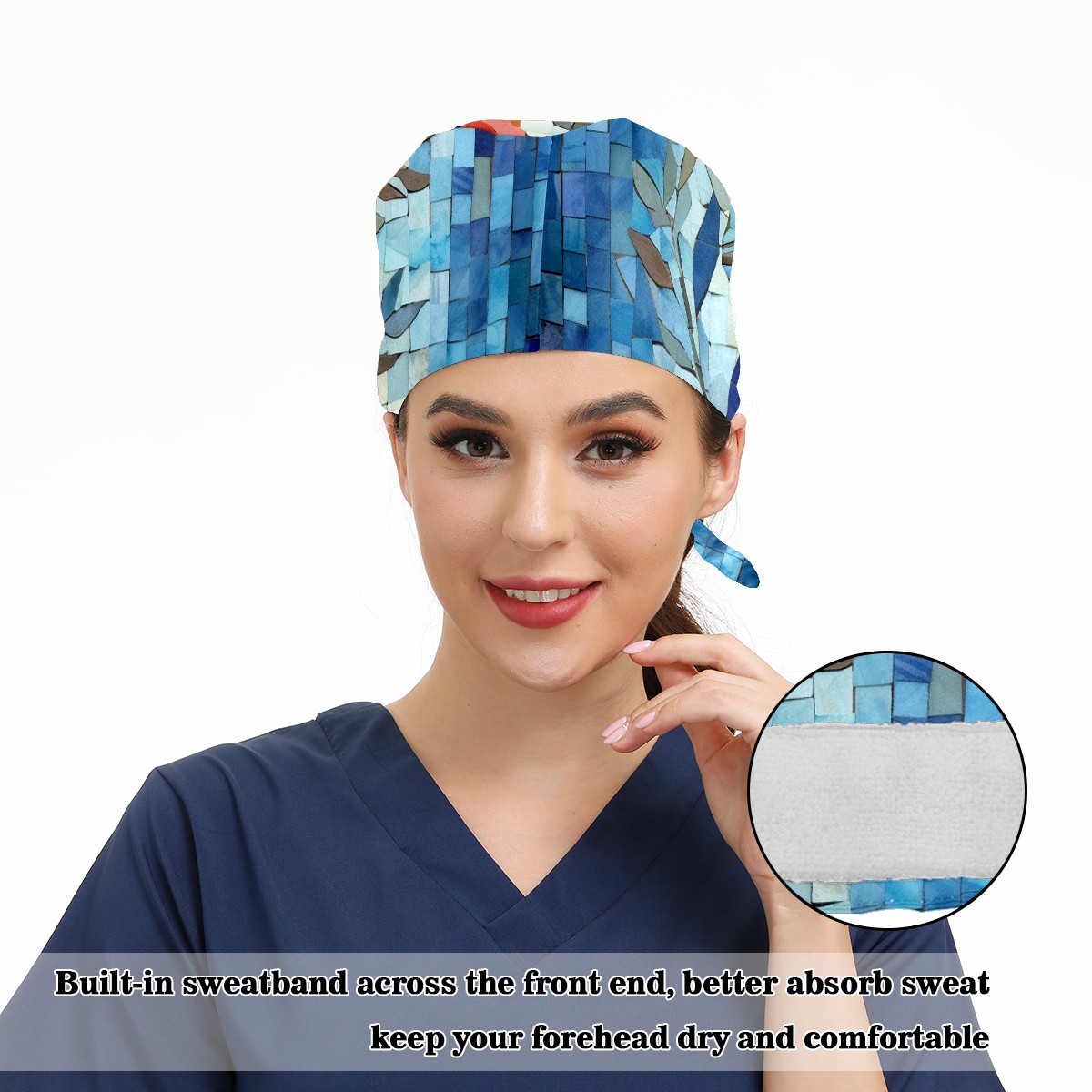 Working Caps with Button&Sweatband Satin Lined Cotton Adjustable Nurse Hats Elastic Band Scrub Cap Surgeon Hat Watercolor Art