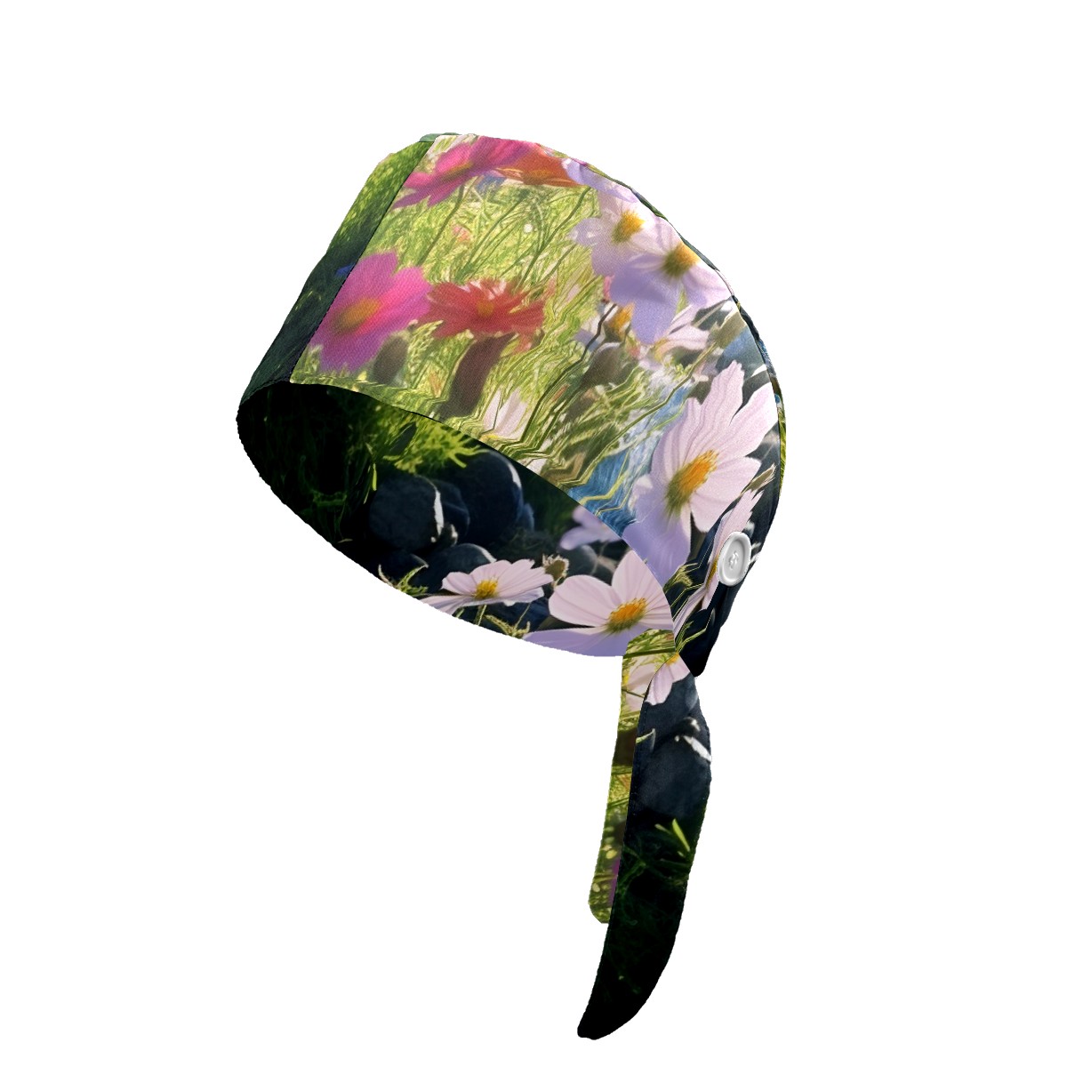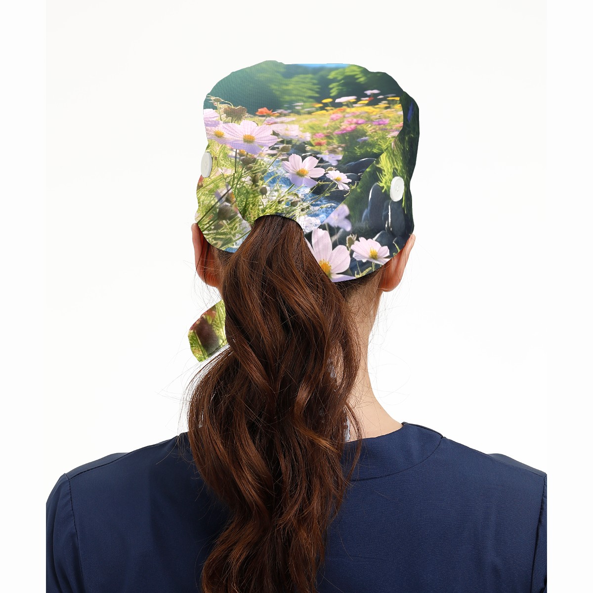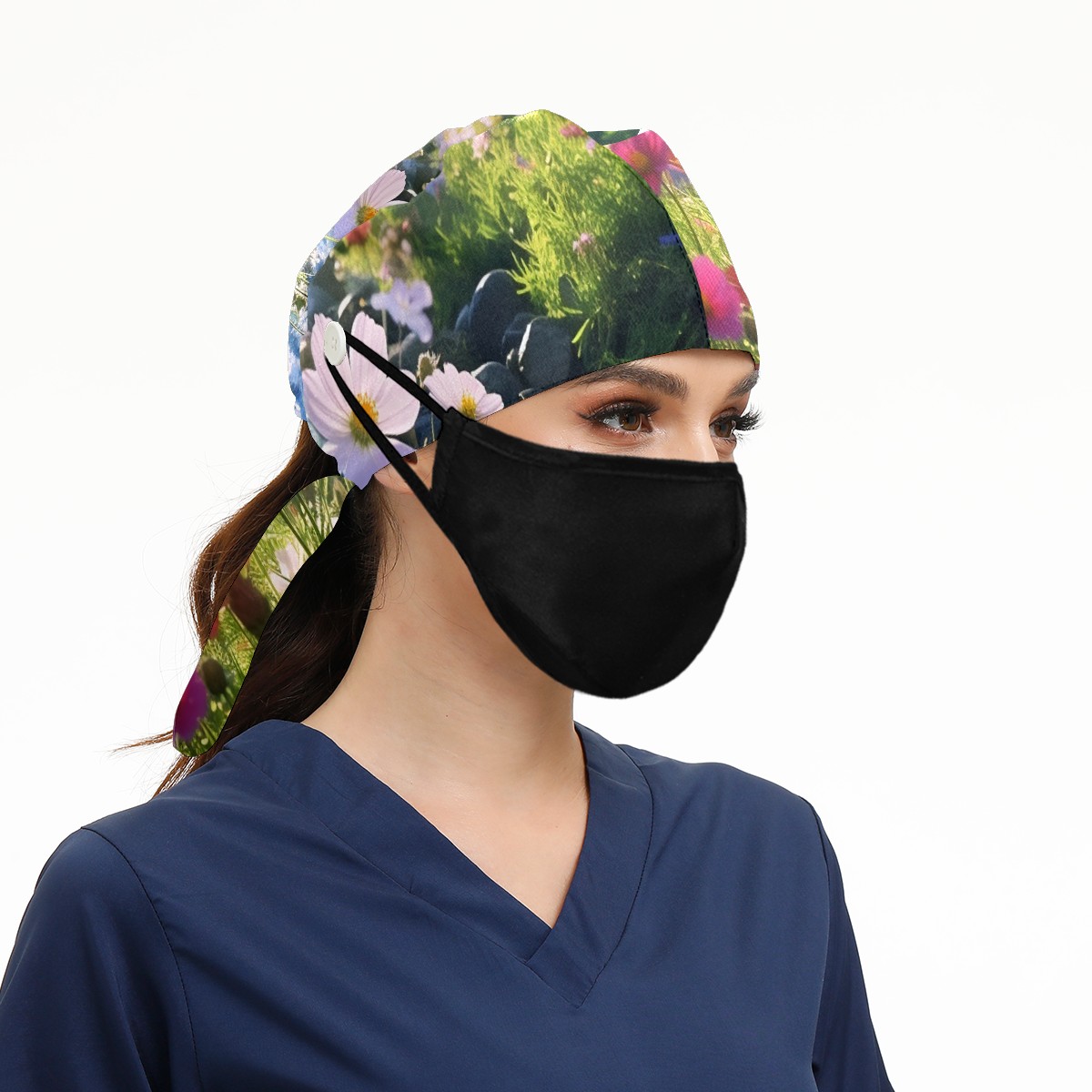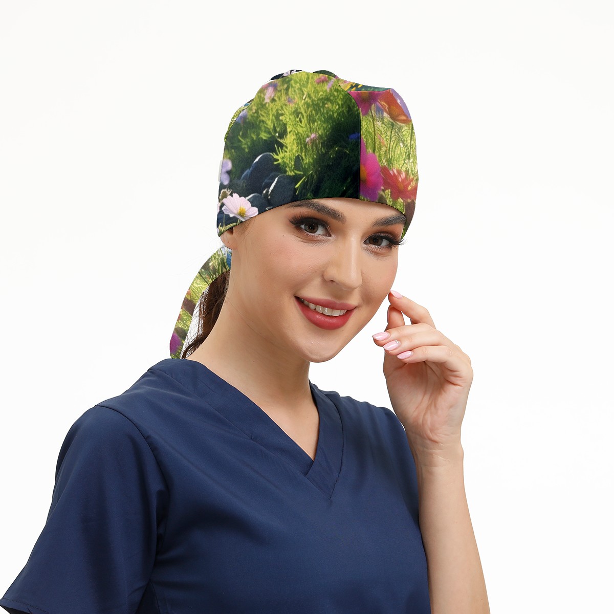 Working Caps with Button&Sweatband Satin Lined Cotton Adjustable Nurse Hats Elastic Band Scrub Cap Surgeon Hat Spring