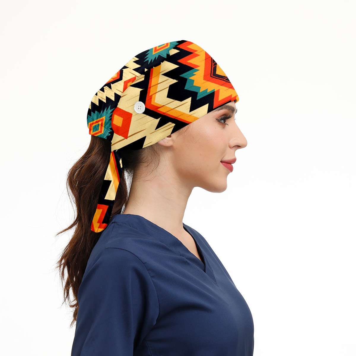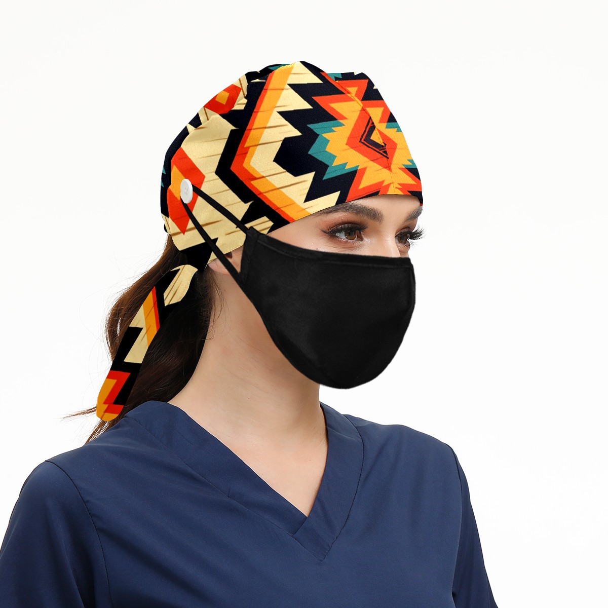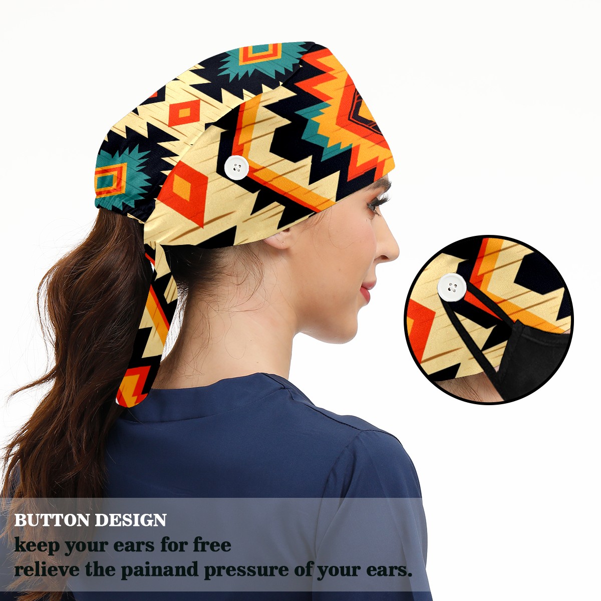 Working Caps with Button&Sweatband Satin Lined Cotton Adjustable Nurse Hats Elastic Band Scrub Cap Surgeon Hat Modern Abstraction