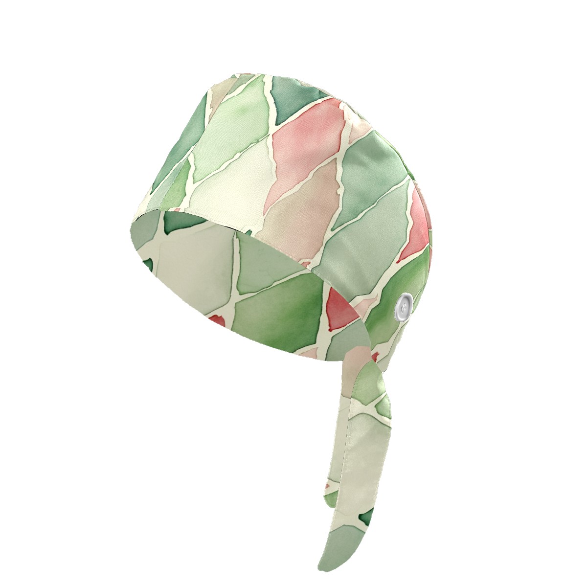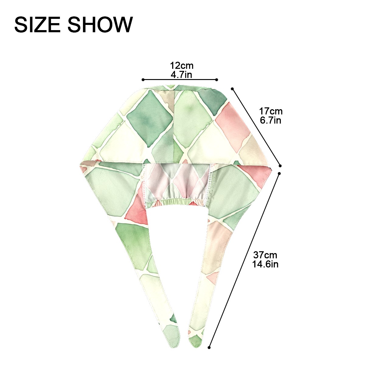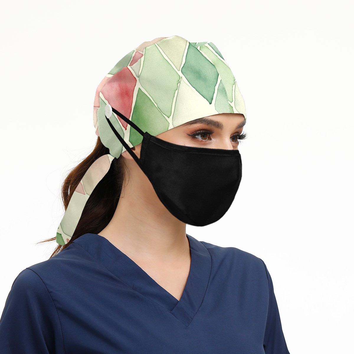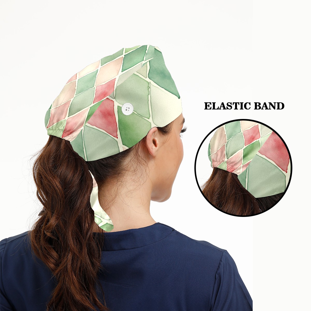 Working Caps with Button&Sweatband Satin Lined Cotton Adjustable Nurse Hats Elastic Band Scrub Cap Surgeon Hat Lattice Pattern