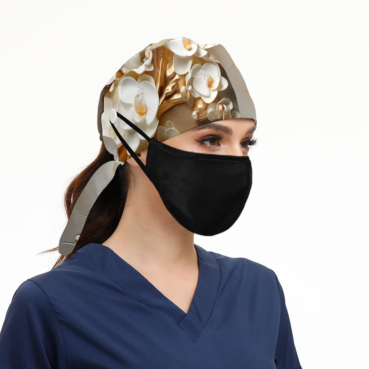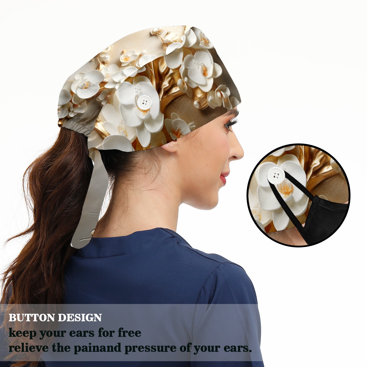 Working Caps with Button&Sweatband Satin Lined Cotton Adjustable Nurse Hats Elastic Band Scrub Cap Surgeon Hat Flowers 8