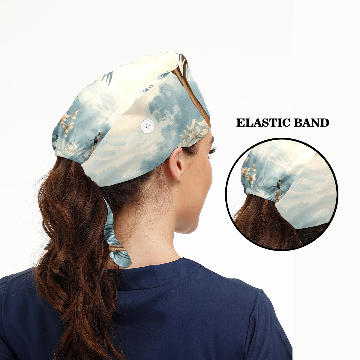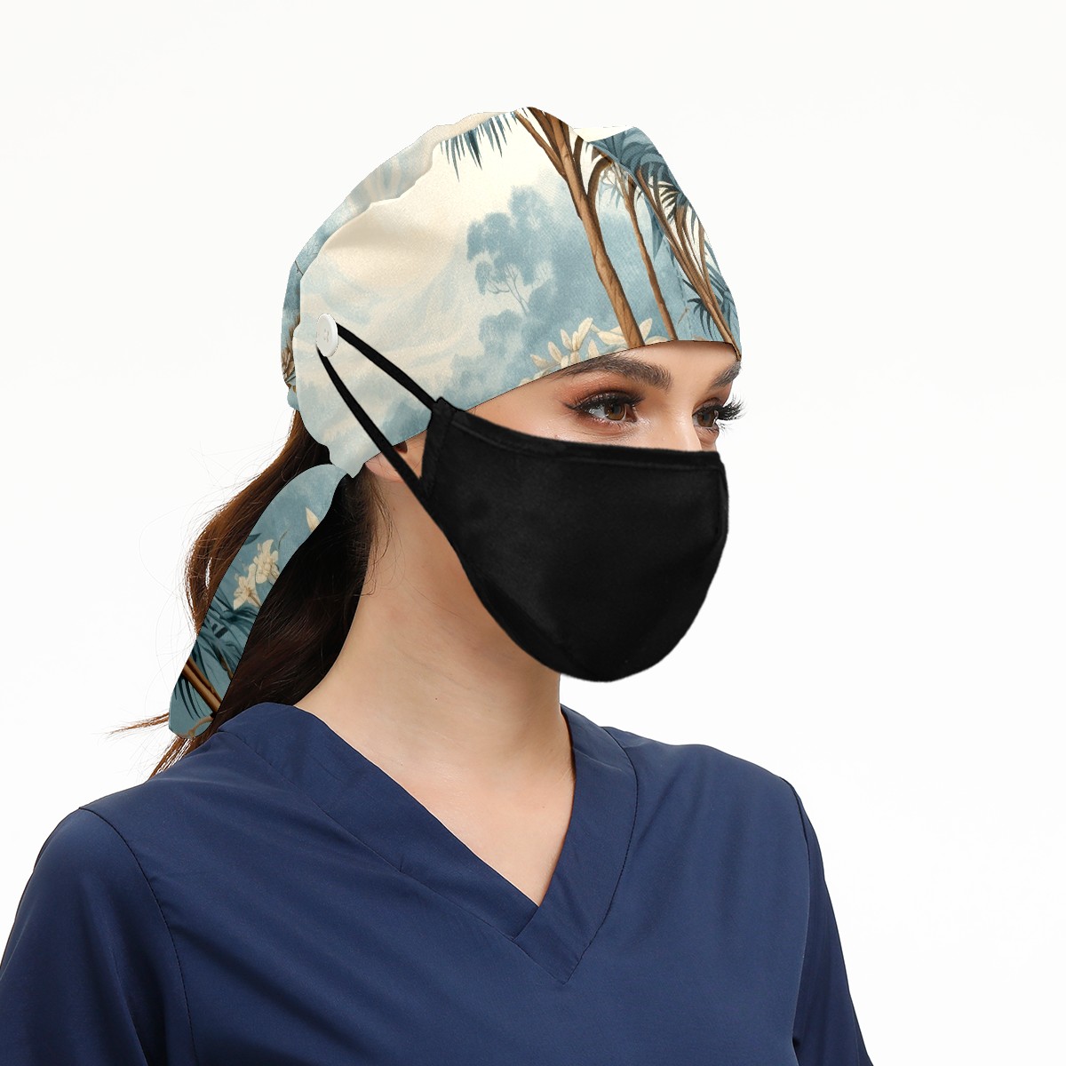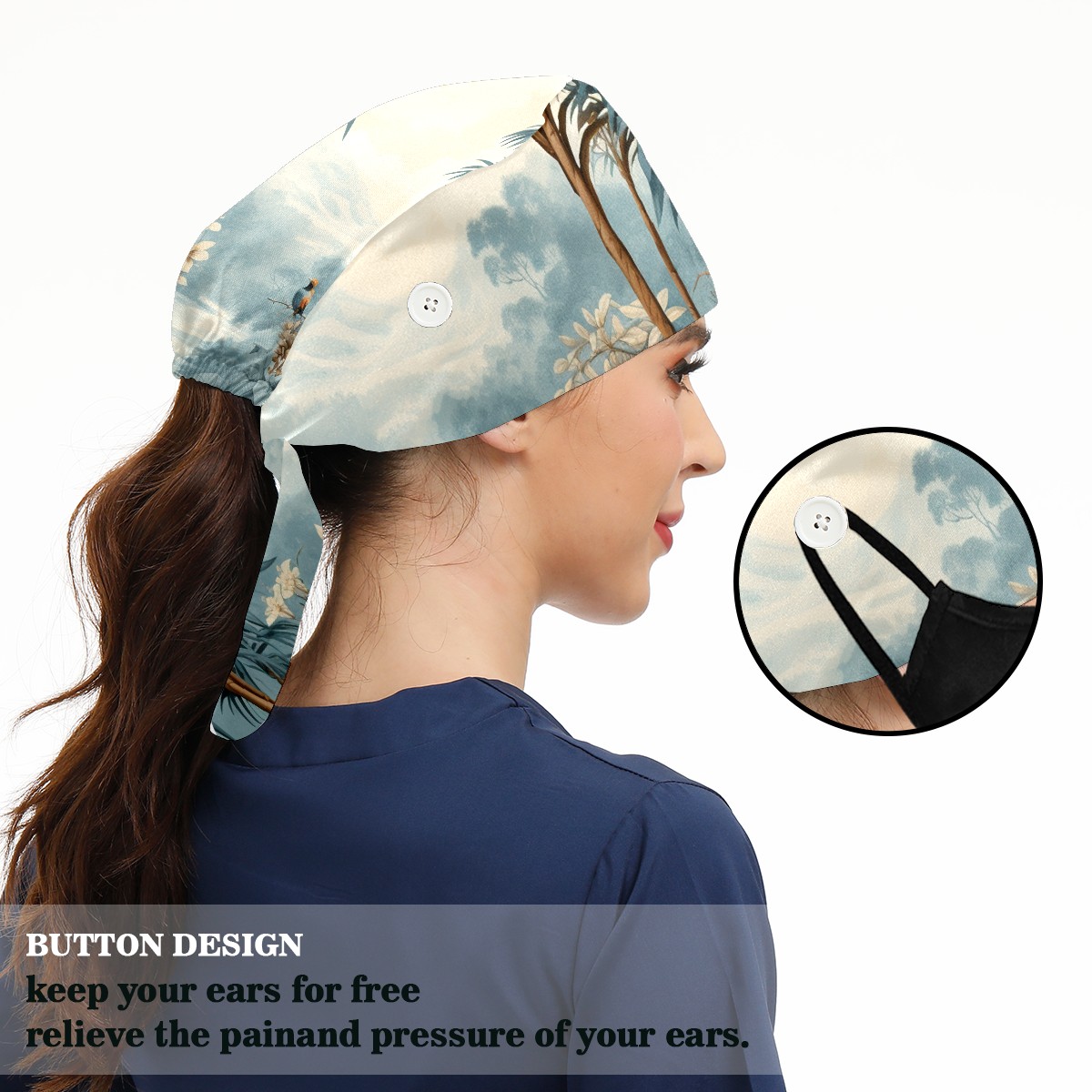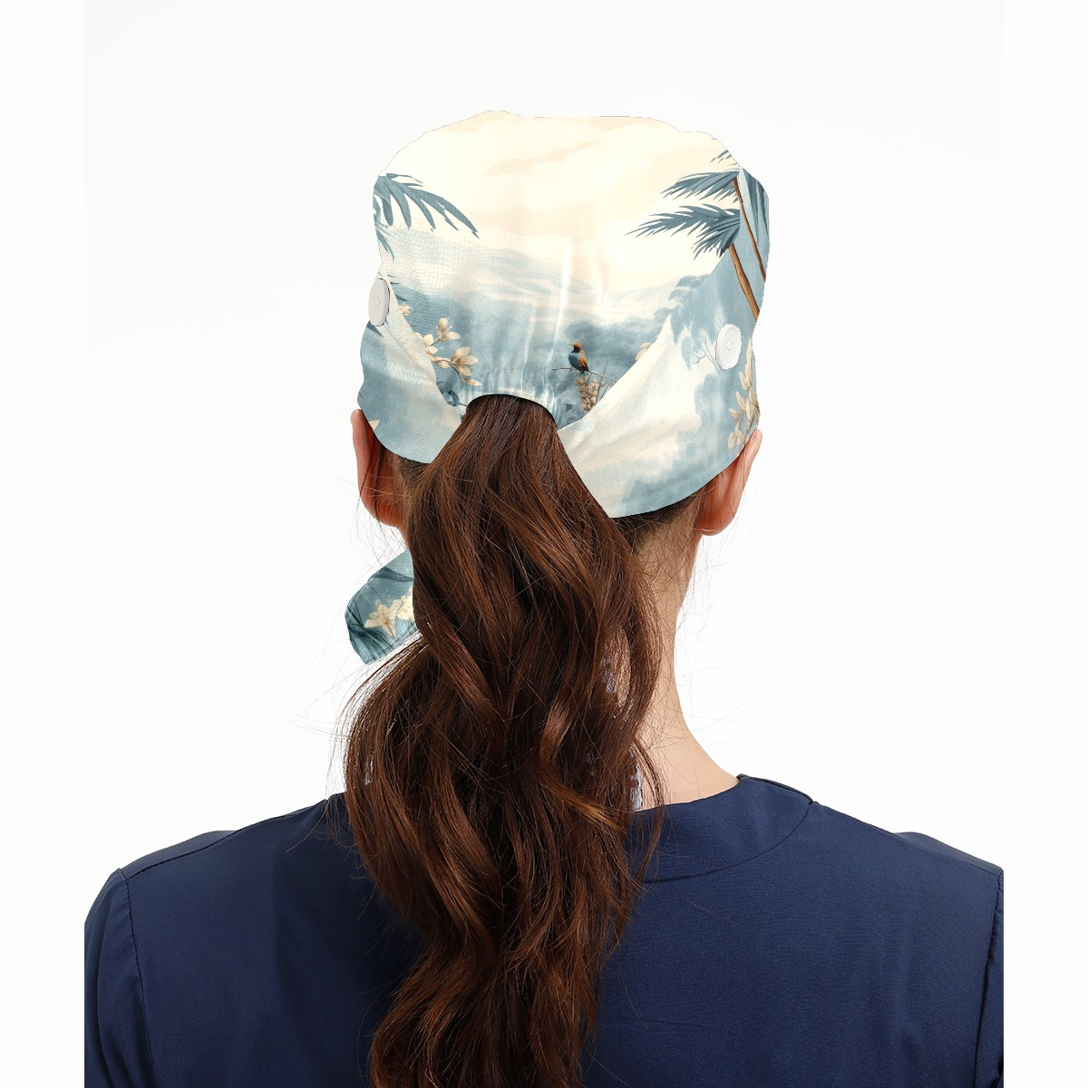 Working Caps with Button&Sweatband Satin Lined Cotton Adjustable Nurse Hats Elastic Band Scrub Cap Surgeon Hat Enigmatic Tropics