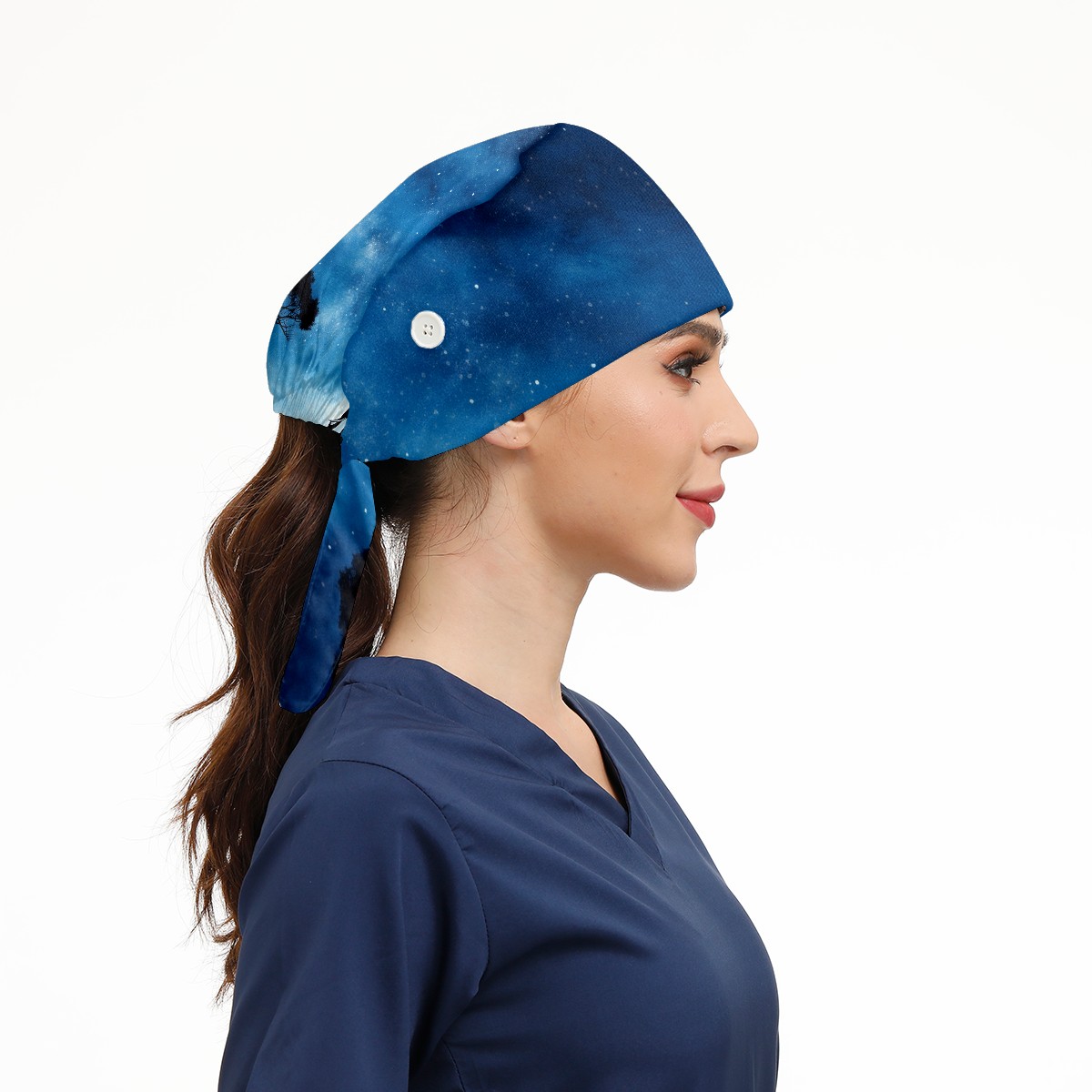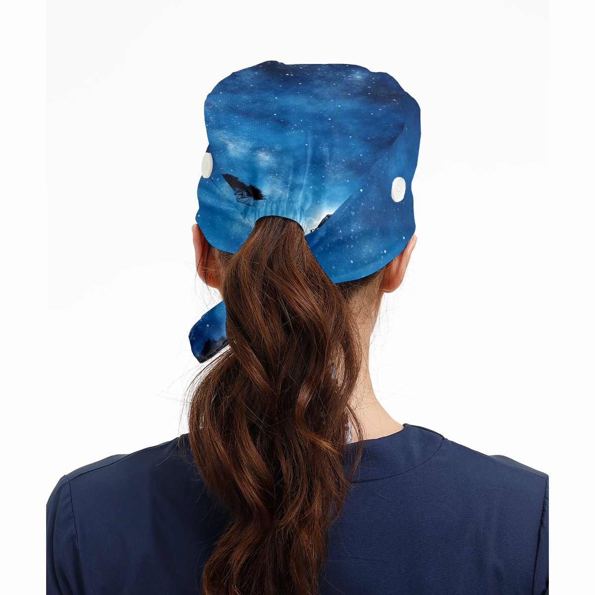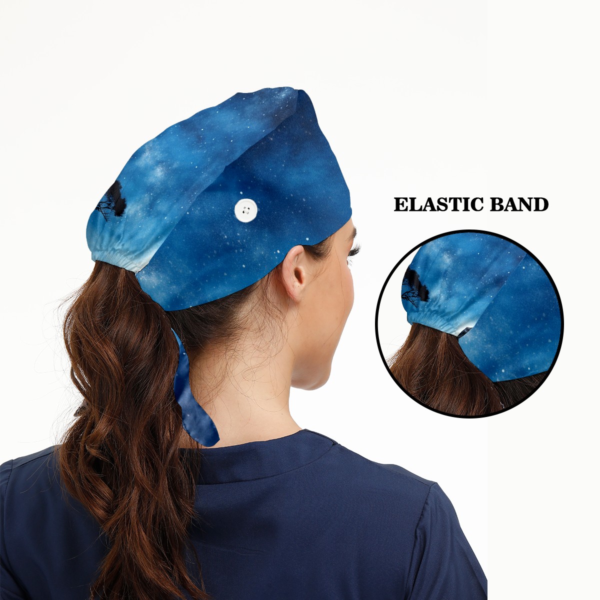 Working Caps with Button&Sweatband Satin Lined Cotton Adjustable Nurse Hats Elastic Band Scrub Cap Surgeon Hat Elephant And Sky 3