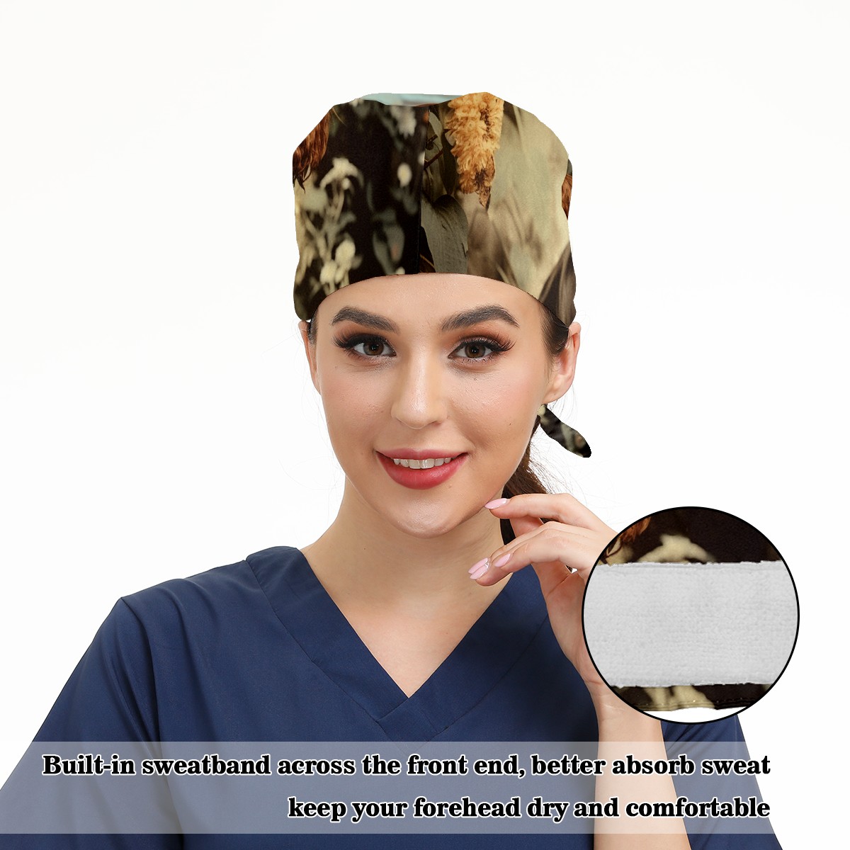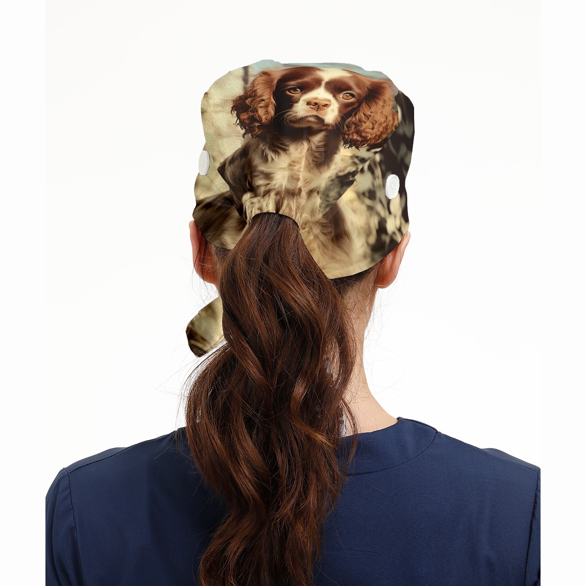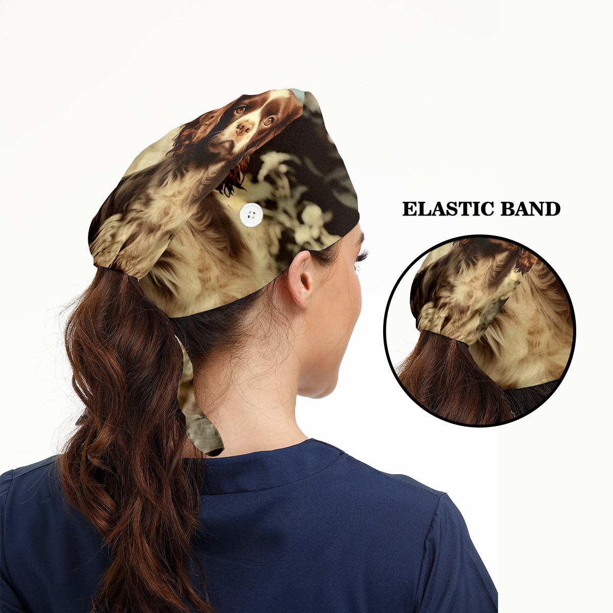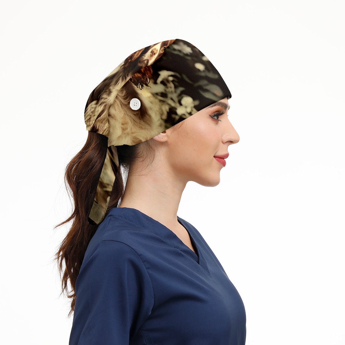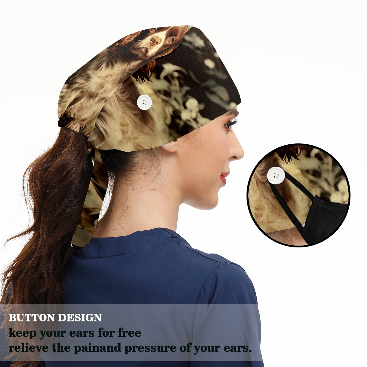 Working Caps with Button&Sweatband Satin Lined Cotton Adjustable Nurse Hats Elastic Band Scrub Cap Surgeon Hat Dog 1