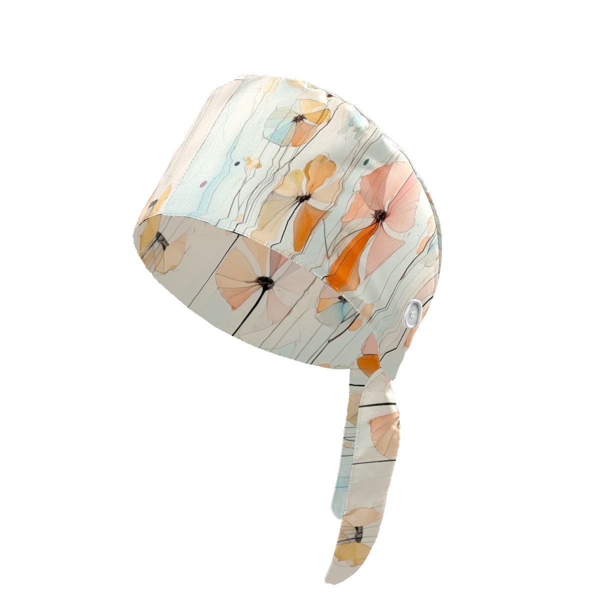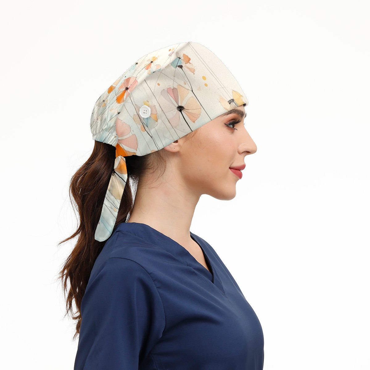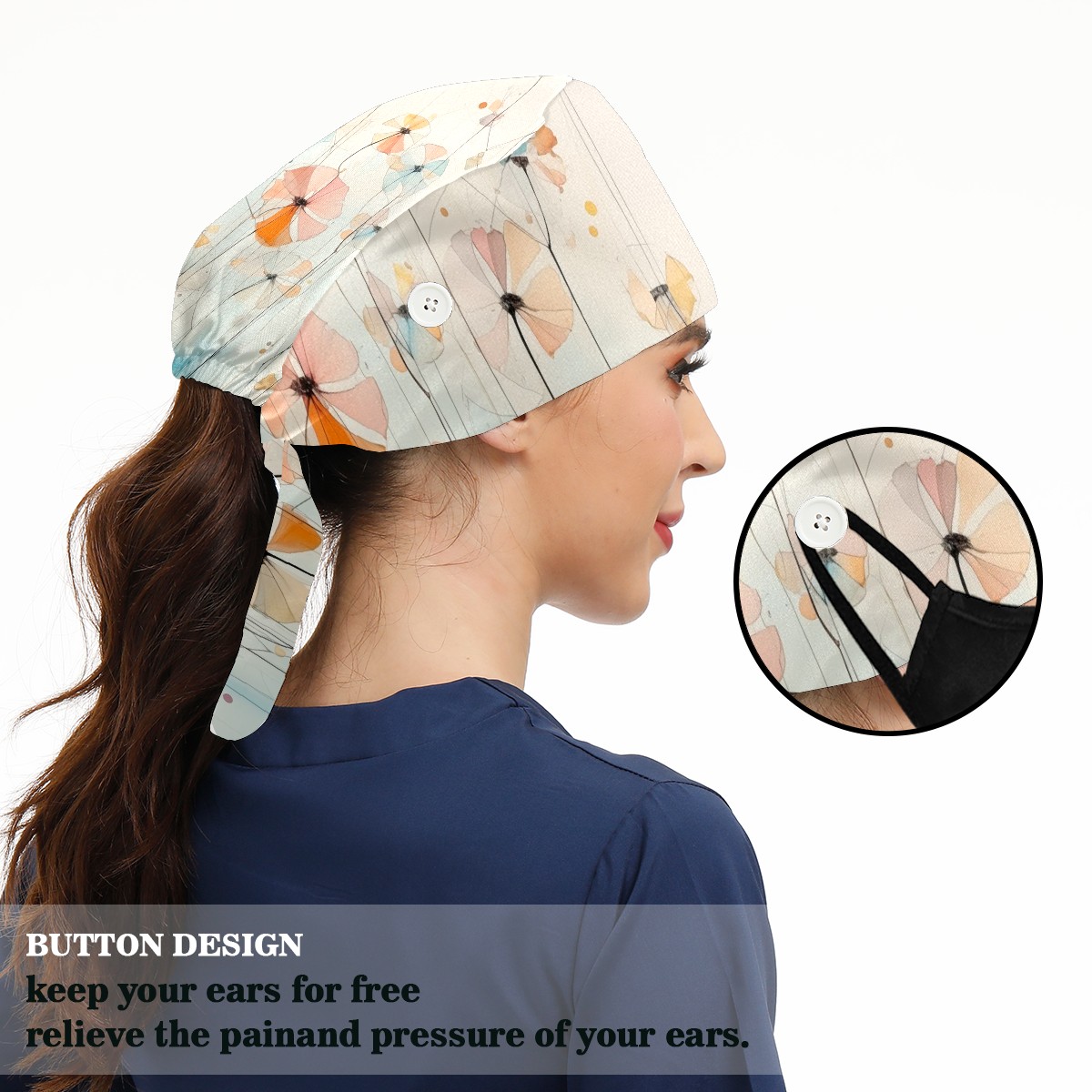 Working Caps with Button&Sweatband Satin Lined Cotton Adjustable Nurse Hats Elastic Band Scrub Cap Surgeon Hat Flowers Lines