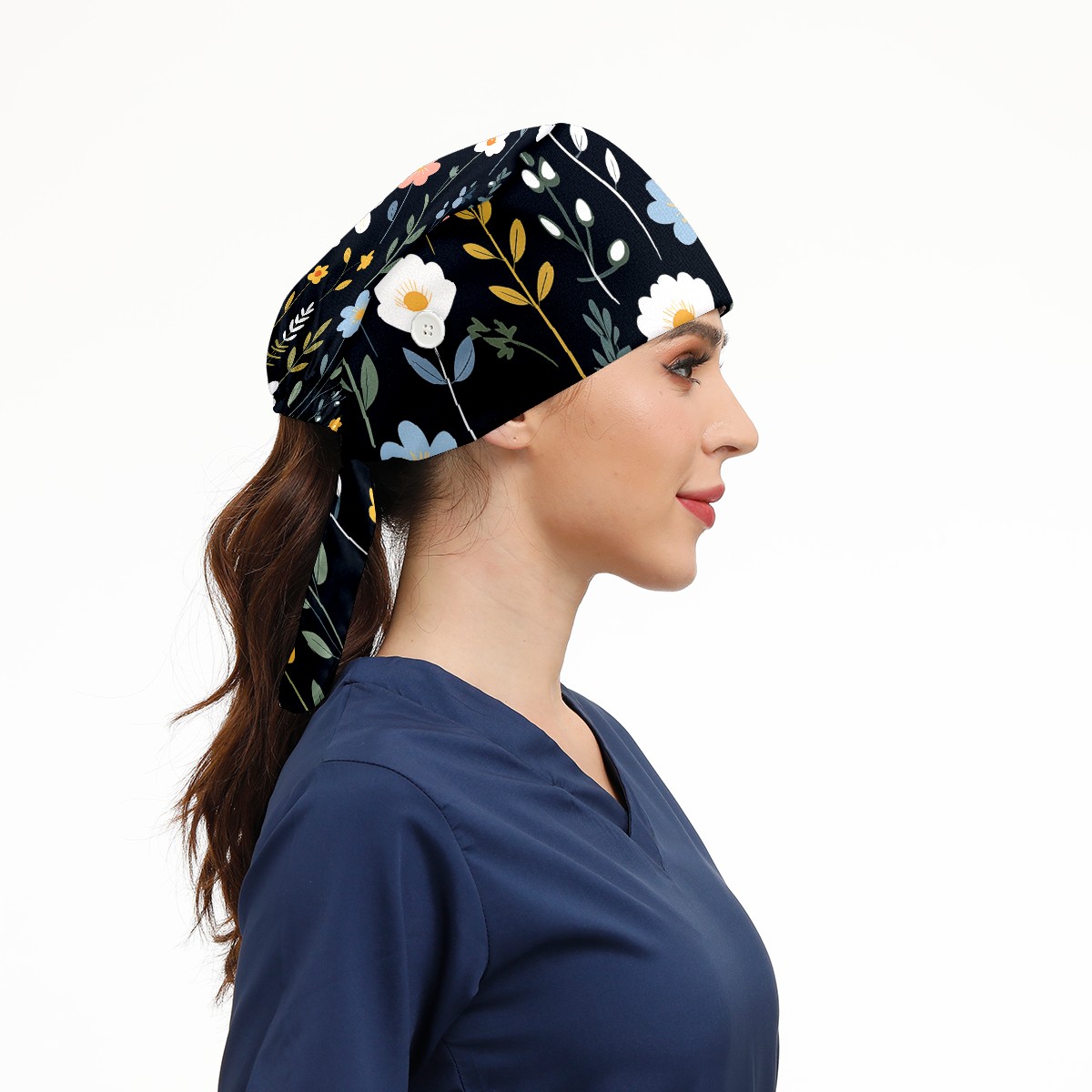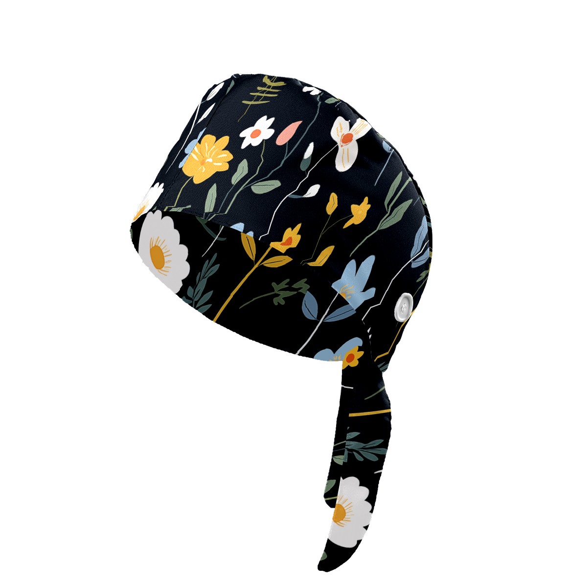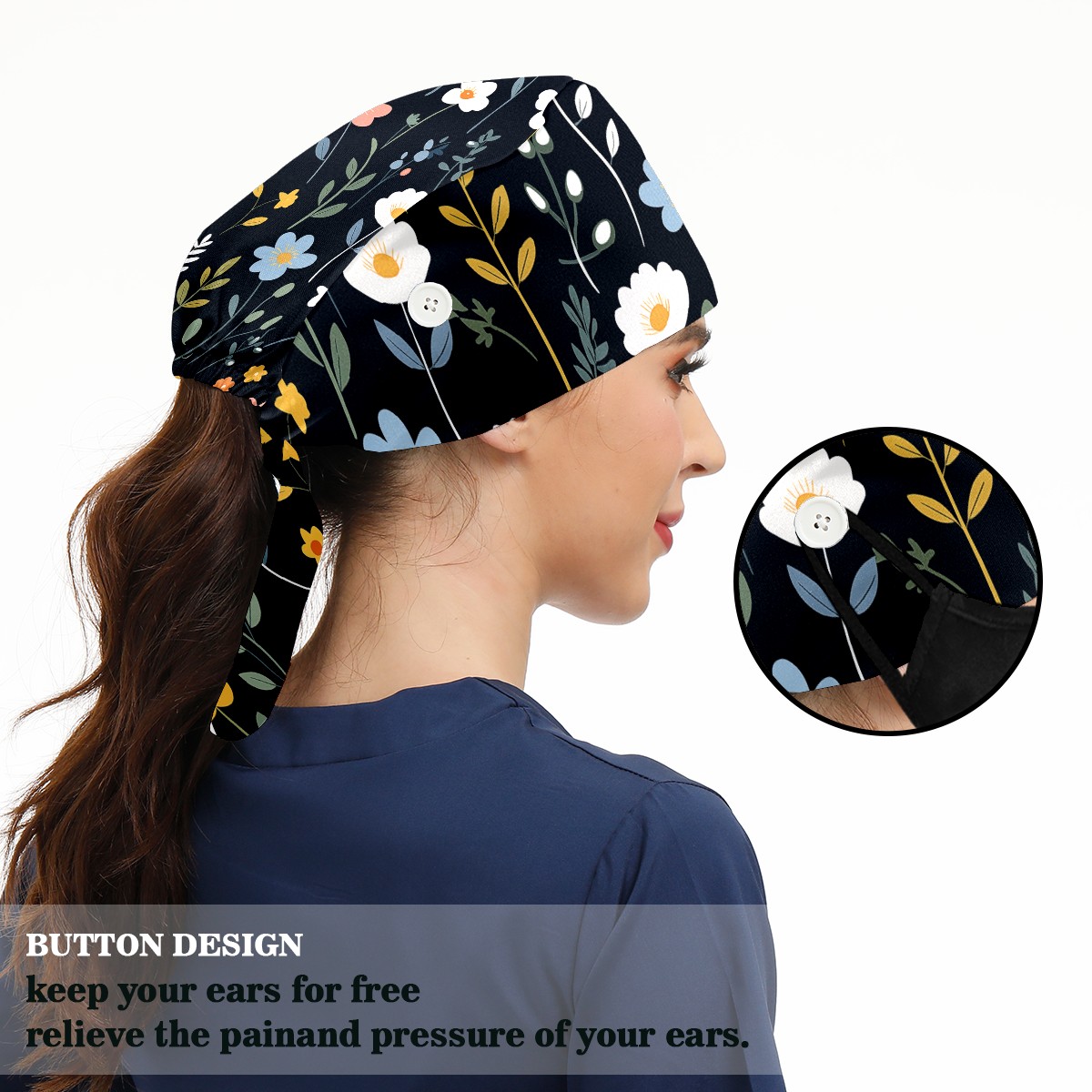 Working Caps with Button&Sweatband Satin Lined Cotton Adjustable Nurse Hats Elastic Band Scrub Cap Surgeon Hat Flowers Plants